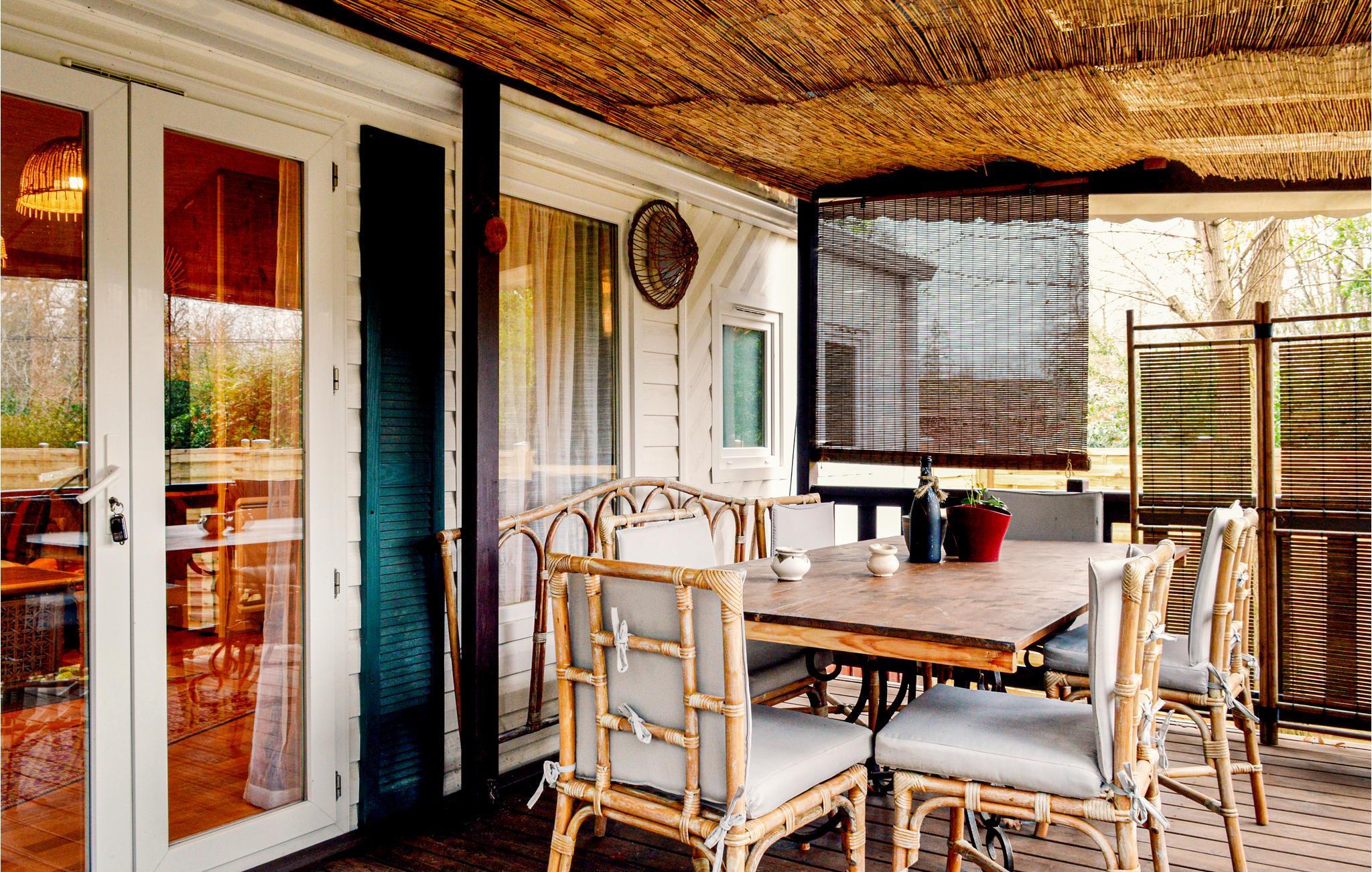 Dieses liebevoll eingerichtete Mobilhaus liegt direkt am Waldrand und zugleich in idealer Lage, um bequem zu reizvollen Ausflugszielen zu gelangen. Zaubern Sie hier Ihre Lieblingsmahlzeiten und planen Sie Ihre Unternehmungen bei entspannten Momenten am Esstisch. Im offenen Wohnraum lädt eine großzügige Sofalandschaft zu gemütlichen Spieleabenden ein.