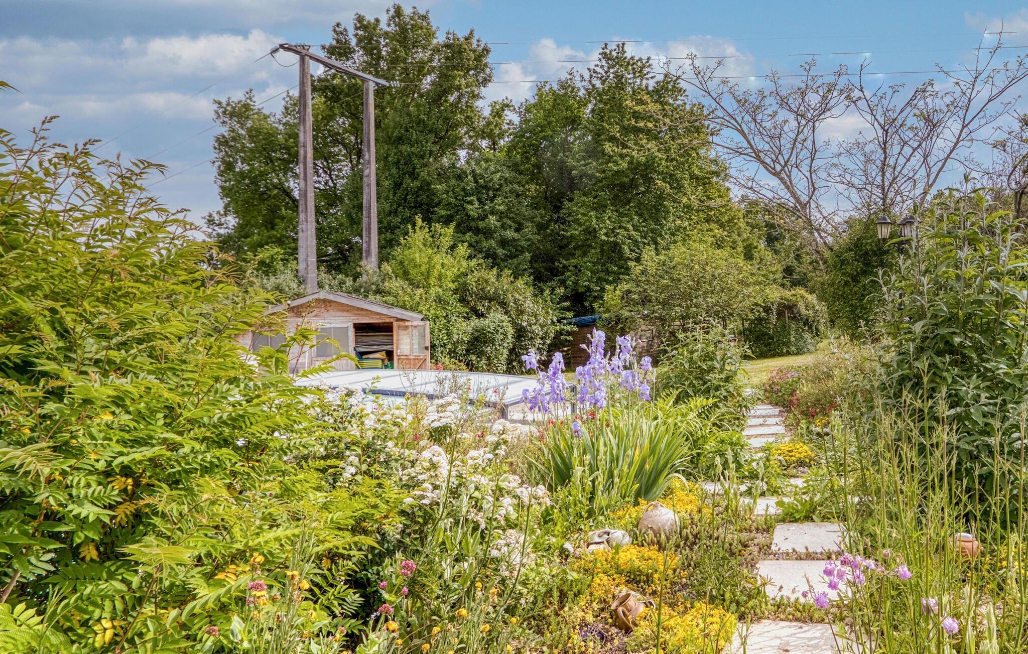 Gehen Sie nach draußen und verbringen Sie Ihre Zeit im liebevoll angelegten Garten. Schwimmen Sie eine Runde im gepflegten, privaten Pool oder nehmen Sie auf den Sonnenliegen Platz. Die Terrasse mit gemütlicher Sitzecke und üppiger Bepflanzung lädt zum Verweilen ein. Lassen Sie den Tag bei einem Glas Wein unter dem Sonnenschirm ausklingen und genießen Sie die Stille der Umgebung.