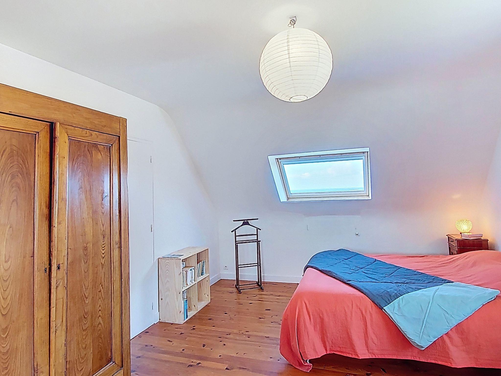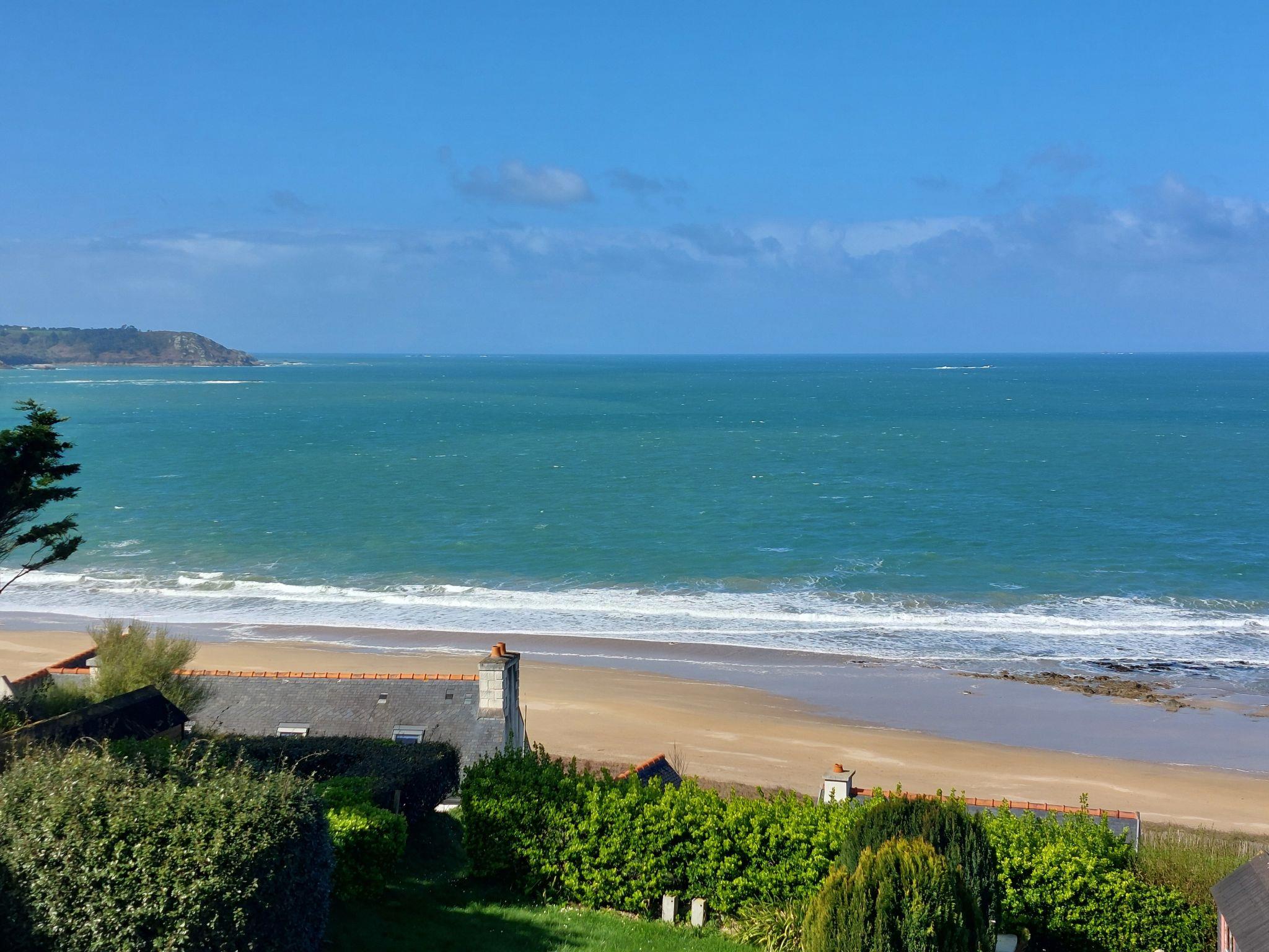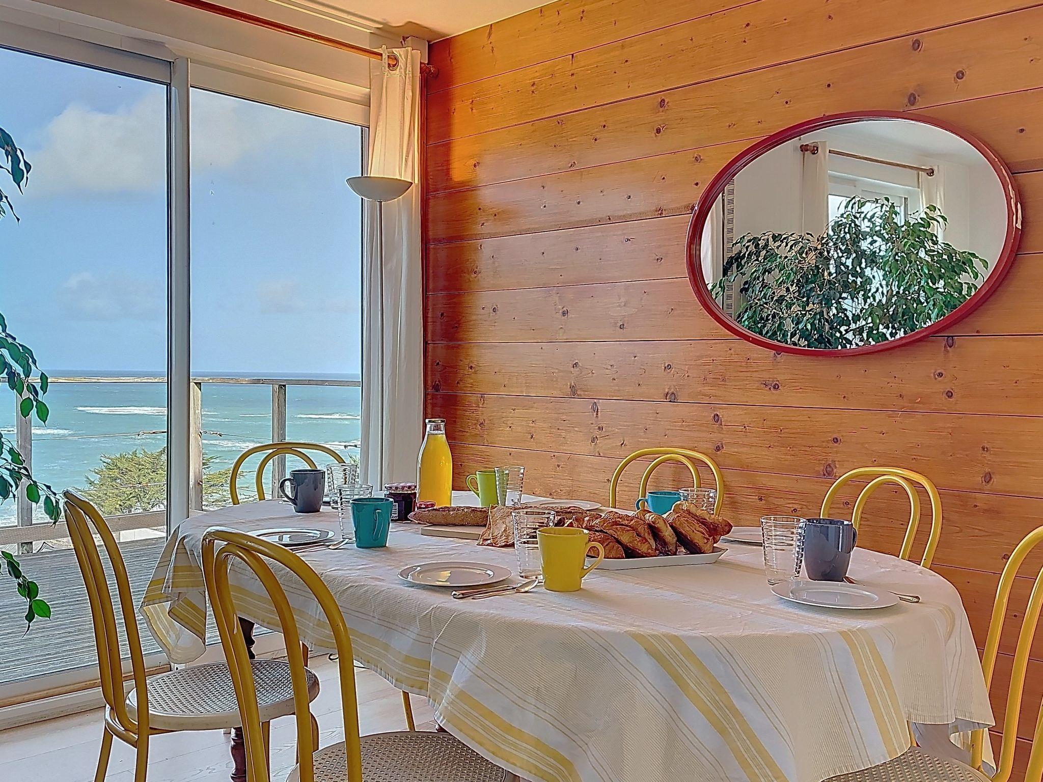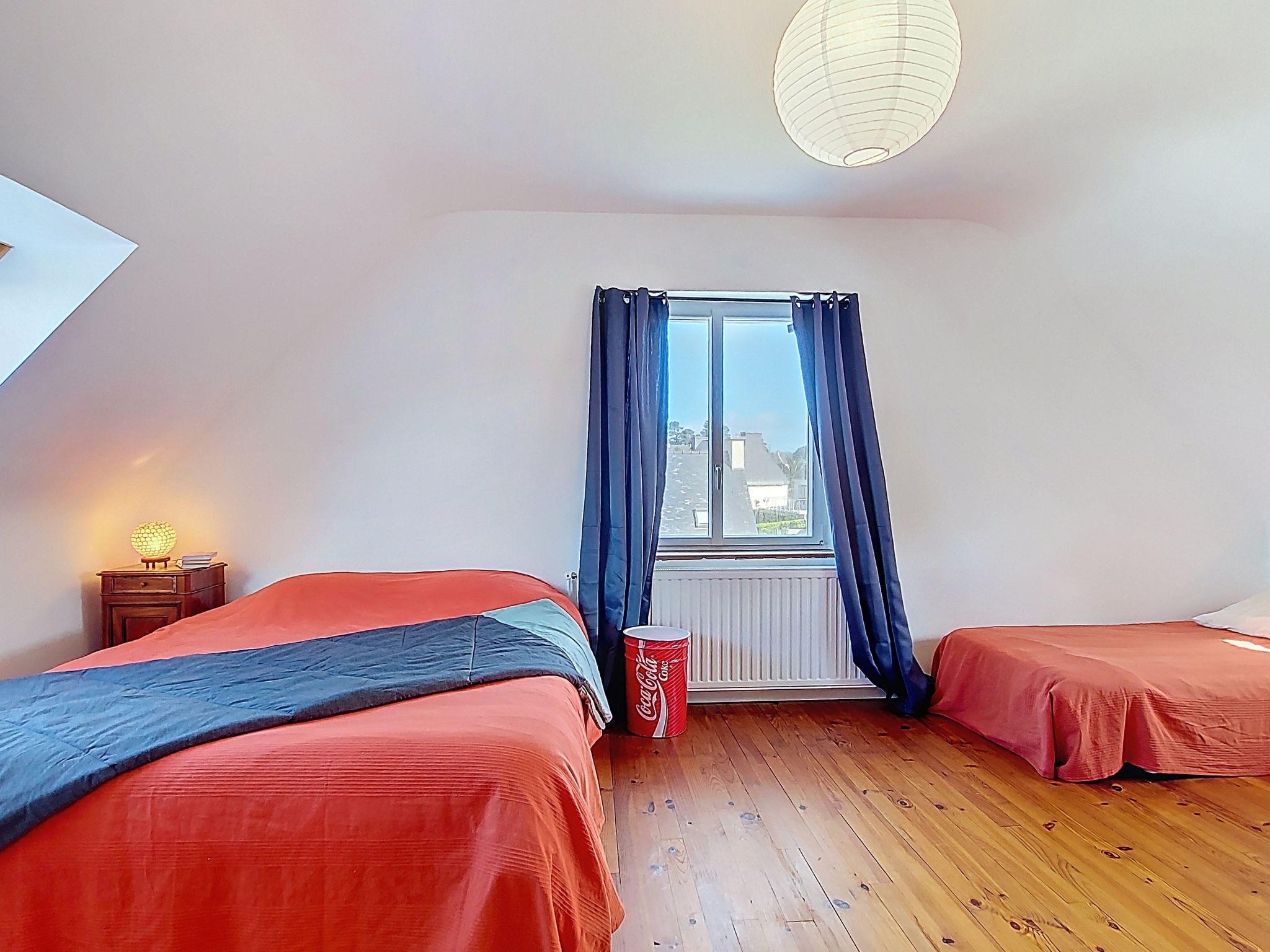 "Ty Kérael", 6-room house 120 m2 on 2 levels. Bright, beautiful and cosy furnishings: open living/dining room 20 m2 with open-hearth fireplace, digital TV and flat screen. Exit to the terrace. Office 12 m2. 1 room 12 m2 with 1 french bed (140 cm, length 190 cm). Open kitchen 12 m2 (mini-oven, oven, dishwasher, 4 gas rings, toaster, kettle, microwave, electric coffee machine). Bathroom, sep. WC. (on the lower ground floor: freezer). Upper floor: 1 room 16 m2 with 1 bed (90 cm, length 190 cm), 1 french bed (160 cm, length 200 cm). 1 room 12 m2 with 1 french bed (140 cm, length 190 cm). Bathroom. Electric heating. Large terrace 21 m2. Terrace furniture, barbecue (portable), deck chairs (3). Beautiful panoramic view of the sea. Facilities: washing machine, baby cot for up to 2 year olds, hair dryer. Internet (WiFi). Memory stick (free). Please note: non-smoking house. Maximum 1 small pet/ dog allowed. Smoke alarm. Offer by a private individual according to Art. 155, IV of CGI.
