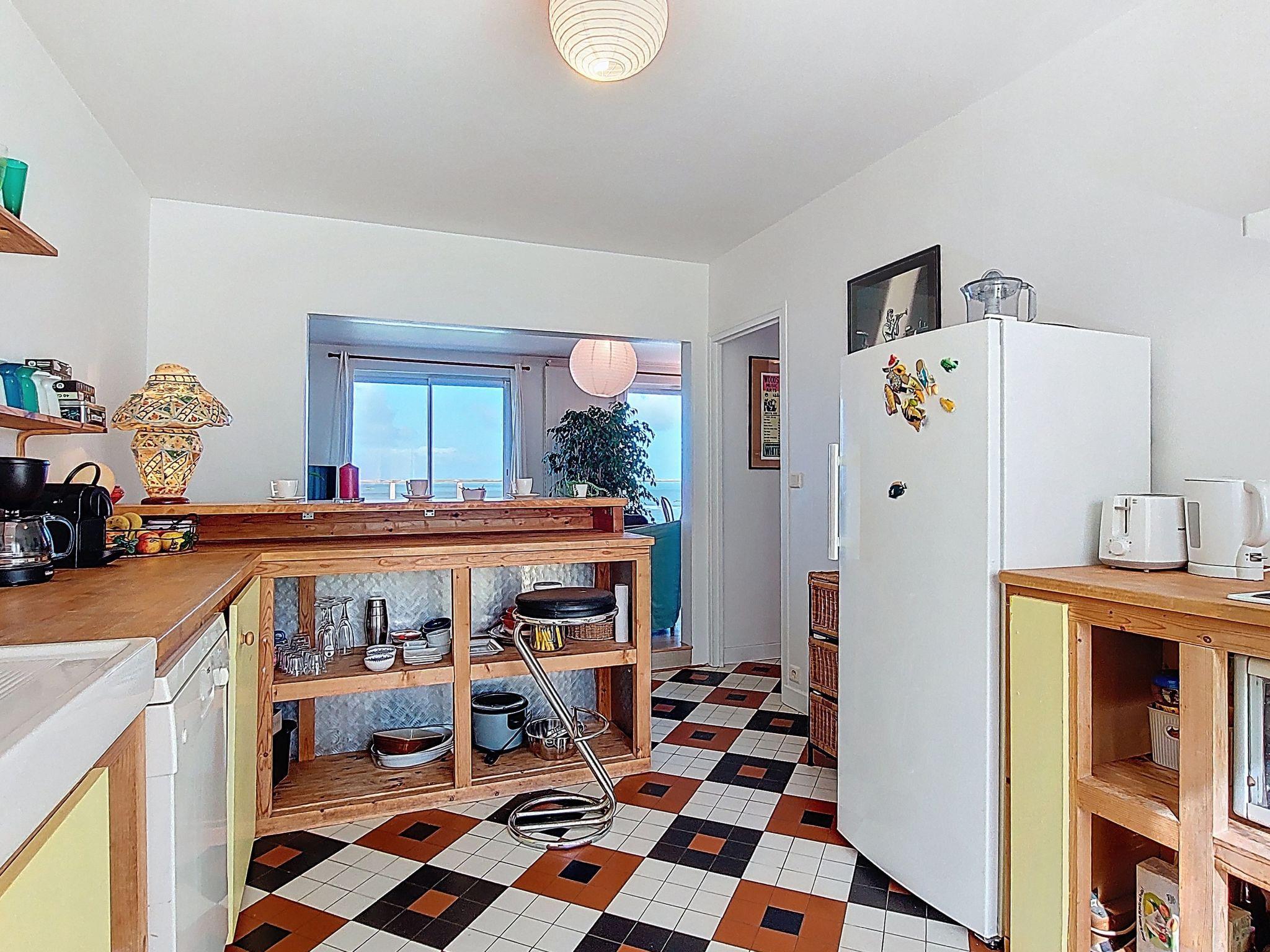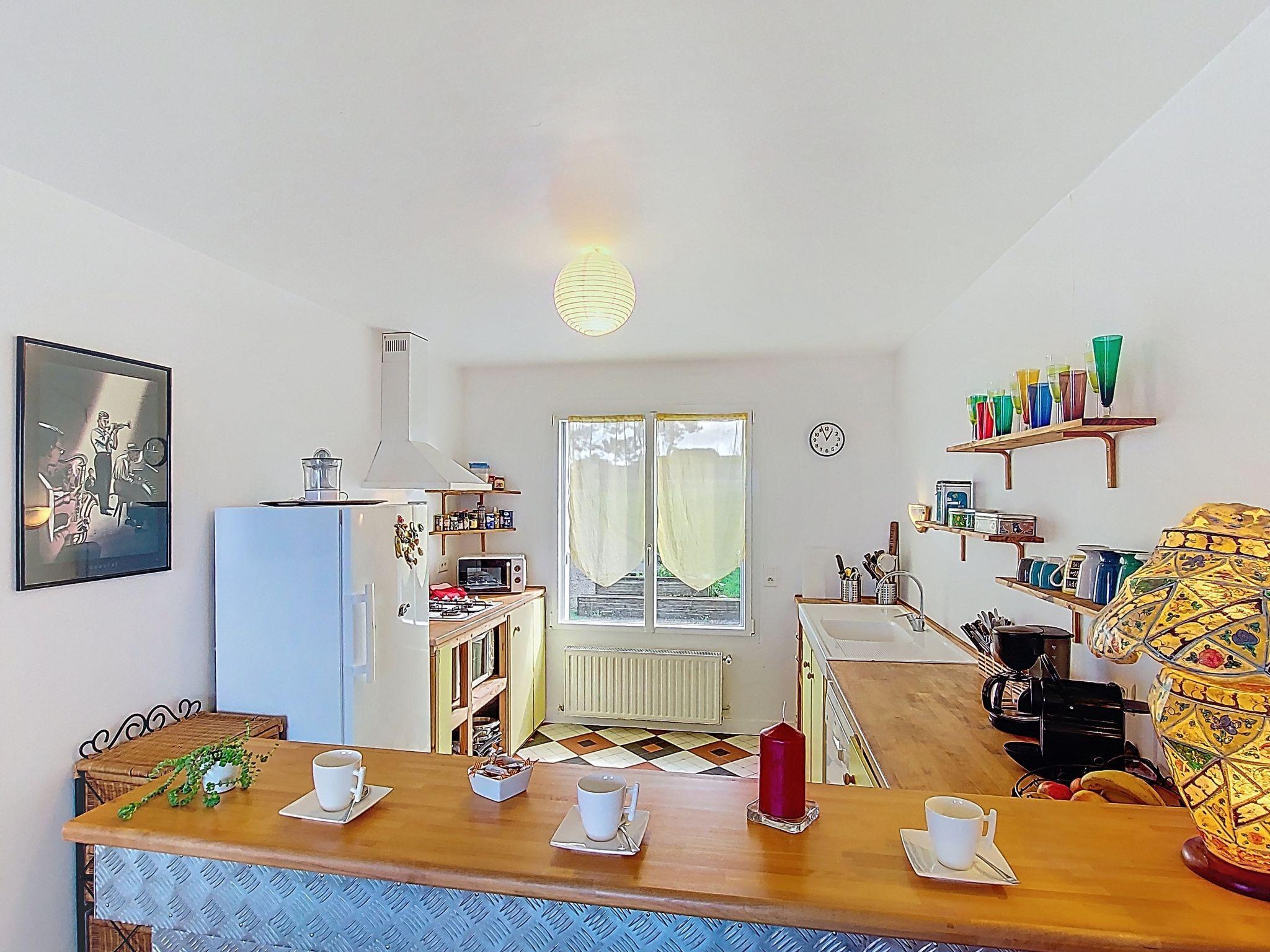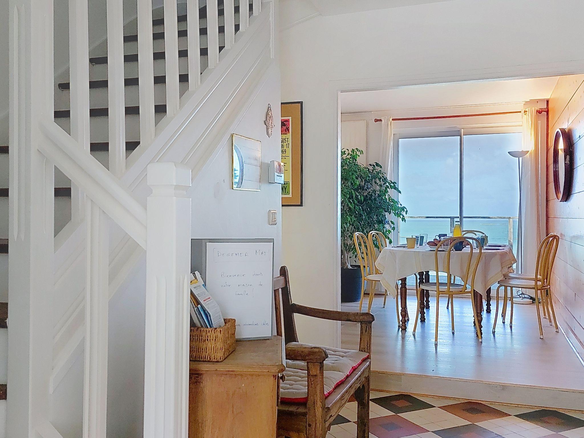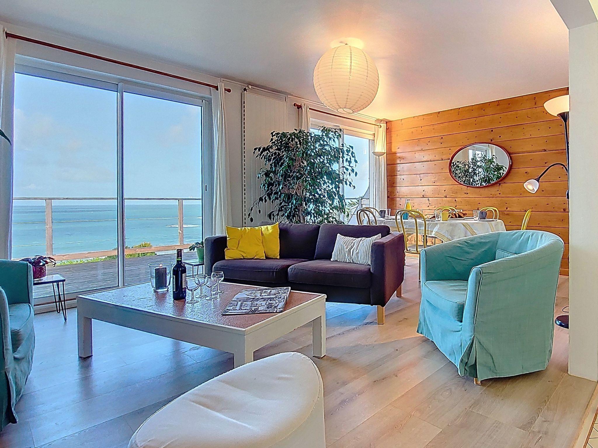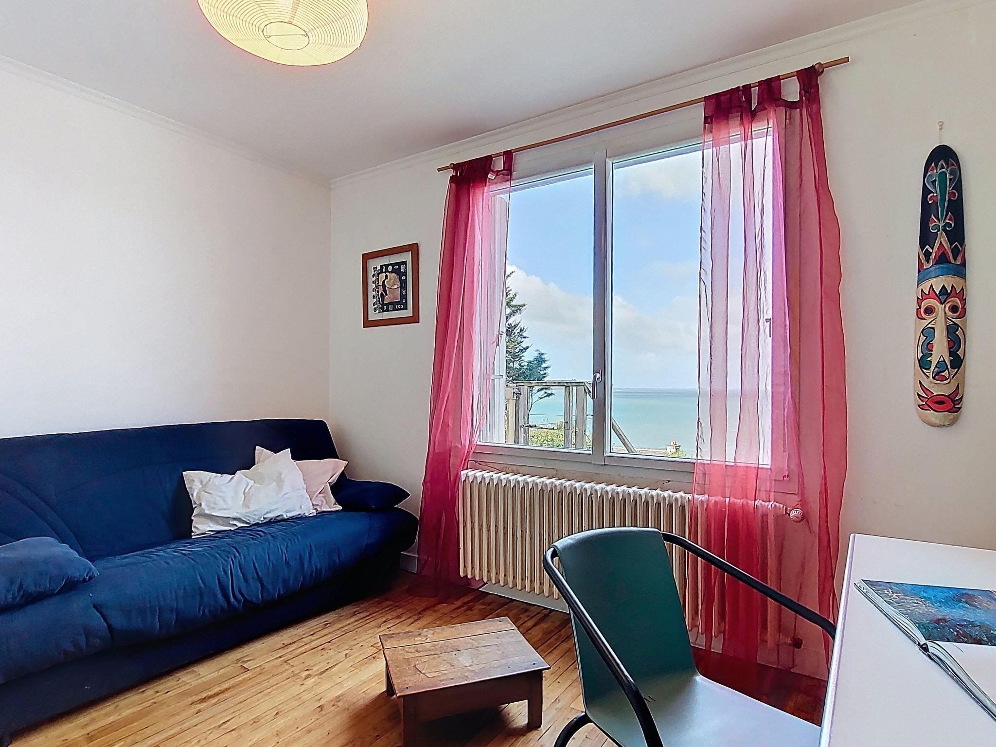 "Ty Kérael", 6-room house 120 m2 on 2 levels. Bright, beautiful and cosy furnishings: open living/dining room 20 m2 with open-hearth fireplace, digital TV and flat screen. Exit to the terrace. Office 12 m2. 1 room 12 m2 with 1 french bed (140 cm, length 190 cm). Open kitchen 12 m2 (mini-oven, oven, dishwasher, 4 gas rings, toaster, kettle, microwave, electric coffee machine). Bathroom, sep. WC. (on the lower ground floor: freezer). Upper floor: 1 room 16 m2 with 1 bed (90 cm, length 190 cm), 1 french bed (160 cm, length 200 cm). 1 room 12 m2 with 1 french bed (140 cm, length 190 cm). Bathroom. Electric heating. Large terrace 21 m2. Terrace furniture, barbecue (portable), deck chairs (3). Beautiful panoramic view of the sea. Facilities: washing machine, baby cot for up to 2 year olds, hair dryer. Internet (WiFi). Memory stick (free). Please note: non-smoking house. Maximum 1 small pet/ dog allowed. Smoke alarm. Offer by a private individual according to Art. 155, IV of CGI.