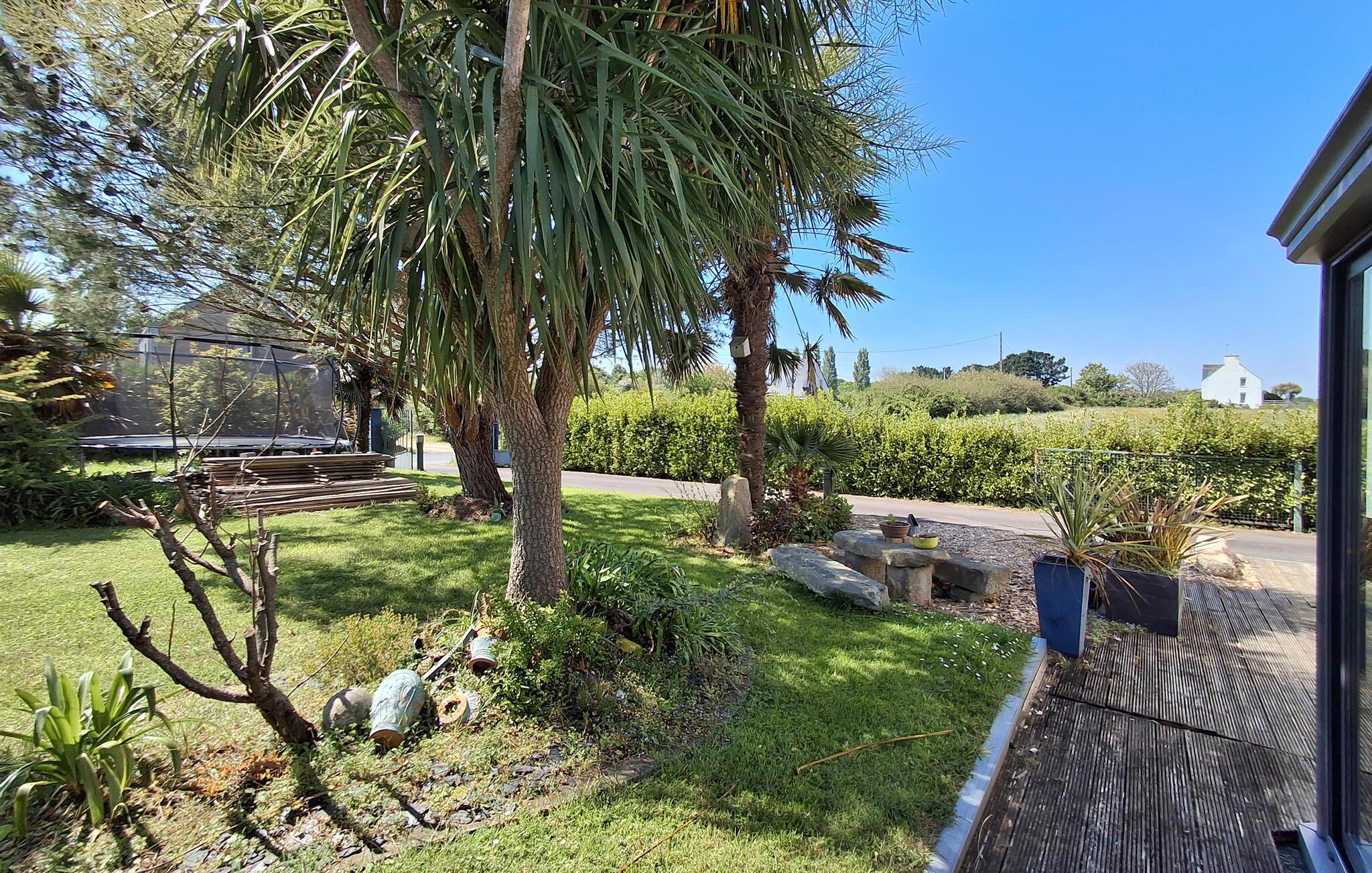 Gehen Sie nach draußen und entspannen Sie auf einer der Sonnenliegen im gepflegten Garten. Flanieren Sie auf der Holzterrasse entlang blühender Pflanzen und hoher Palmen und suchen Sie sich ein schattiges Plätzchen. Der Garten ist grün, gepflegt und bietet viel Platz für Bewegung und Ruhe gleichermaßen.