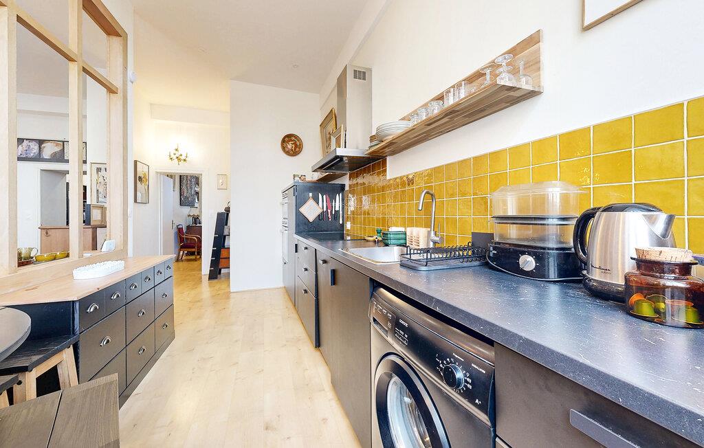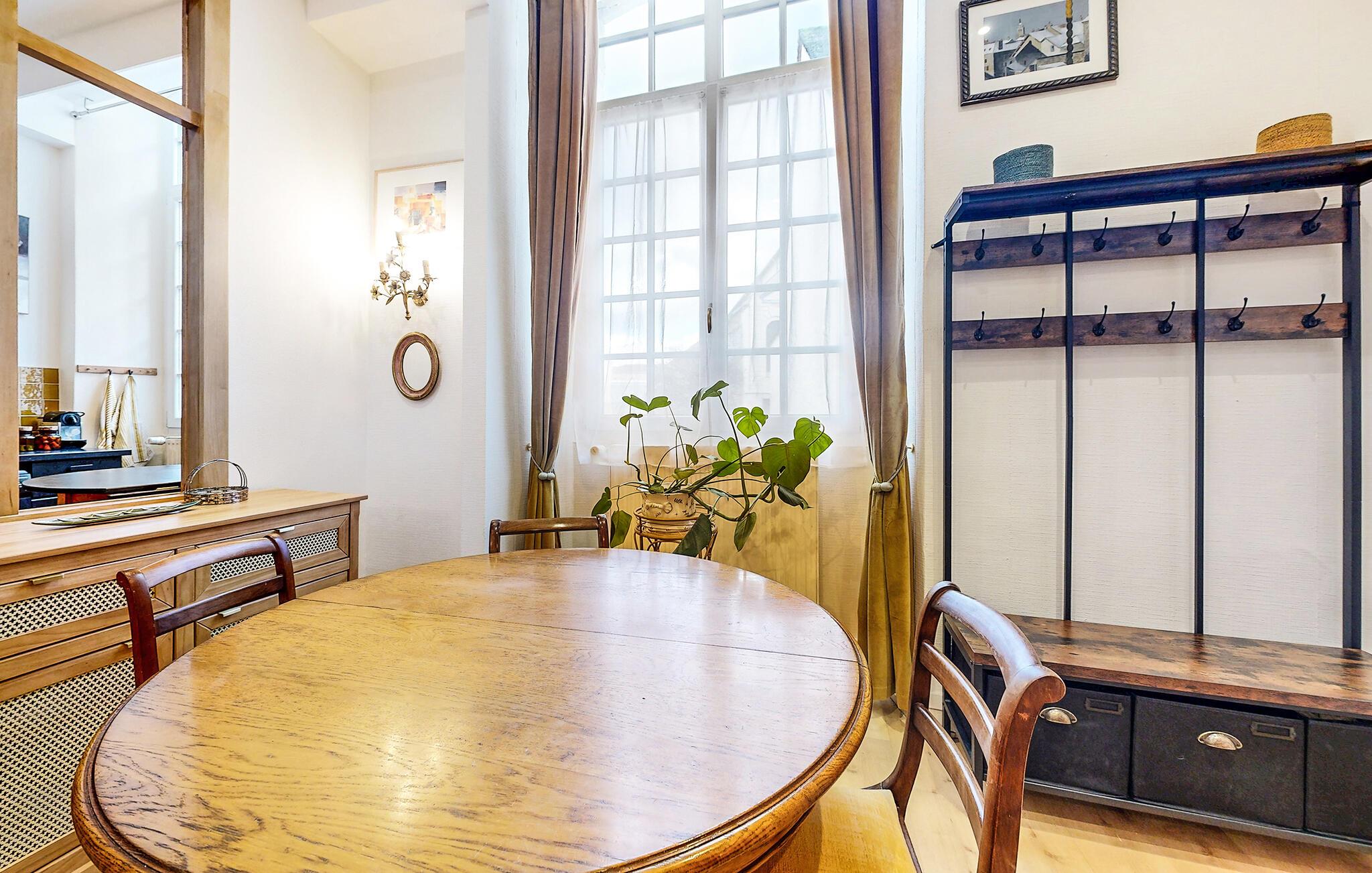 Willkommen in Ihrer stilvollen Ferienwohnung im Herzen von Lons-le-Saunier. Lassen Sie sich von der eleganten Einrichtung und der warmen Atmosphäre verzaubern. Diese geschmackvoll renovierte Unterkunft im Erdgeschoss eines historischen Gebäudes bietet Ihnen den idealen Rückzugsort für einen entspannten Aufenthalt. Betreten Sie das großzügige Wohnzimmer und machen Sie es sich auf dem Sofa bequem. Die harmonische Mischung aus modernen Elementen und klassischen Akzenten, wie der Wanddeko und den edlen Holzmöbeln, schafft eine einzigartige Wohlfühlatmosphäre. Schnappen Sie sich ein Buch aus dem Bücherregal oder genießen Sie ein Glas Wein in der gemütlichen Sitzecke. Die offene Küche lädt zum gemeinsamen Kochen ein. Nehmen Sie am stilvollen Esstisch Platz und lassen Sie den Abend in angenehmer Gesellschaft ausklingen.