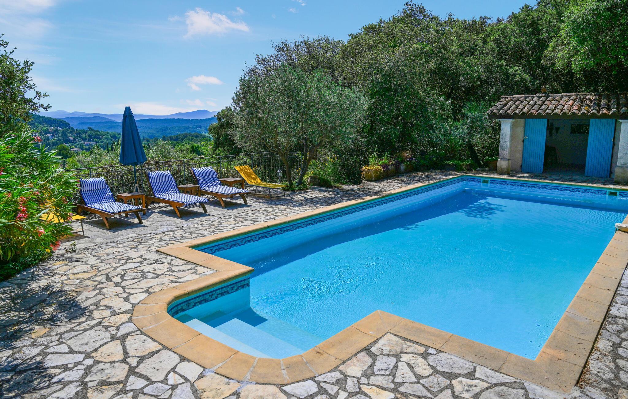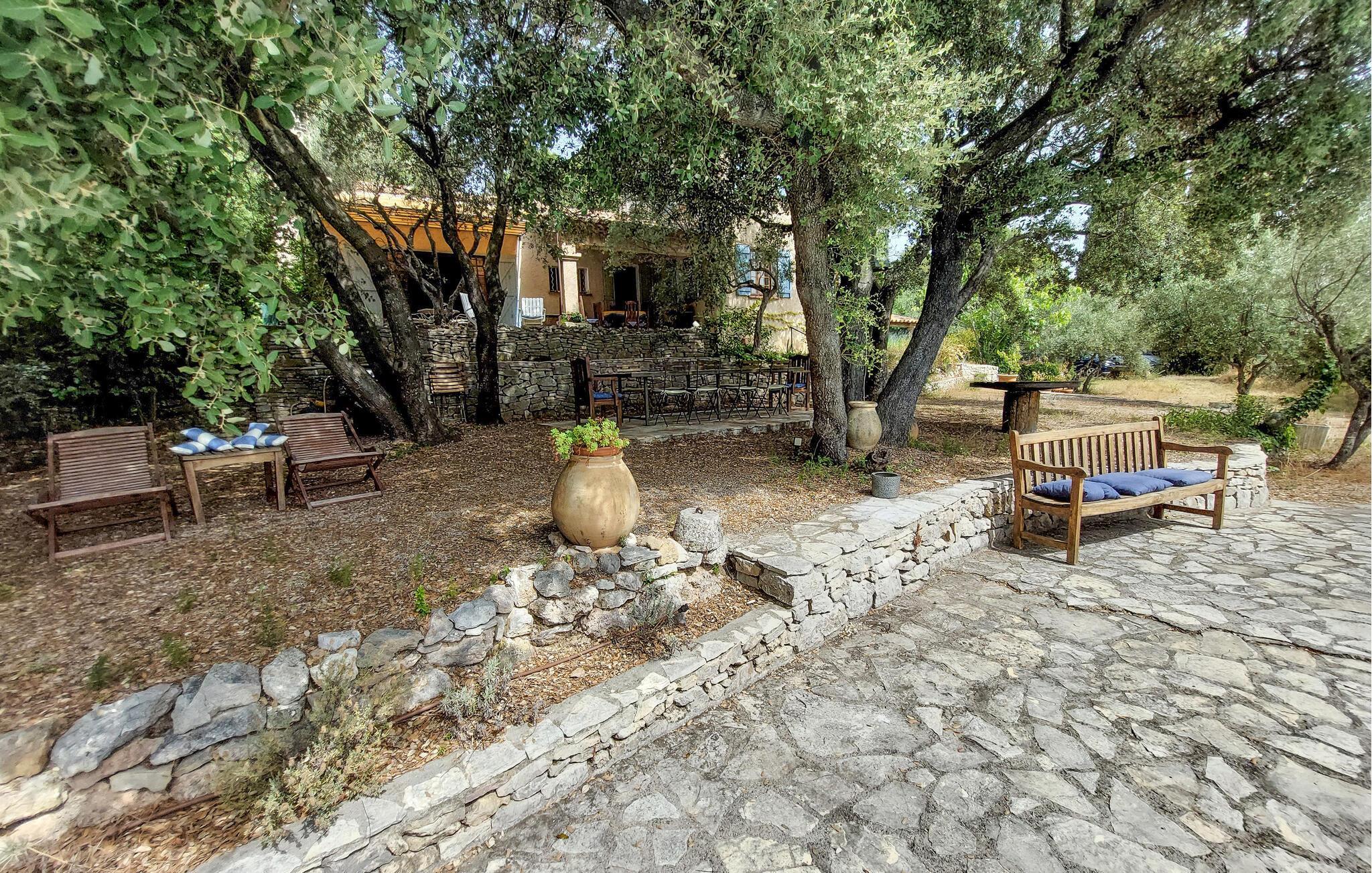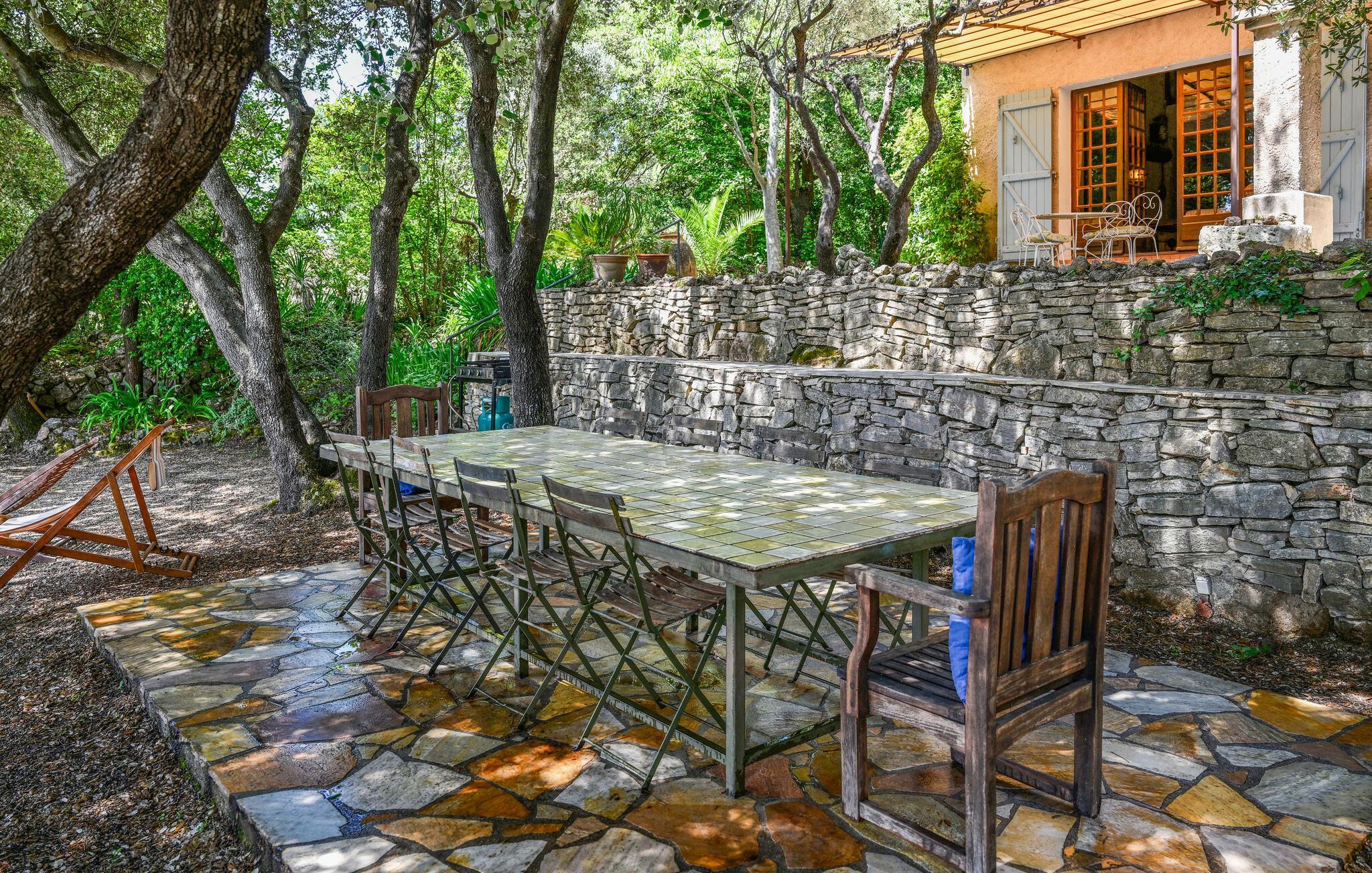 Entdecken Sie die verschiedenen Terrassenbereiche im mediterranen Garten, wo Sie unter der Sonne entspannen oder im Salzwasserpool schwimmen können. Die private Lage und die herrliche Aussicht auf die Umgebung machen Ihren Aufenthalt zu einem unvergesslichen Erlebnis.