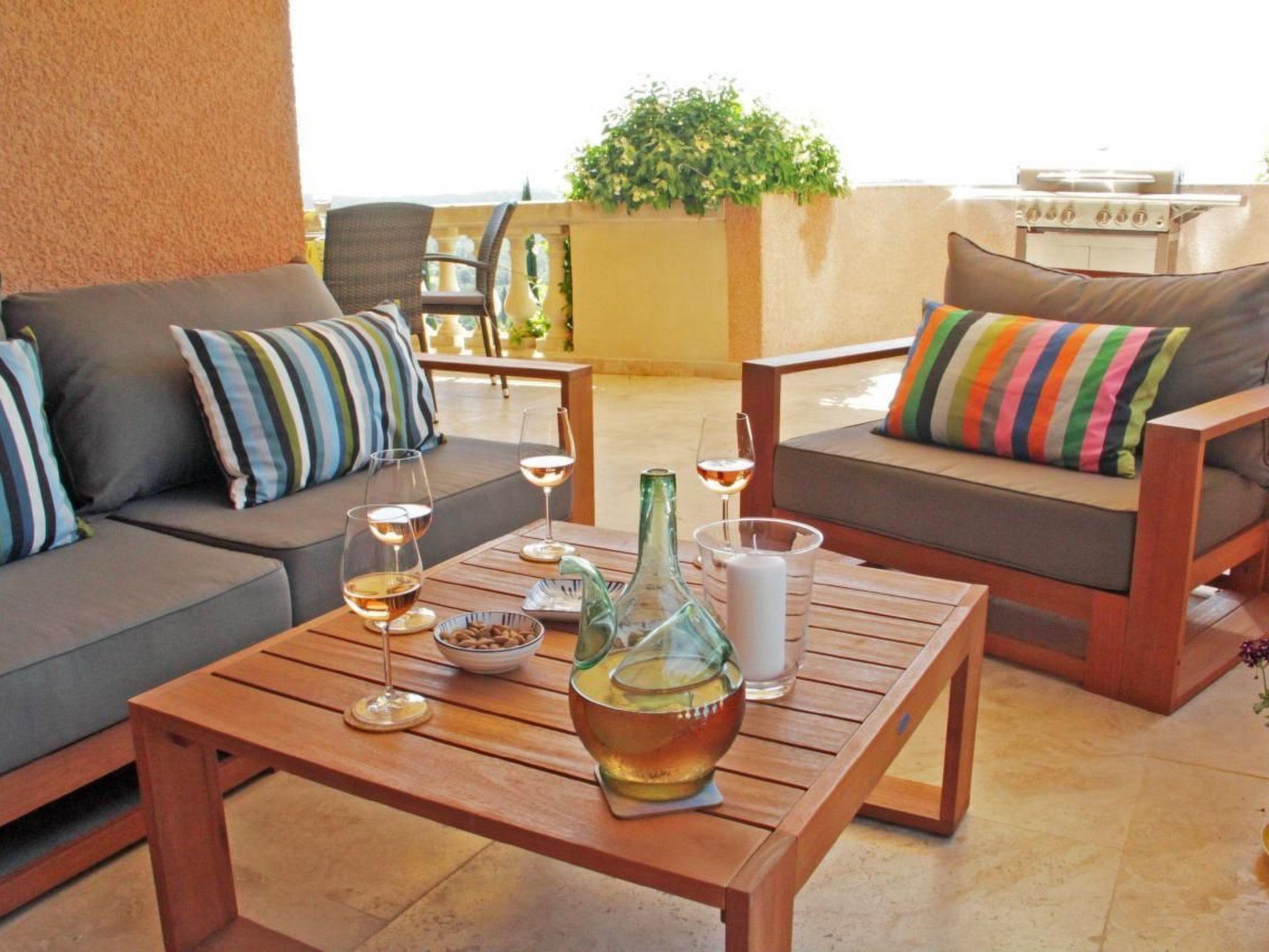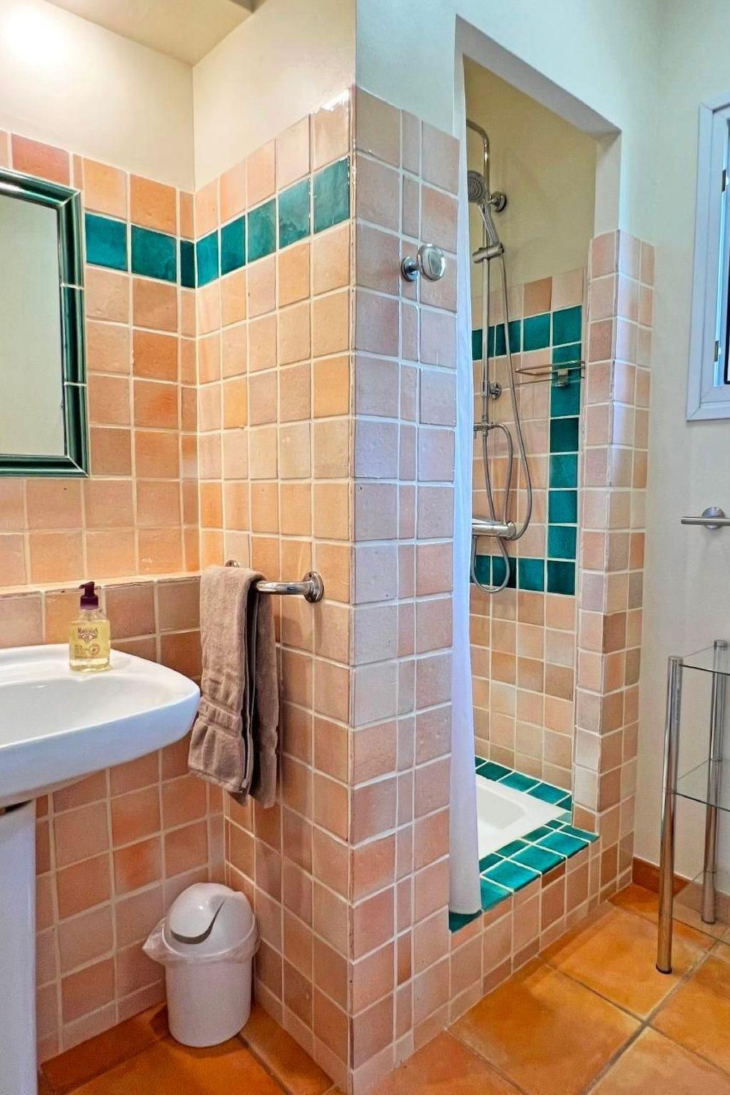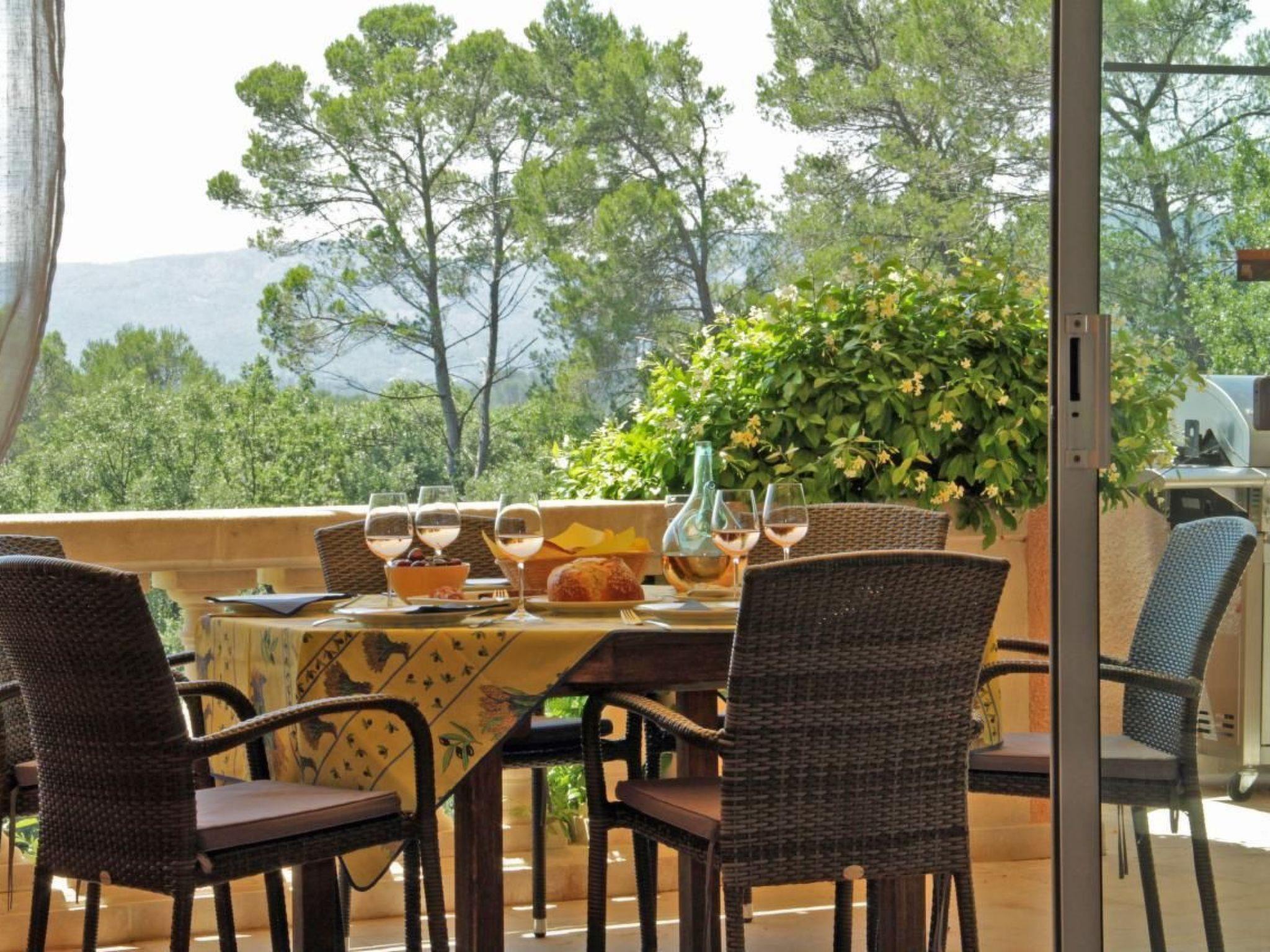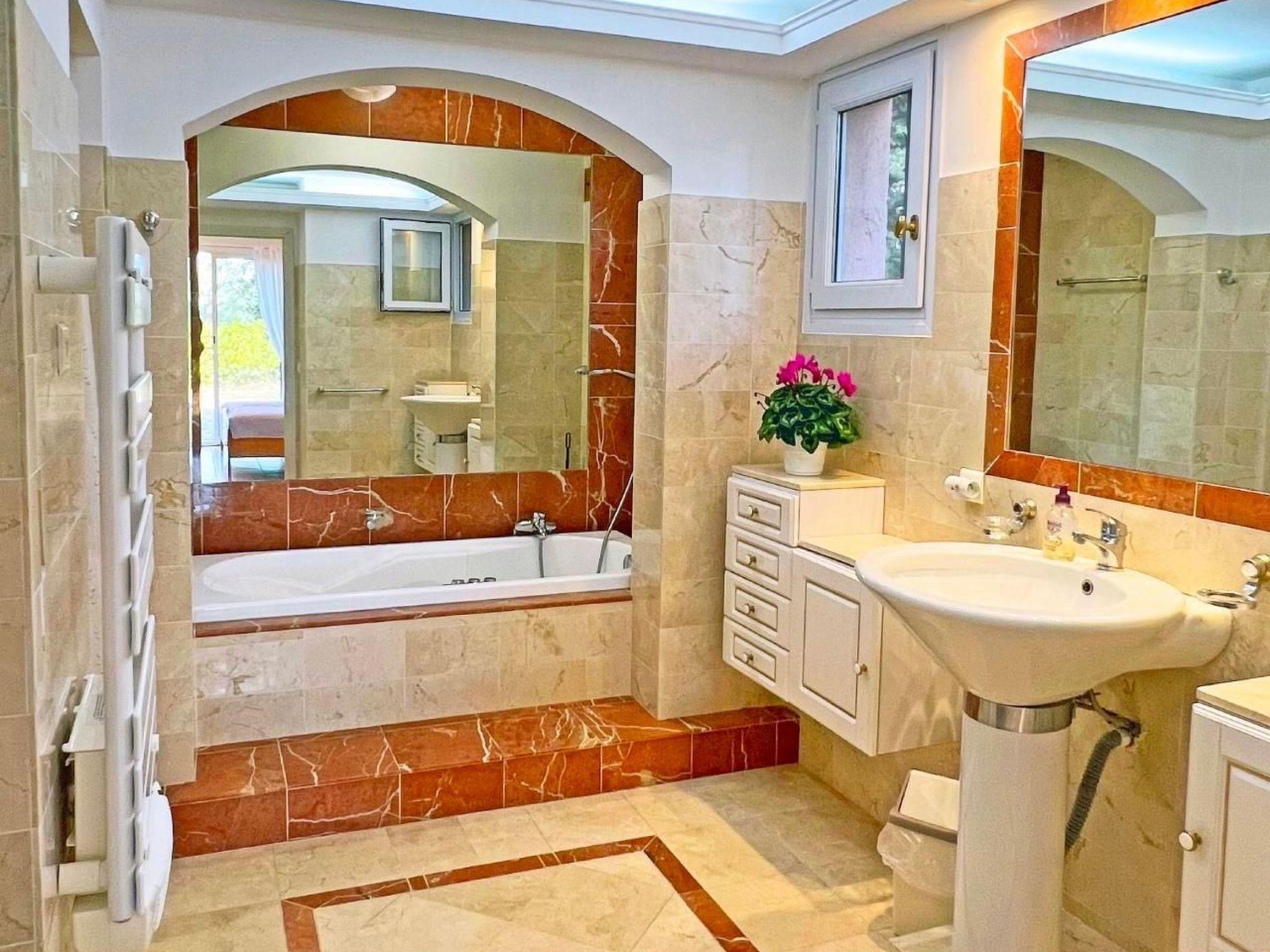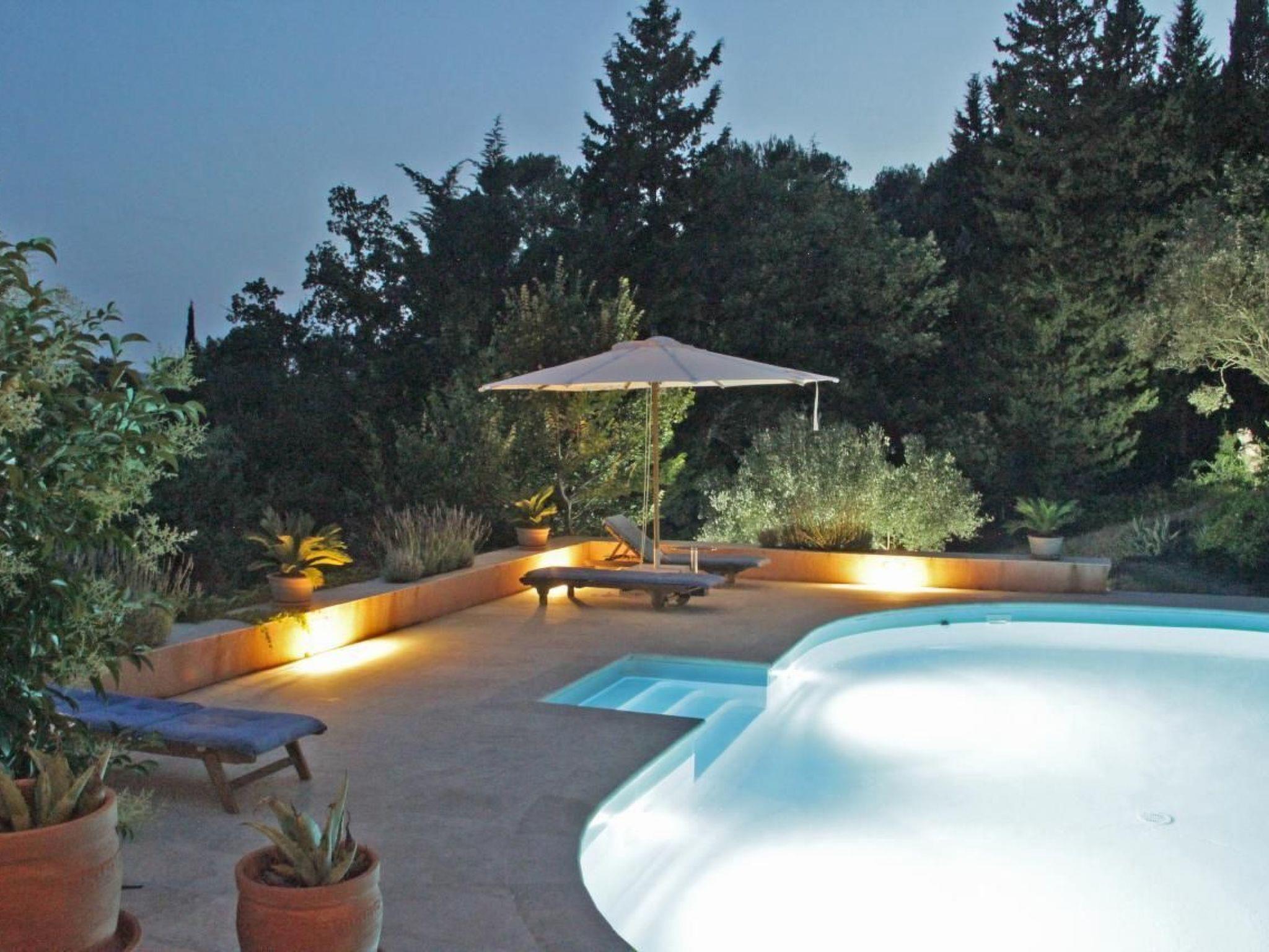 The outdoor area enchants with two spacious terraces, the pool deck and a flowering garden. The pergola-covered west-facing terrace and the outdoor lighting create magical evening moods. The private saltwater pool (10 x 6 metres) invites you to dive in and sunbathe, surrounded by a typical Provençal garden with olive trees, cypresses, pines and oaks.