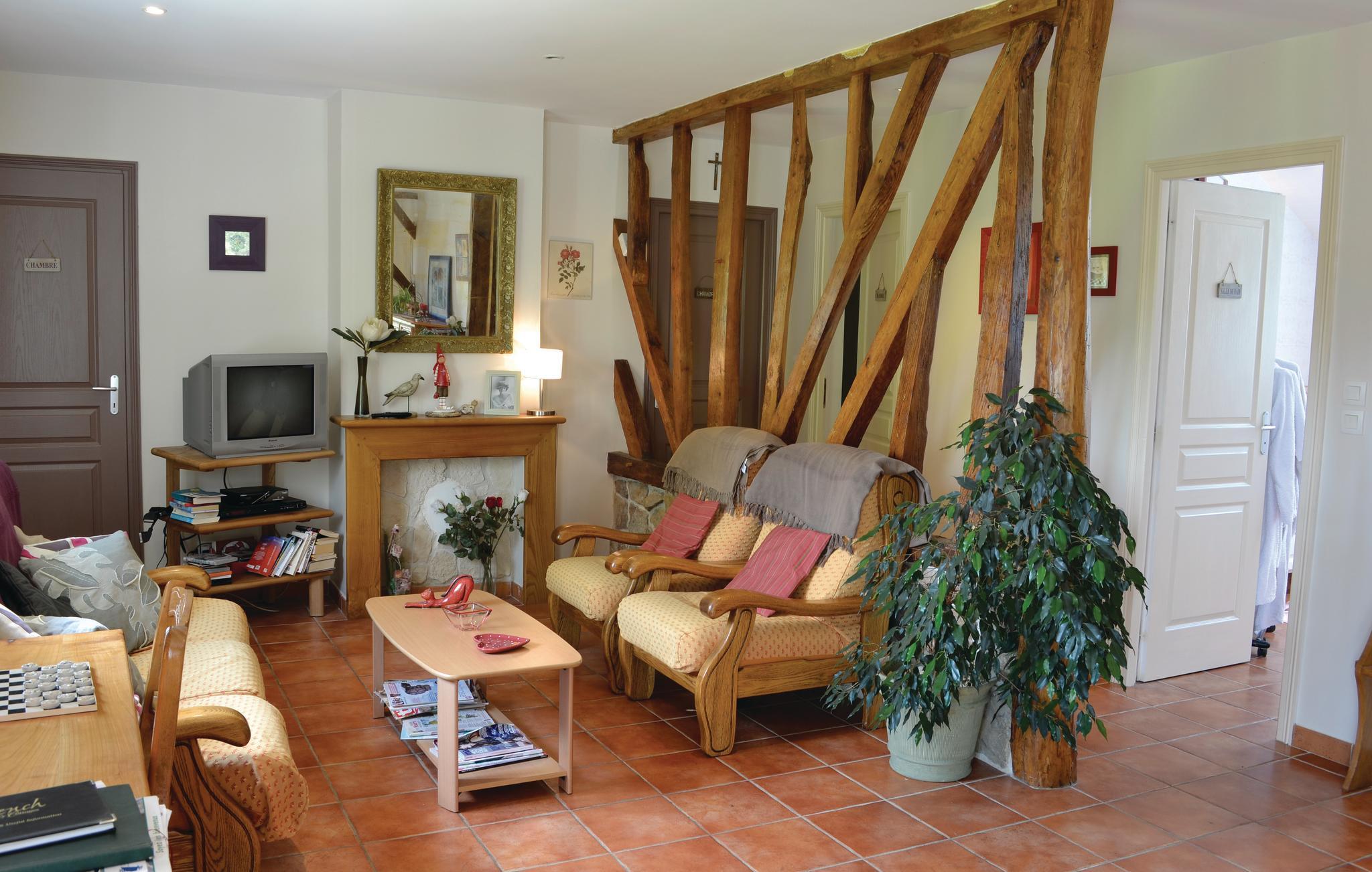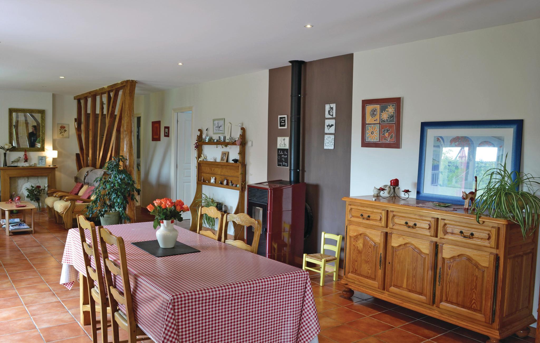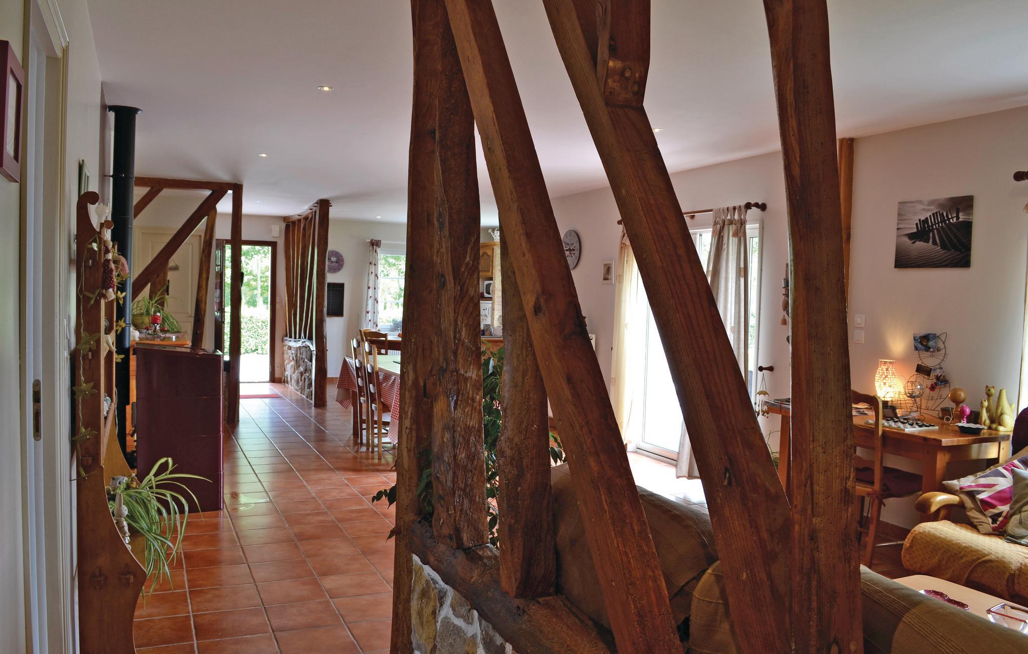 Dette renoverede fritliggende hus (med originale bjælker) ligger på en stille vej og tilbyder en åben planløsning med brændeovn.