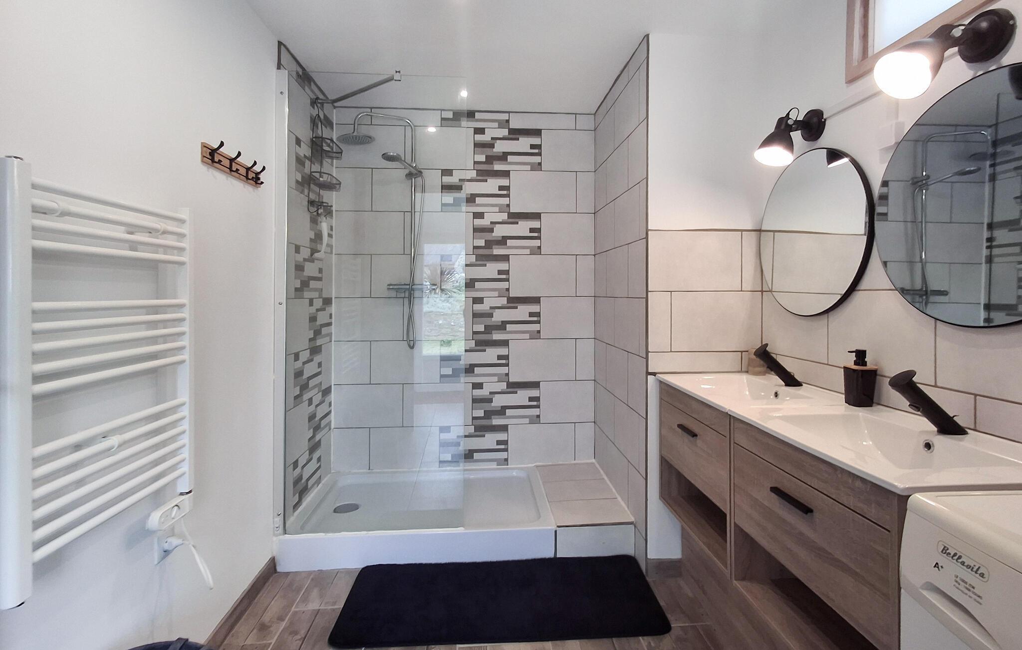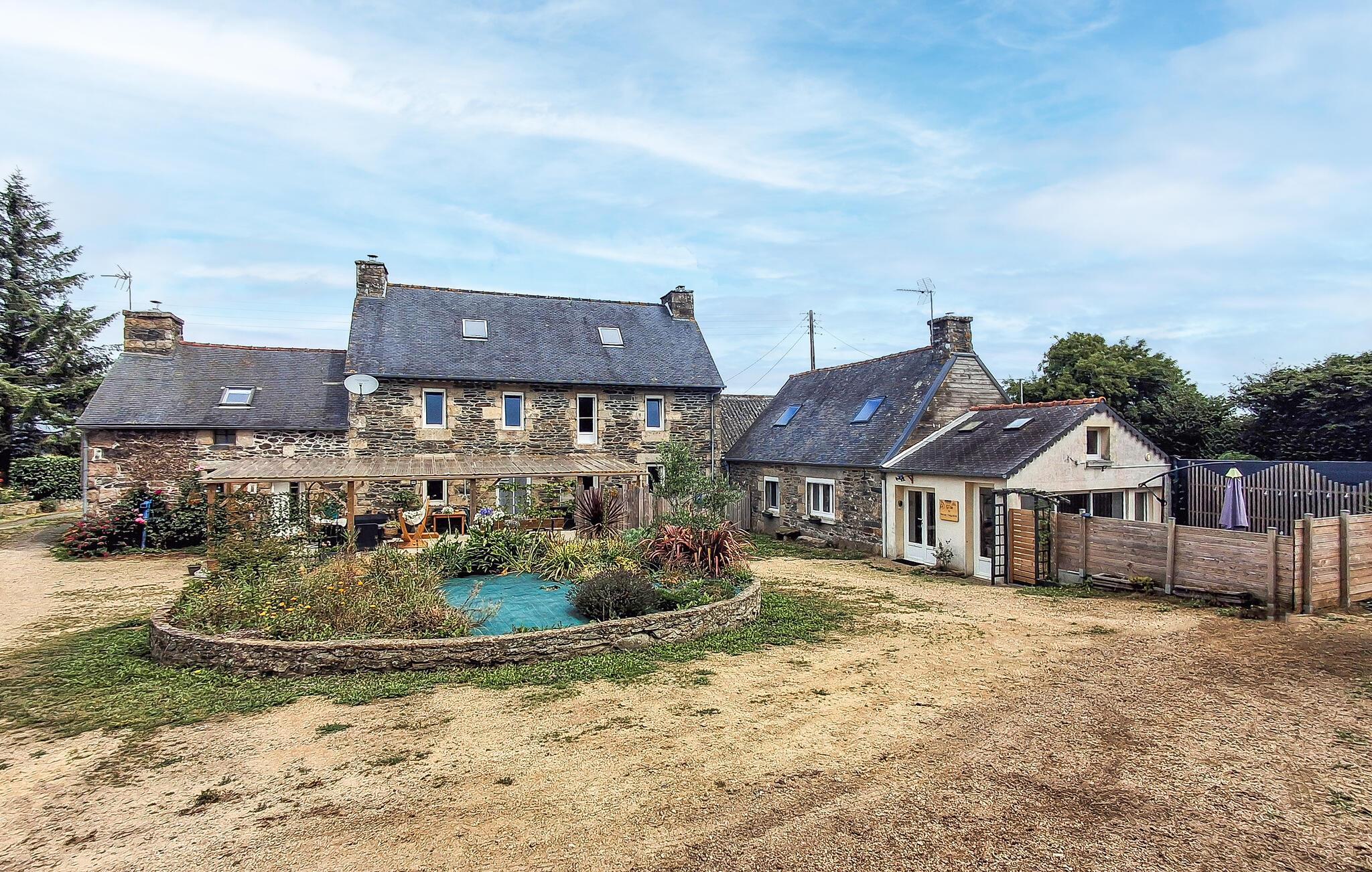 Im Herzen eines ruhigen Weilers und von einem weitläufigen Garten umgeben, heißt Sie dieses helle und sorgfältig renovierte bretonische Landhaus willkommen. Fühlen Sie sich wie zu Hause, während Sie im offen gestalteten Wohnraum gemeinsame Familienzeit genießen. Zaubern Sie leckere Gerichte aus regionalen Produkten und veranstalten Sie gemütliche Spieleabende, während der Kaminofen den Raum in ein warmes Licht taucht.
