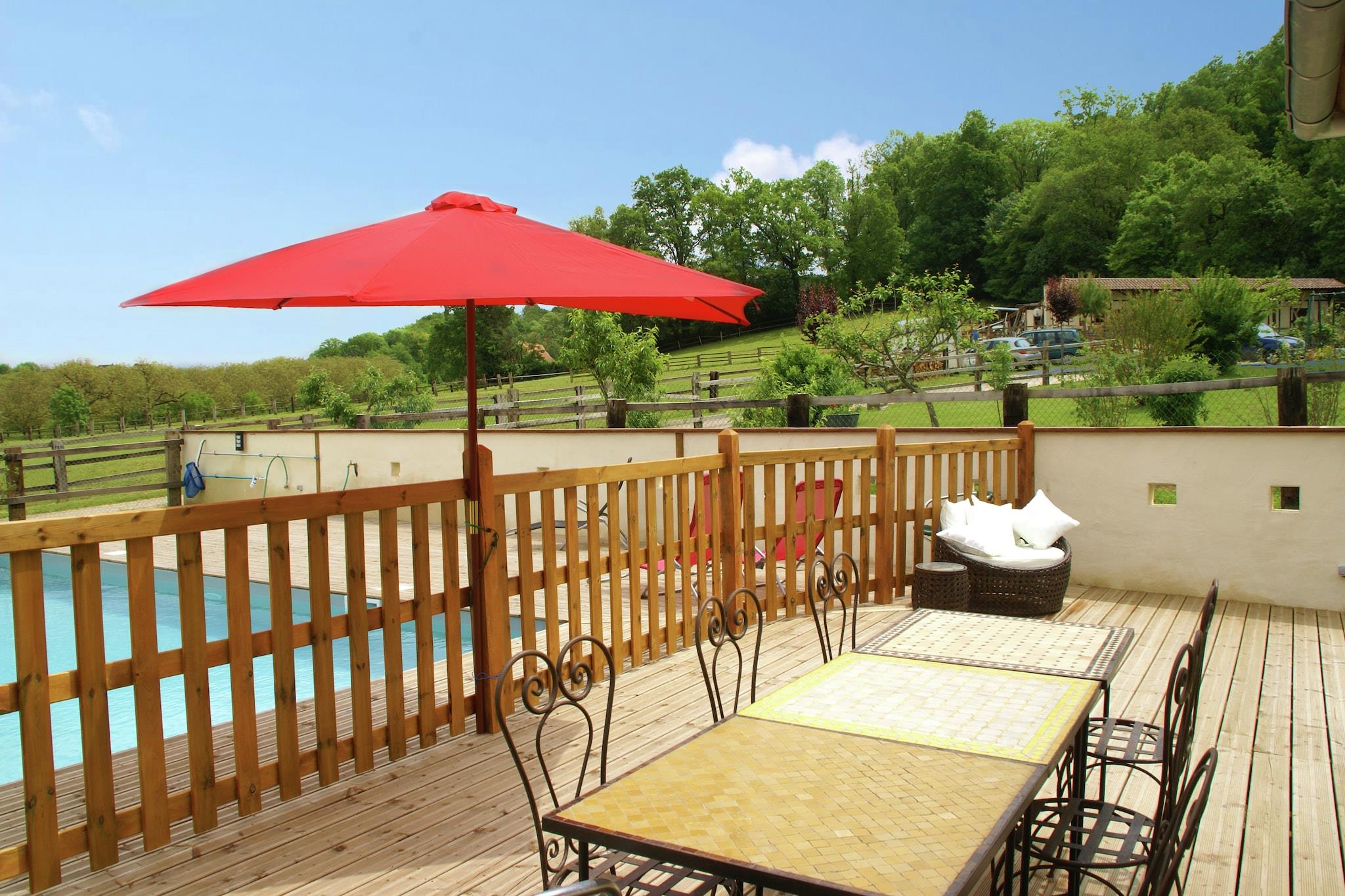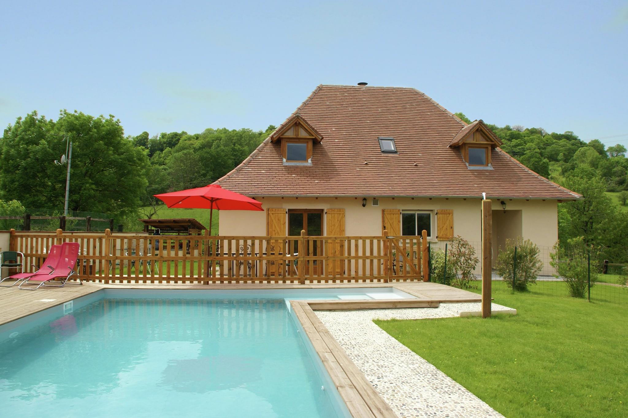 Set in the picturesque village of Loubressac in the Dordogne region, this spacious holiday home offers an ideal retreat for families or groups seeking countryside calm with modern comforts. Surrounded by greenery and traditional charm, the property provides privacy, space, and excellent outdoor facilities for a relaxing stay in one of France’s most beautiful villages. On the ground floor, guests are welcomed into a comfortable living room with a TV and seating area, perfect for unwinding after a day of exploration. The open kitchen is fully equipped with a dining table, coffee machine, microwave, dishwasher, and fridge-freezer, making group meals easy and enjoyable. This level also includes a double bedroom, a modern bathroom, and a separate toilet. Upstairs, the home offers two generously sized bedrooms designed for flexible sleeping arrangements. One bedroom includes two single box beds and a double bed, while the other features a single bed and two double beds, ideal for larger families or mixed groups. A second full bathroom serves this floor for added convenience. Step outside through the garden doors onto a private terrace overlooking the fenced garden, complete with garden furniture and a barbecue for outdoor dining. The highlight is the private heated swimming pool (open May to October), perfect for enjoying warm days in complete privacy. Additional amenities include a washing machine, heating, parking, a children’s bed, and a high chair, making this home well-suited for longer family stays in the French countryside.