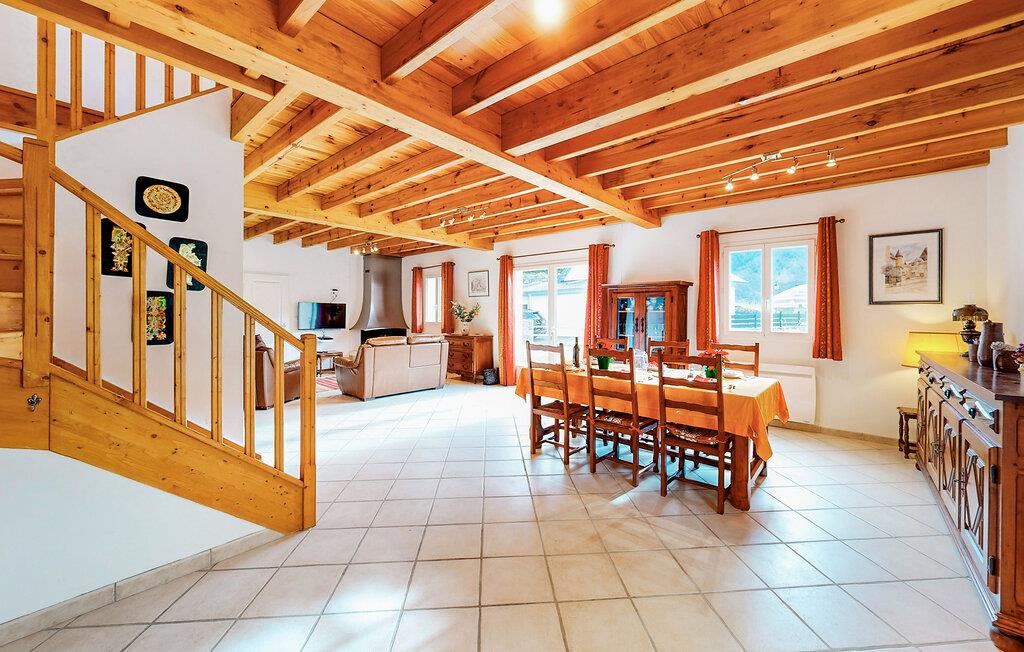 Umgeben von der zauberhaften Bergwelt empfängt das Haus seine Gäste. Nutzen Sie es als gemütliche Basis für eine schöne Auszeit mit Erkundungen der Umgebung und Erlebnissen in der Natur. Genießen Sie schon beim Aufwachen einen schönen Blick in Freie. Schmieden Sie im Wohnbereich unter dekorativen Holzdecken Pläne für die kommenden Tage und entspannen Sie in der Sitzgruppe.