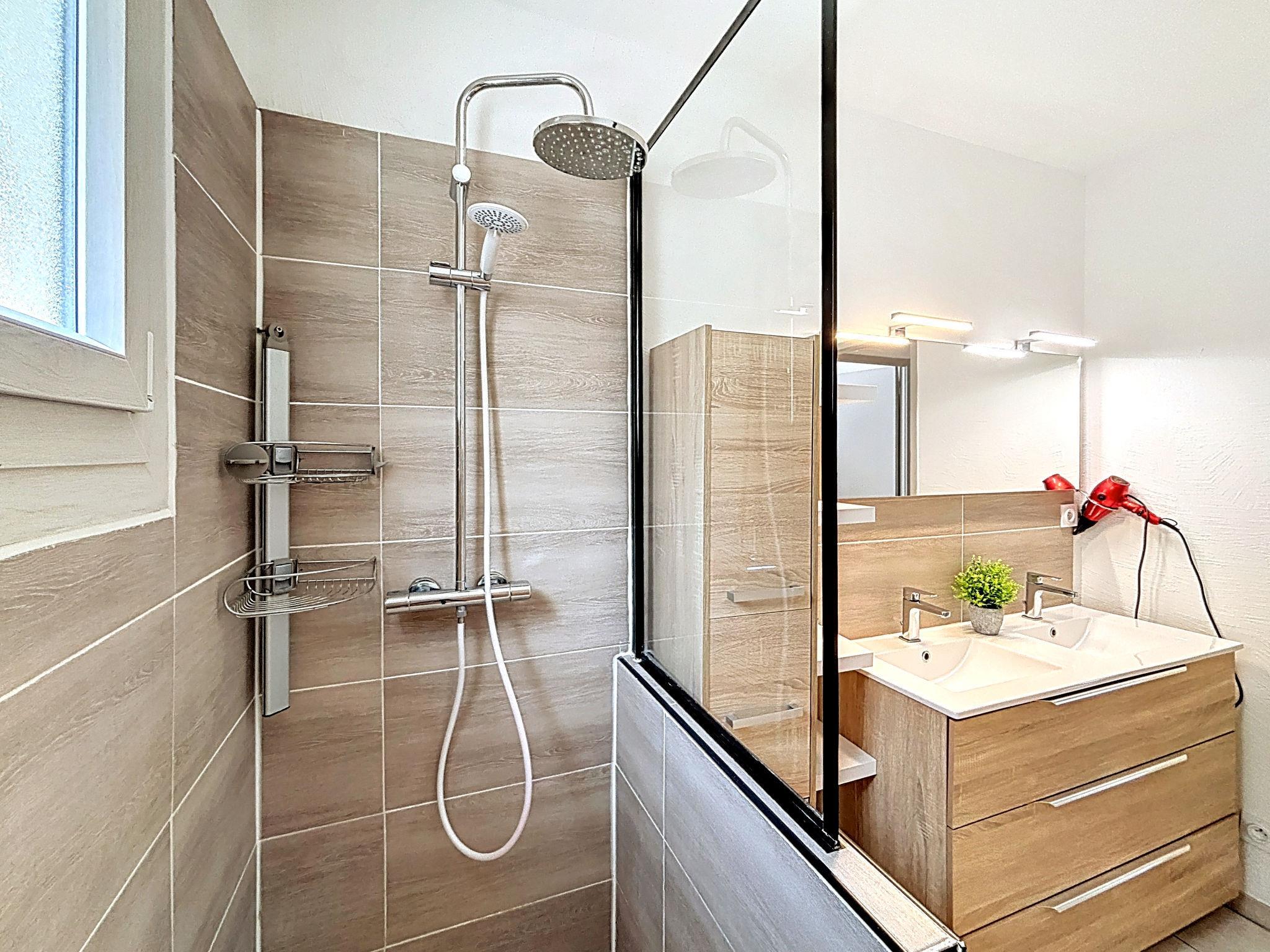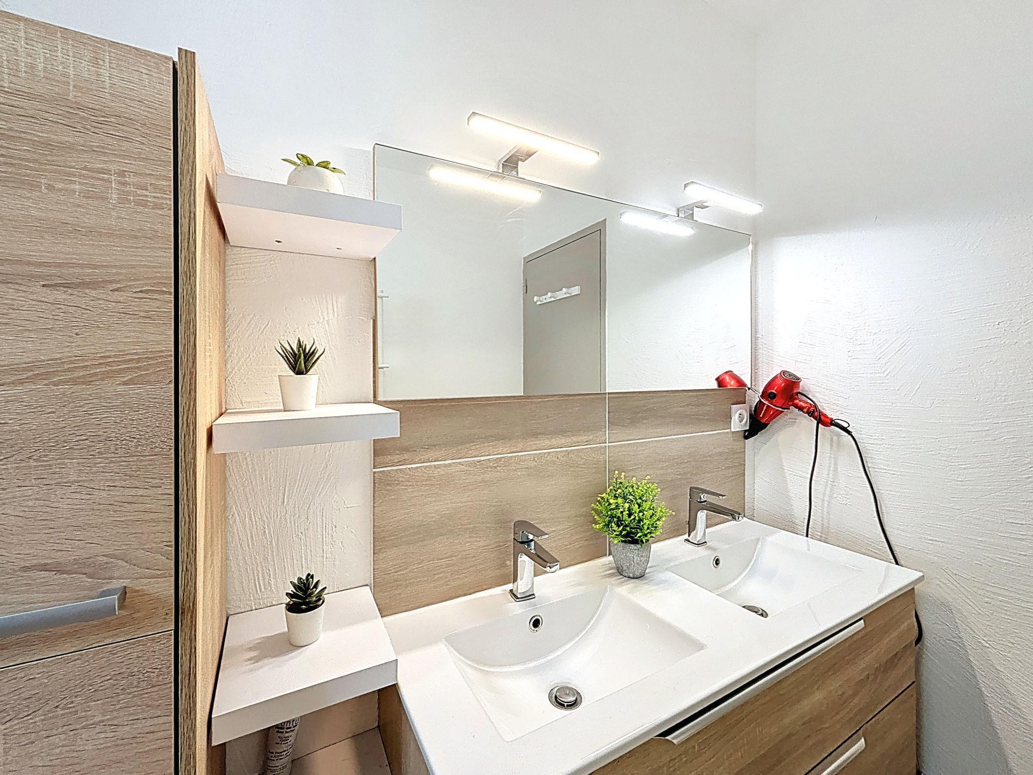 3-room terraced house 72 m2. Comfortable furnishings: large lounge with TV (flat screen), air conditioning. 1 room with 1 french bed (140 cm, length 190 cm), air conditioning. 1 room with 1 french bed (160 cm, length 190 cm), air conditioning. Open kitchen (oven, dishwasher, 3 induction hot plates, toaster, kettle, microwave, freezer, electric coffee machine, Capsules for coffee machine (TASSIMO) extra) with bar. Shower, sep. WC, double hand-basin. 2 terraces 30 m2, south facing position and north facing position. Terrace furniture, barbecue, deck chairs. Facilities: washing machine, iron, mosquito net, hair dryer. Internet (WiFi, free). Please note: suitable for families. Non-smoking house. 1 small pet/ dog allowed. Smoke alarm. Offer by a private individual according to Art. 155, IV of CGI. 1730301945246