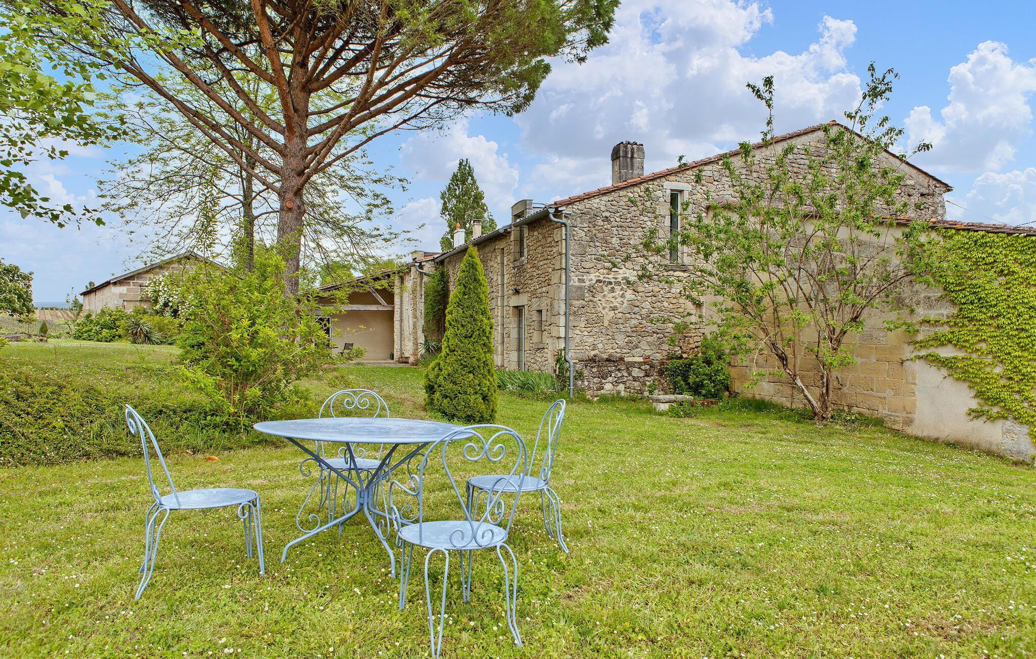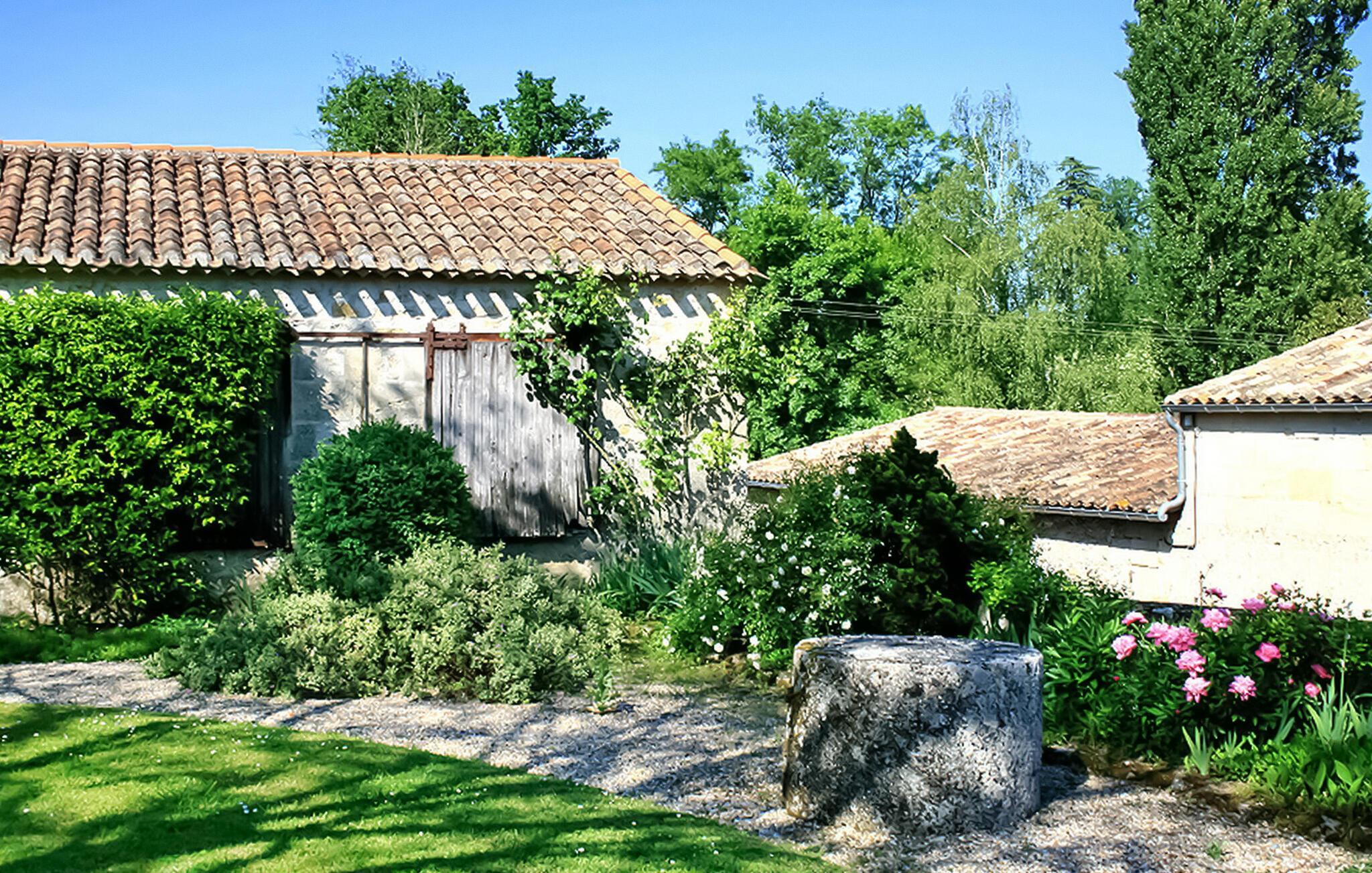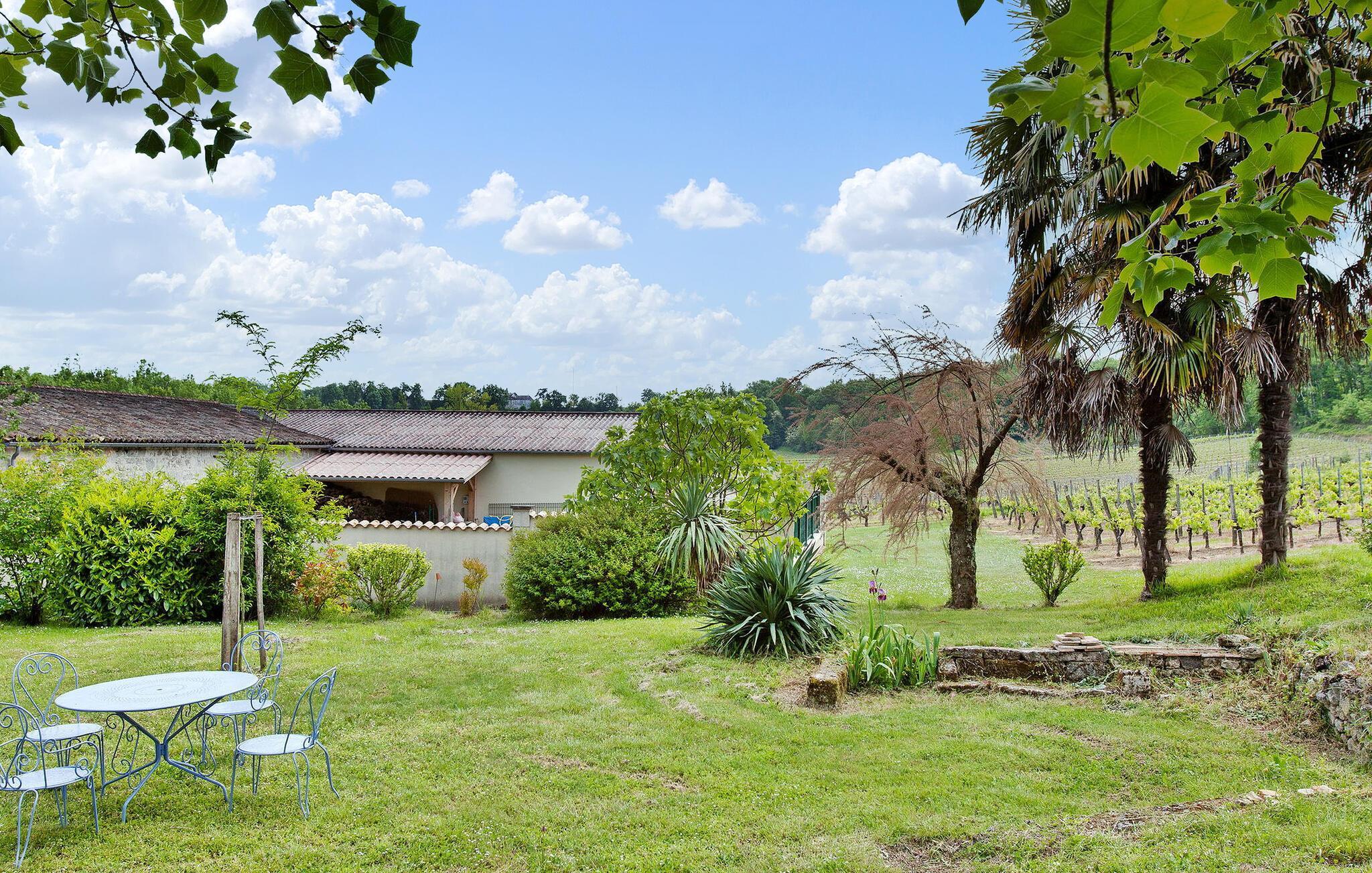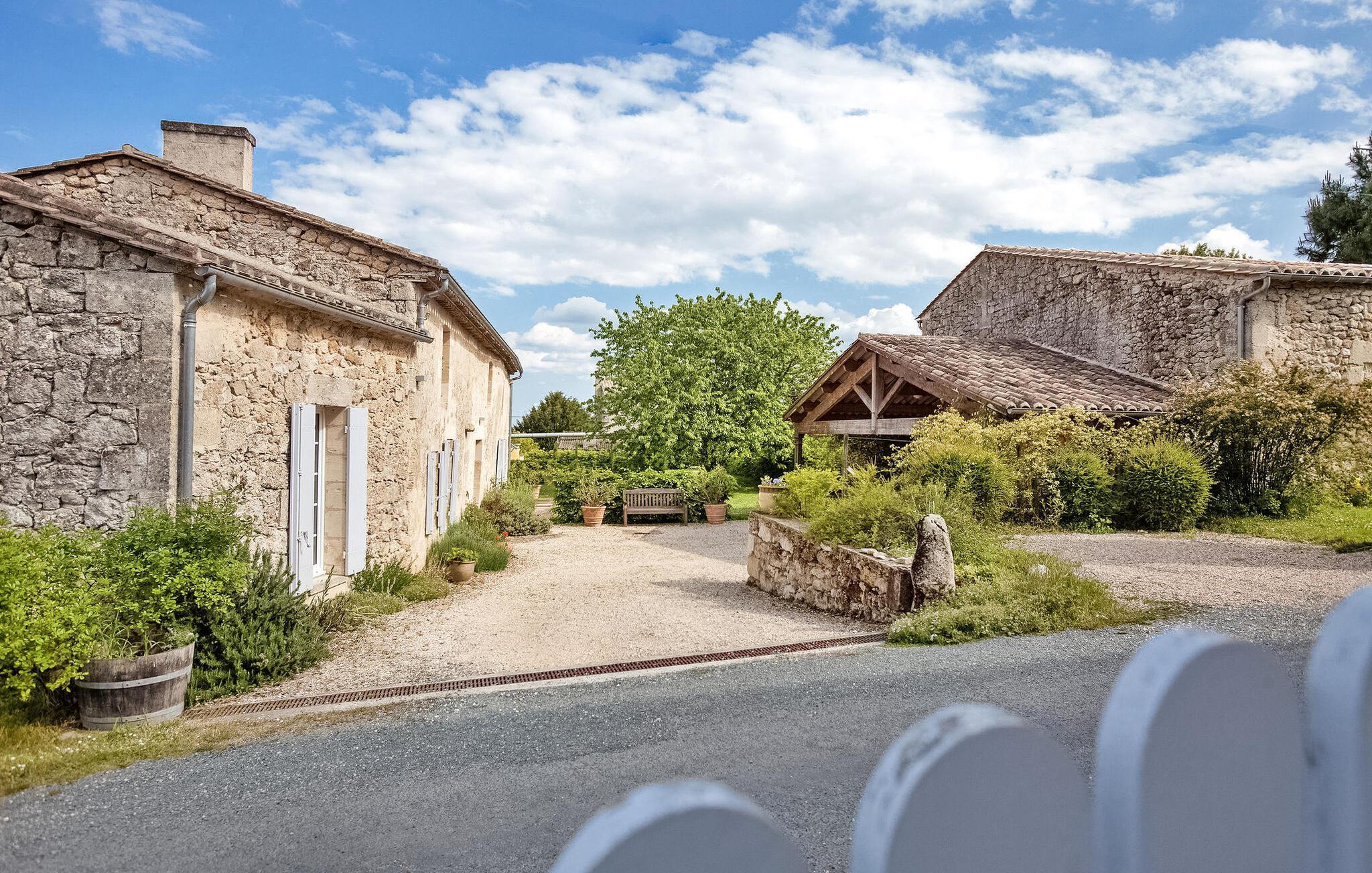 Dieses Ferienhaus befindet sich in traditionellen Nebengebäuden von Gironde-Häusern und bietet einen malerischen Blick auf die Weinberge. Das Erdgeschoss umfasst eine voll ausgestattete Küche/Essbereich, einen komfortablen Wohnbereich mit Zugang zum Garten sowie ein WC. Im Obergeschoss finden Sie die Schlafzimmer. Der Außenbereich umfasst einen privaten Garten mit Markise, Gartenmöbeln und Grill. Das Mietobjekt befindet sich im kleinen und charmanten Dorf St. Cibard, 15 km östlich von St. Emilion, eingebettet rund um seine romanische Kirche in einem Tal inmitten einer Weinberglandschaft. Als Weltkulturerbe klassifizierte Stätten: Saint Émilion 15 km entfernt, Bordeaux 60 km entfernt, Zitadelle von Blaye 65 km entfernt. Viele architektonische Stätten, Kirchen, Klöster, die als historische Denkmäler eingestuft sind, in einem Umkreis von weniger als 50 km.