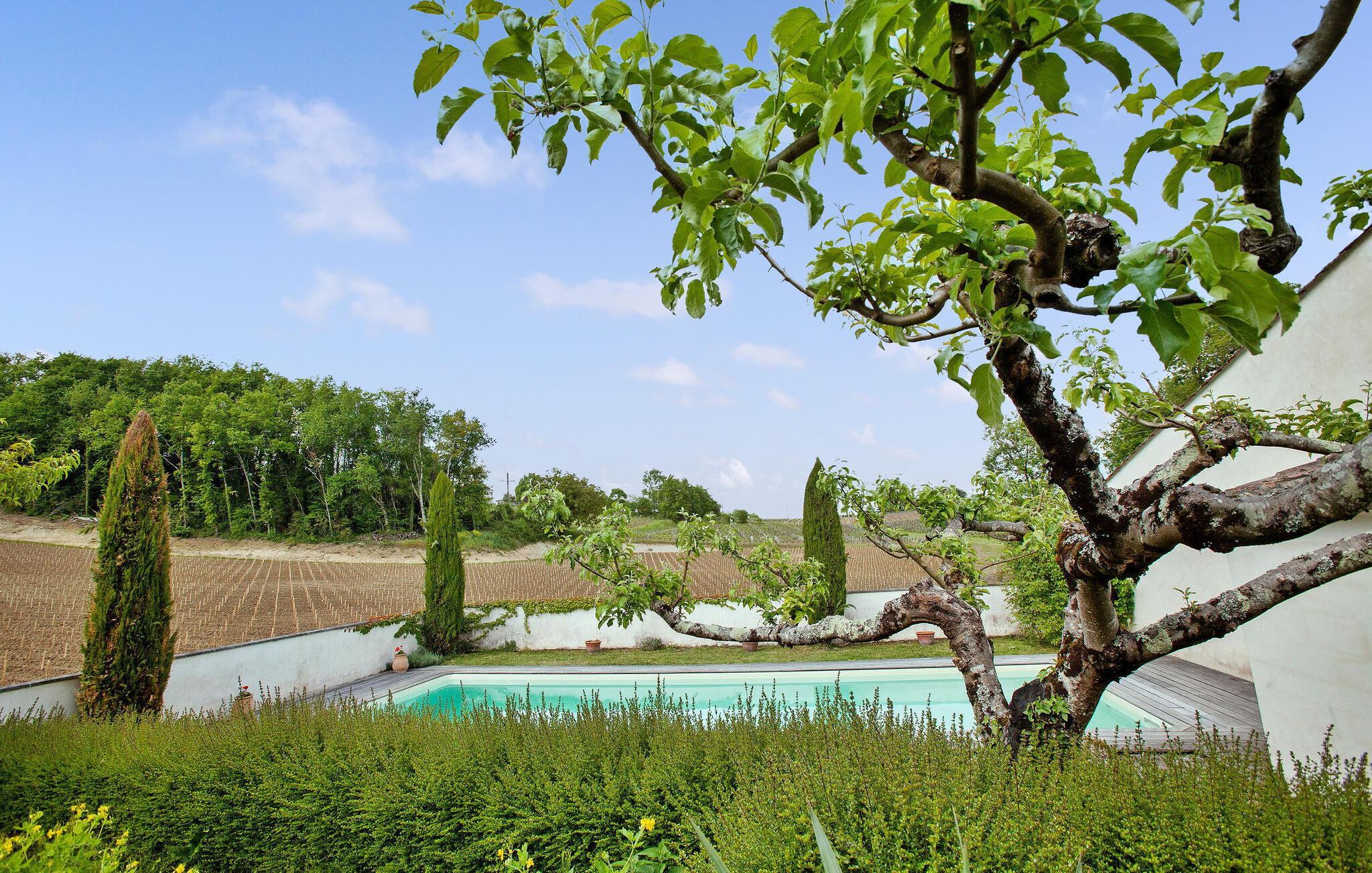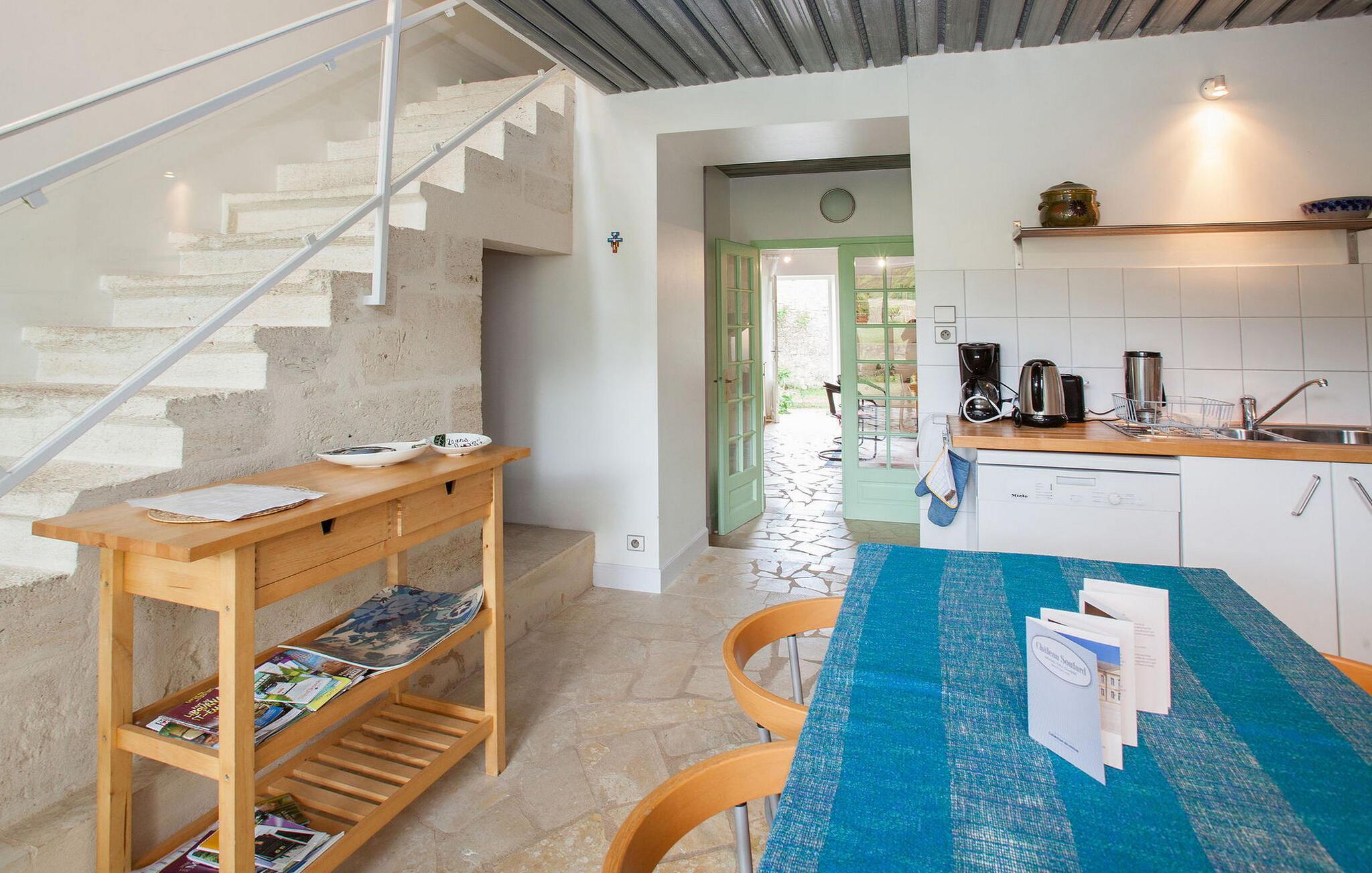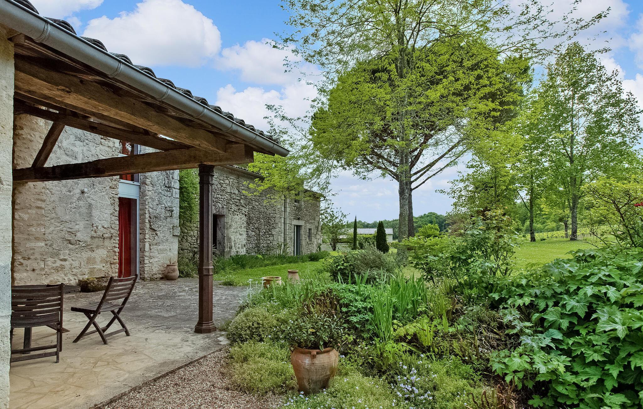 Dieses Ferienhaus befindet sich in traditionellen Nebengebäuden von Gironde-Häusern und bietet einen malerischen Blick auf die Weinberge. Das Erdgeschoss umfasst eine voll ausgestattete Küche/Essbereich, einen komfortablen Wohnbereich mit Zugang zum Garten sowie ein WC. Im Obergeschoss finden Sie die Schlafzimmer. Der Außenbereich umfasst einen privaten Garten mit Markise, Gartenmöbeln und Grill. Das Mietobjekt befindet sich im kleinen und charmanten Dorf St. Cibard, 15 km östlich von St. Emilion, eingebettet rund um seine romanische Kirche in einem Tal inmitten einer Weinberglandschaft. Als Weltkulturerbe klassifizierte Stätten: Saint Émilion 15 km entfernt, Bordeaux 60 km entfernt, Zitadelle von Blaye 65 km entfernt. Viele architektonische Stätten, Kirchen, Klöster, die als historische Denkmäler eingestuft sind, in einem Umkreis von weniger als 50 km.