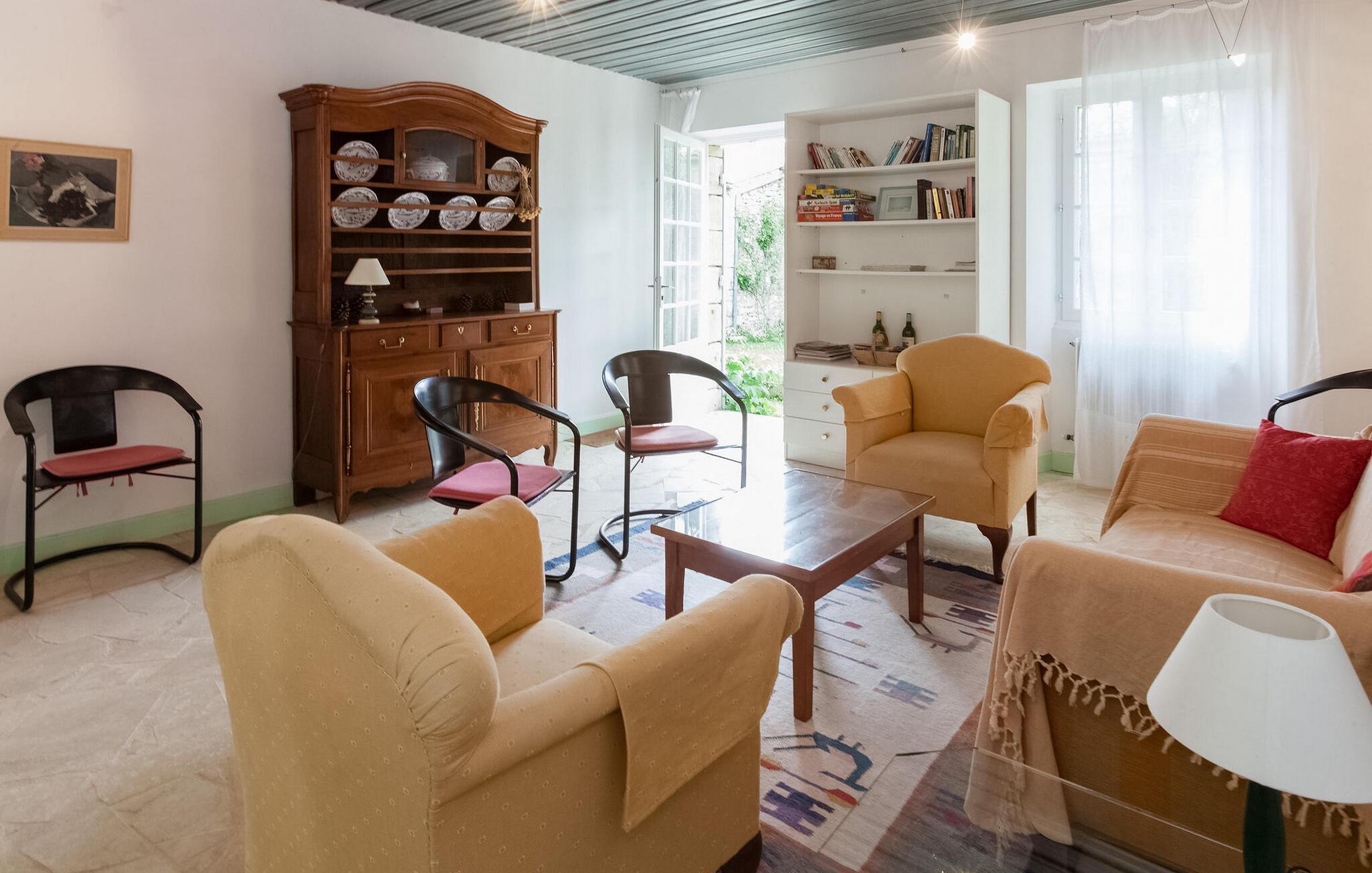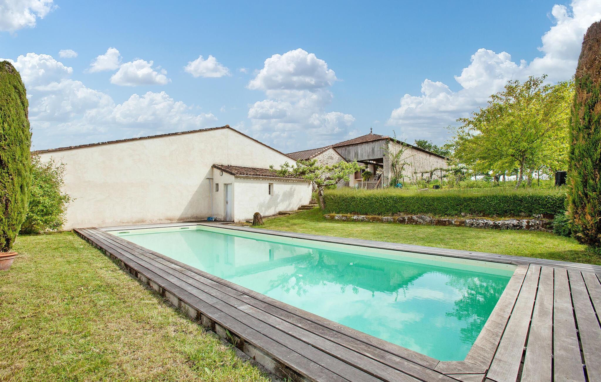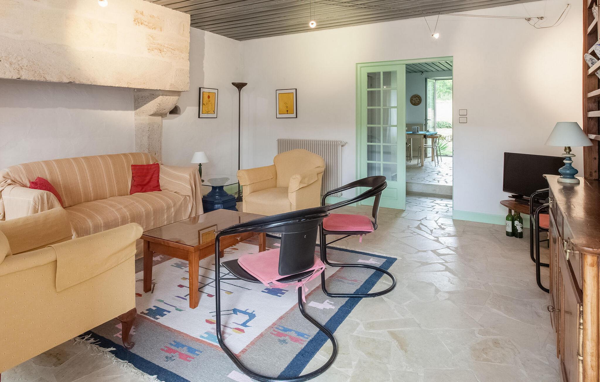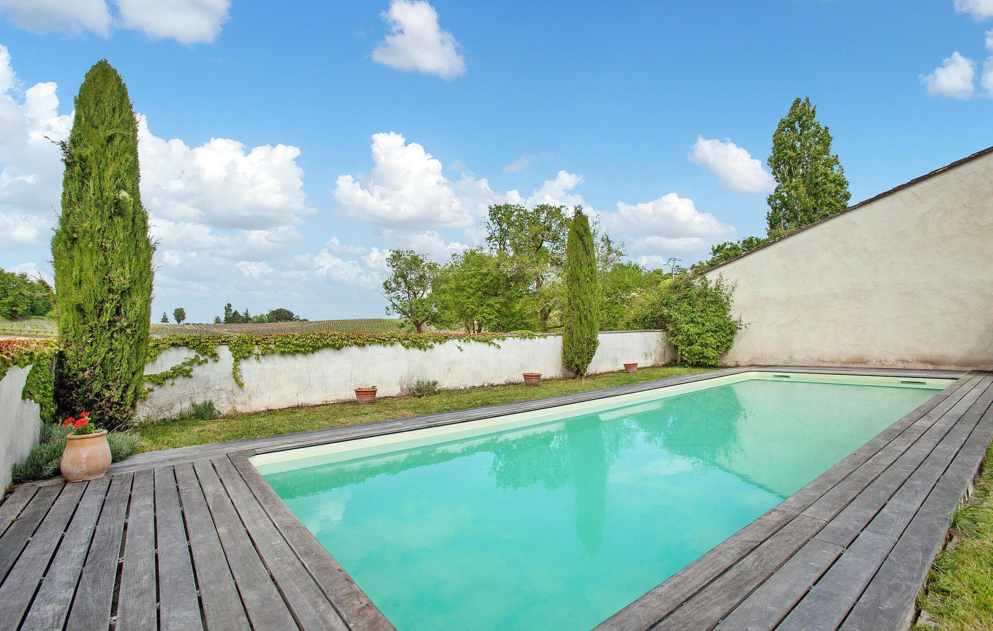 Dieses Ferienhaus befindet sich in traditionellen Nebengebäuden von Gironde-Häusern und bietet einen malerischen Blick auf die Weinberge. Das Erdgeschoss umfasst eine voll ausgestattete Küche/Essbereich, einen komfortablen Wohnbereich mit Zugang zum Garten sowie ein WC. Im Obergeschoss finden Sie die Schlafzimmer. Der Außenbereich umfasst einen privaten Garten mit Markise, Gartenmöbeln und Grill. Das Mietobjekt befindet sich im kleinen und charmanten Dorf St. Cibard, 15 km östlich von St. Emilion, eingebettet rund um seine romanische Kirche in einem Tal inmitten einer Weinberglandschaft. Als Weltkulturerbe klassifizierte Stätten: Saint Émilion 15 km entfernt, Bordeaux 60 km entfernt, Zitadelle von Blaye 65 km entfernt. Viele architektonische Stätten, Kirchen, Klöster, die als historische Denkmäler eingestuft sind, in einem Umkreis von weniger als 50 km.
