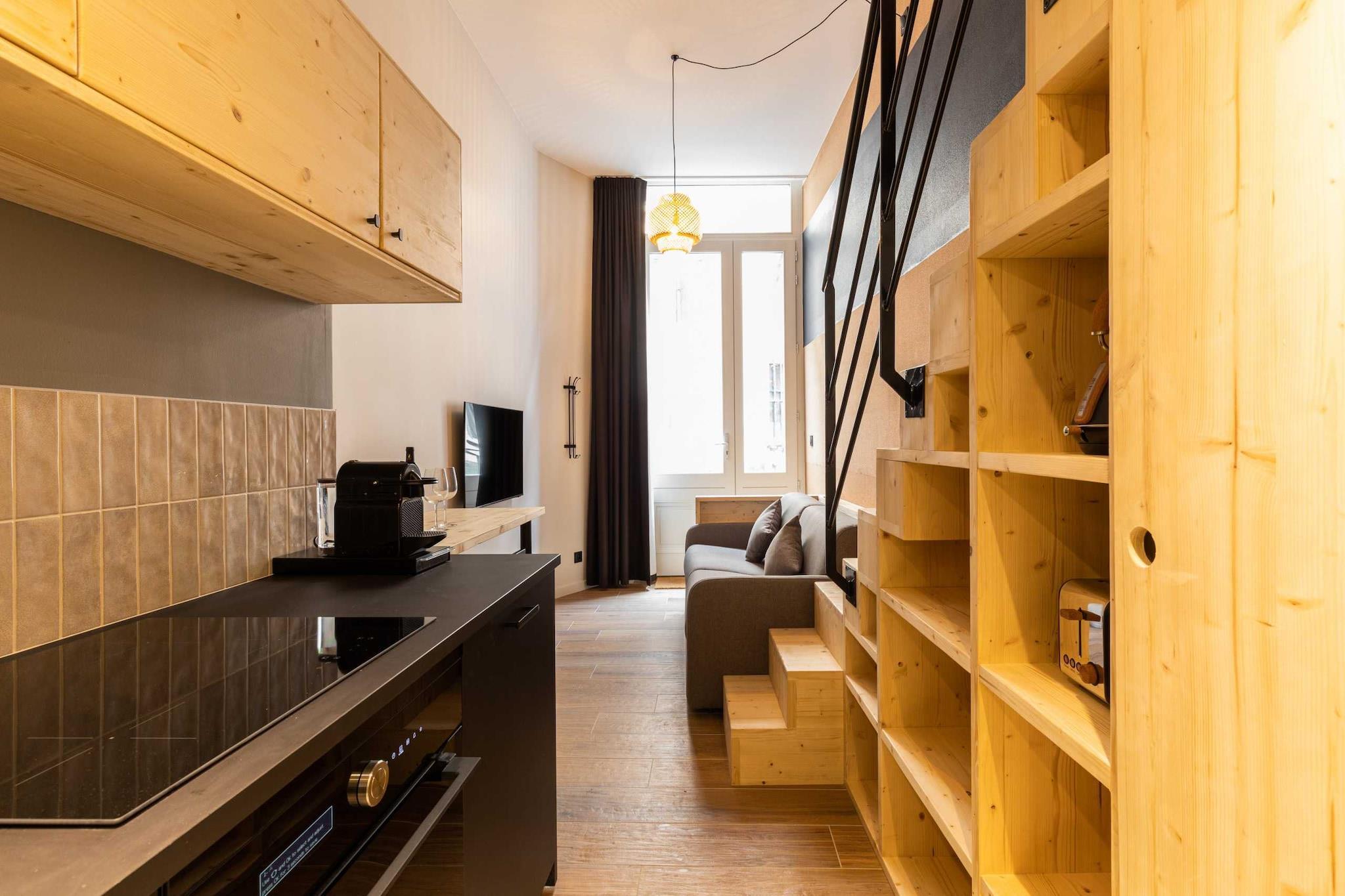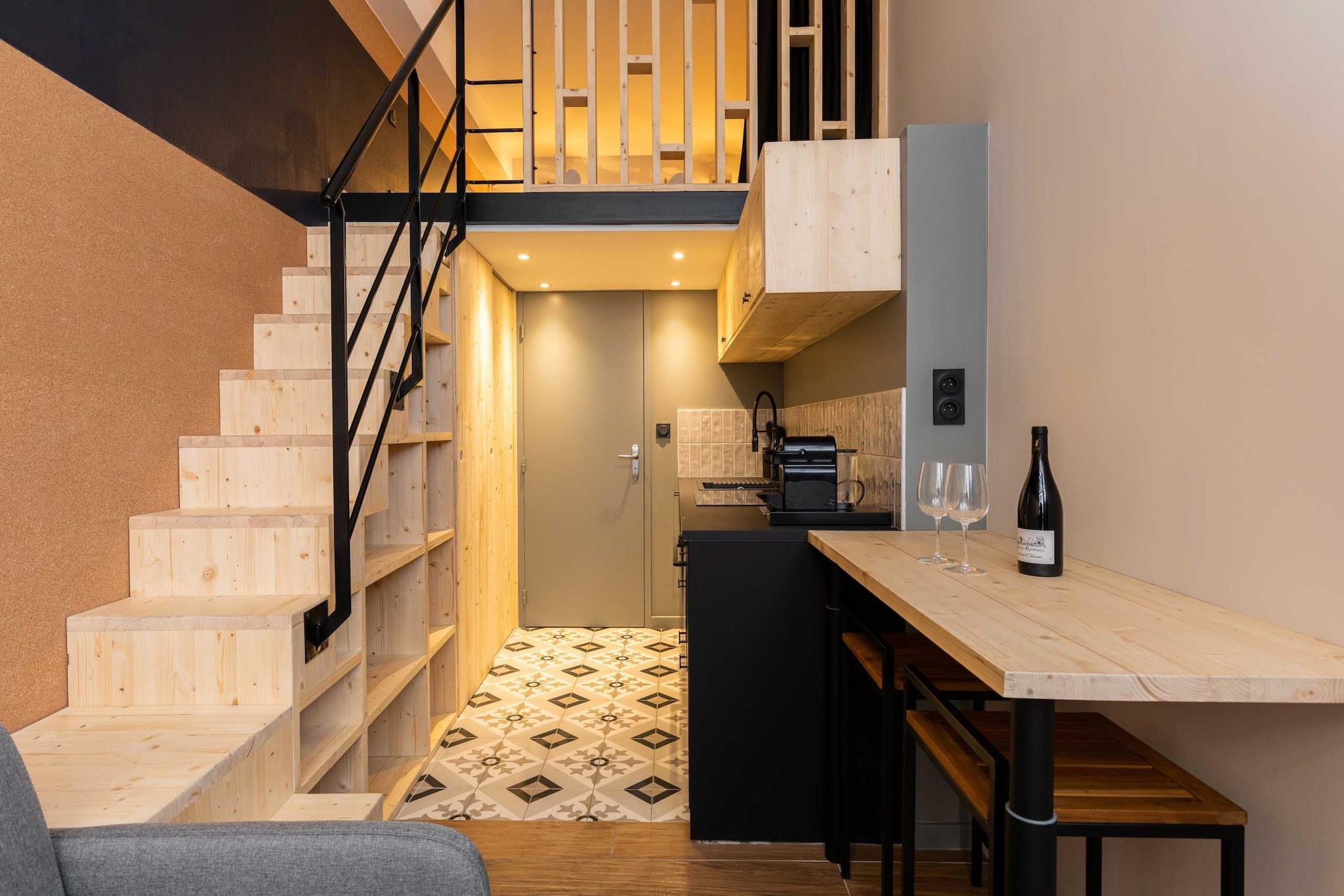 You will stay in our beautiful apartment that has been designed to provide you with all the necessary comfort during your stay. null You will stay in our beautiful apartment that has been designed to provide you with all the necessary comfort during your stay. The apartment is located a few minutes from the Terreaux metro station in a neighbourhood with a unique charm. You can reach the heart of the Presqu\'île in just a few minutes on foot. The apartment is located on the ground floor. Every detail counts, soundproofing, luxury bedding, linen and towels, hair dryer, etc. Enjoy! This fully equipped duplex can accommodate up to 4 people: it has a mezzanine bedroom with a double bed (140x190) and a very comfortable sofa bed (140x190). You will have exclusive use of the apartment and will be free to use all the equipment. Unlimited internet, TV, equipped kitchen, coffee machine and much more.