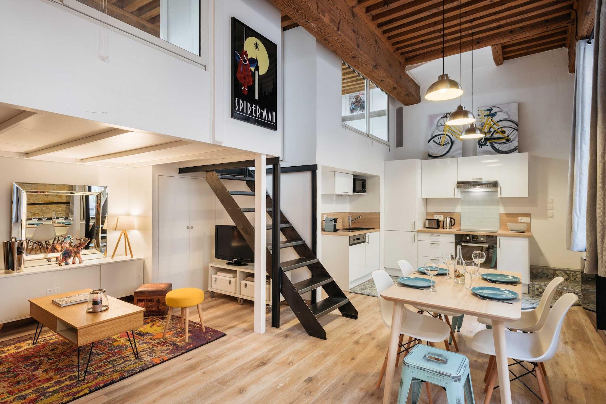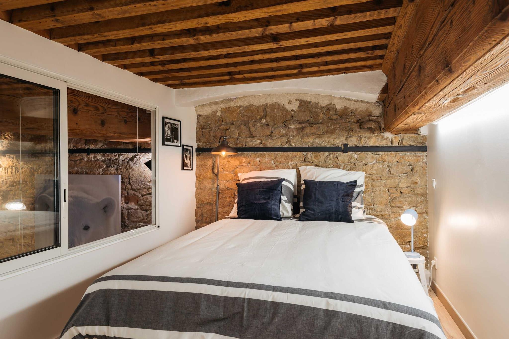 Apartment with lots of character with exposed stones, large cosy living room and newly renovated. null The apartment is located on the first floor with a lift in a beautiful 18th century building. This fully renovated and equipped apartment can accommodate up to 4 people (two bedrooms with double beds). You will have exclusive use of the apartment and be free to use all the facilities. Unlimited internet, TV, equipped kitchen, coffee machine, washing machine, a mobile air conditioner and two fans.