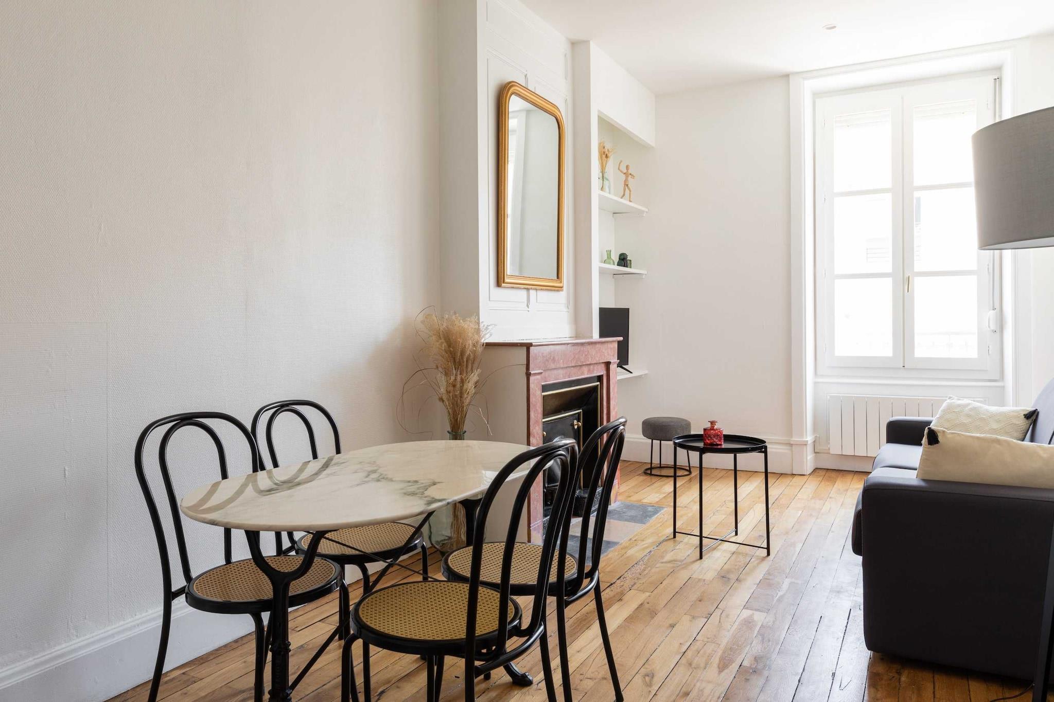 This fully renovated and equipped apartment can accommodate up to 4 people. It is located in the quiet and residential area of Part Dieu (10 minutes walk). If you arrive by car, free parking spaces are available just next to the building, subject to availability. This fully renovated and equipped apartment can accommodate up to 4 people (one bedroom with a double bed and a living room with a very comfortable double sofa bed with a real mattress). You will have exclusive use of the apartment and will be free to use all the equipment: TV, equipped kitchen, coffee machine, washing machine, fan... The apartment is located on the 1st floor without a lift. Bed linen and towels are provided in full.