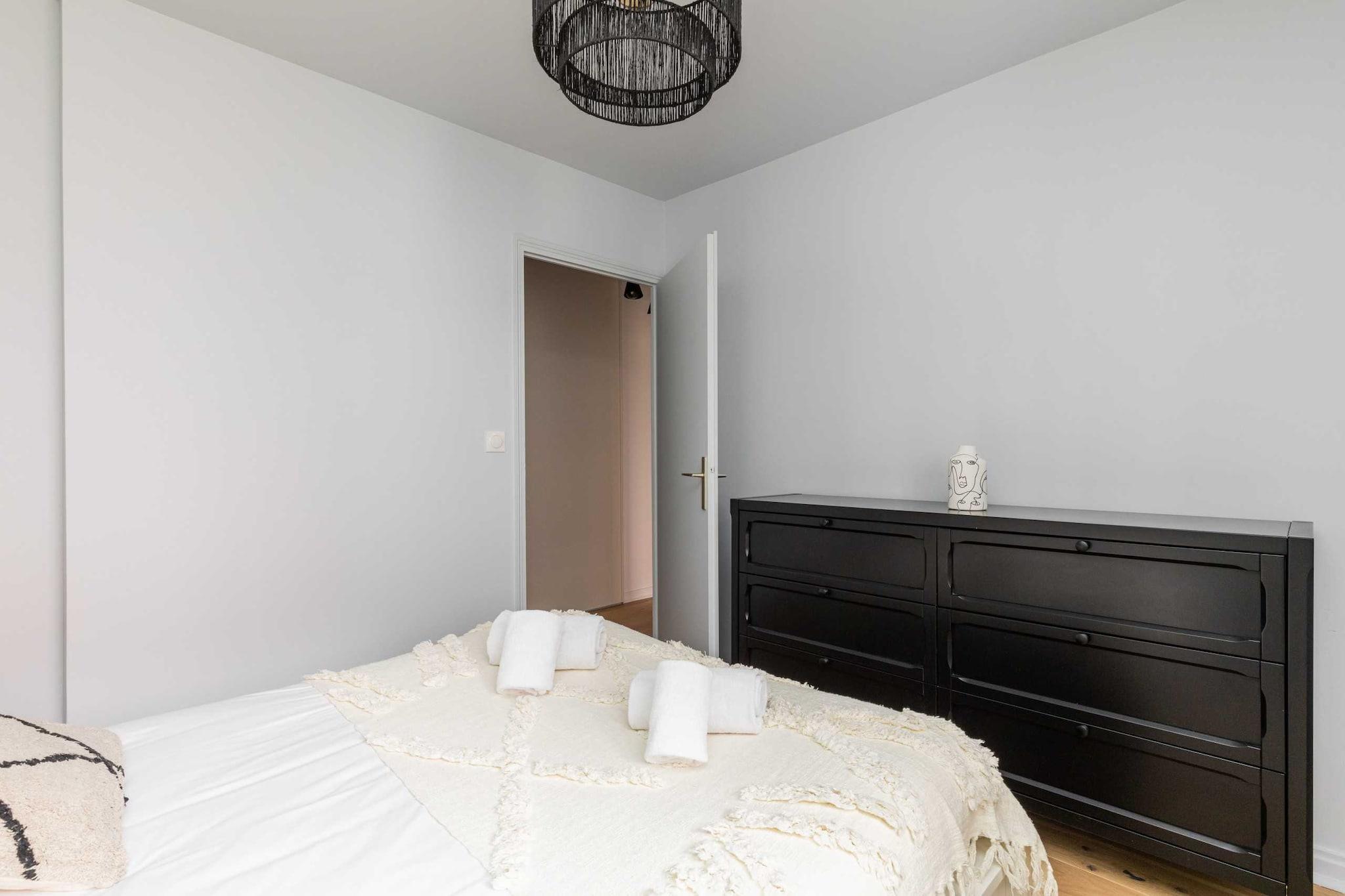 On the 1st floor: (Living room(double sofa bed, TV, dining table, Wine glasses), open kitchen(stove, electric kettle, toaster, hood, oven, microwave, dishwasher, fridge, dishes and cutlery, Cooking basics), bedroom(Bed Linen, double bed), bedroom(Sheets incl., Queen Bed), bathroom(bath tub, shower, washbasin, toilet, washing machine, Towels incl., shampoo, body soap, hot water)) Internet access, balcony or terrace, heating, iron, Cleaning Disinfection, Cleaning before checkout, Enhanced cleaning practices, High touch surfaces disinfected, Long term stays allowed, Washer in common space
