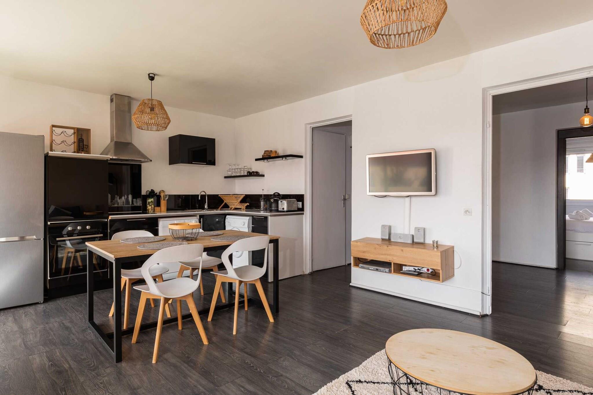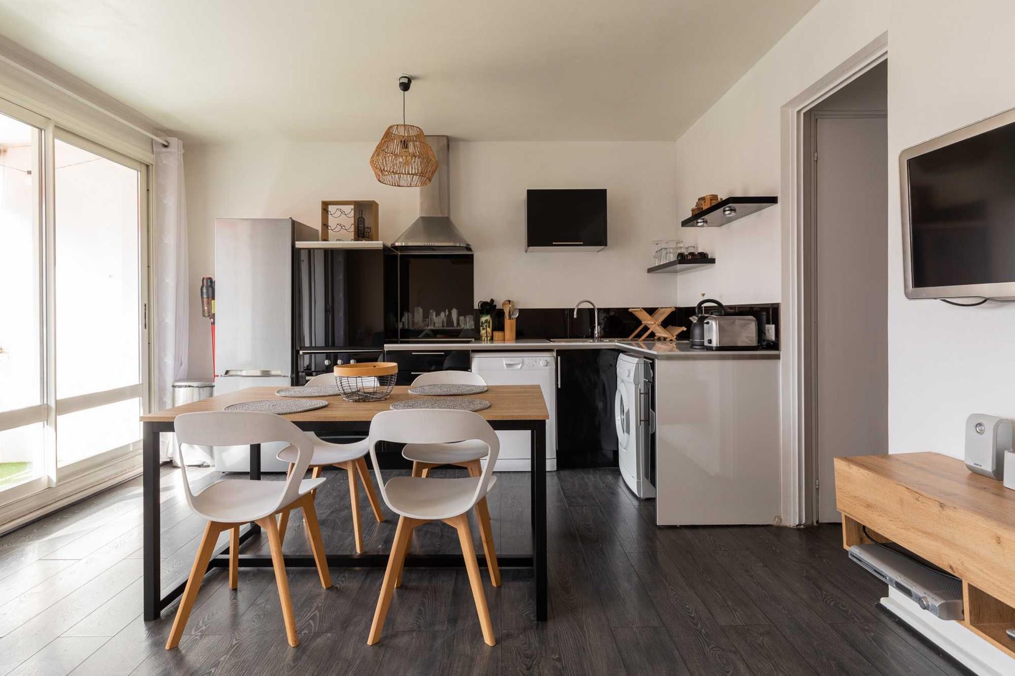 Apartment in Lyon with 2 bedroom(s) and capacity for 4 people. 62 m² furnished accommodation with taste and fully equipped. null Apartment in Lyon with 2 bedroom(s) and capacity for 4 people. 62 m² furnished accommodation with taste and fully equipped. It is located in an ideal area for families and in the city centre. It has a lift, garden furniture, washing machine, iron, internet access (wifi), balcony, electric heating, outdoor parking in the same building, 1 TV. The open-plan kitchen, with ceramic hob, is equipped with fridge, microwave, oven, freezer, dishwasher, crockery/cutlery, cooking utensils, toaster, kettle and juicer. Check-in at the apartment is self-service from 5pm. An early check-in option at 2pm is possible for an additional fee of +£20.
