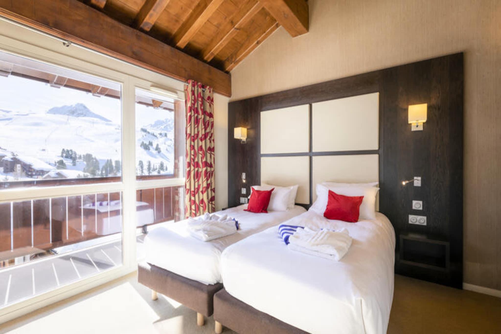 High above the serene Tarentaise Valley, the MMV Les Deux Domaines Village Club in Belle Plagne offers a perfect blend of Savoyard charm and modern comfort. Surrounded by the pristine beauty of the Montchavin forest and the majestic Bellecôte glacier, this alpine retreat invites you to immerse yourself in the magic of the mountains. Whether you're here for thrilling ski adventures or tranquil relaxation, the breathtaking views and cozy ambiance set the stage for an unforgettable holiday. The Village Club boasts a traditional chalet-style design, offering a warm and welcoming atmosphere. Guests can unwind in the wellness area, complete with saunas, steam rooms, and a heated indoor pool. Families are especially well-catered for, with dedicated kids' clubs for children aged 18 months to 17 years, ensuring fun and entertainment for all ages. Rooms are thoughtfully designed with two single beds that can be joined, a private balcony with stunning views, and modern amenities such as WiFi and included linens and towels. Located at the entrance to Belle Plagne, the property provides direct access to the La Plagne ski area, renowned for its 425 km of slopes and diverse landscapes. From the Montchavin forest trails to the Bellecôte glacier descents, every skier and snowboarder will find their perfect run. For non-skiers, the area offers snowshoeing, spa treatments, and picturesque alpine walks. Dining is a delight, with full board options and drinks included, ensuring a hassle-free stay. Whether you're seeking adventure on the slopes or serene moments by the fire, MMV Les Deux Domaines is your gateway to the best of the French Alps. With its family-friendly amenities, stunning location, and authentic alpine charm, this is the ultimate destination for your next mountain escape.