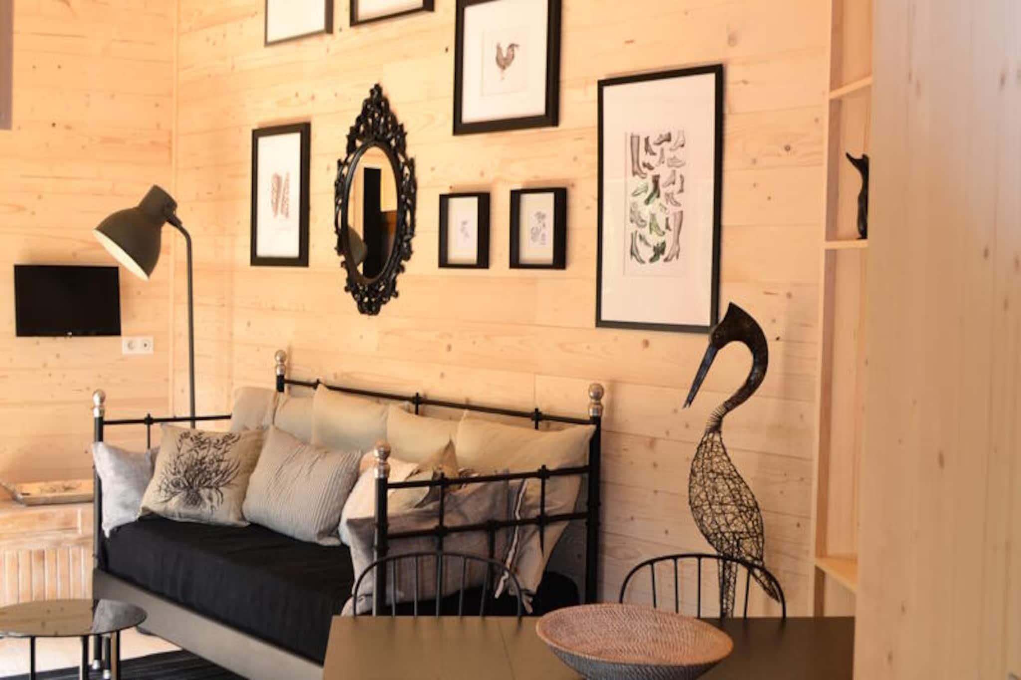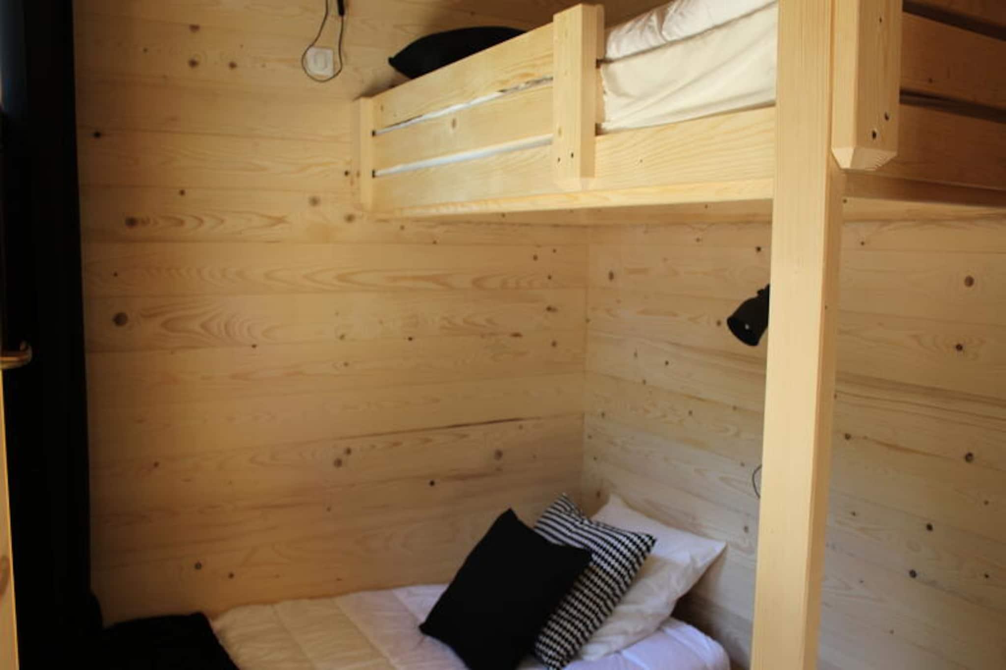 Located in a 12-hectare garden, the Parc de la Belle brings together unusual accommodation to recharge your batteries in Vienne. With family, friends or a romantic getaway, Parc de la Belle is the ideal place to disconnect and take a break surrounded by nature. On site, the mini farm with goats and sheep delights children and is one of the fun activities offered by the Park. If you prefer adventure, you will like the puzzle course which takes you on a mysterious quest through several universes. Children can also spend time in the playground: slides, acrobatic courses, etc. Whether you choose to sleep in the trees or in a comfortable lodge, your stay at Parc de la Belle will give you an experience of calm in the heart of nature! Please note: the cabins have shared bathrooms. They have neither water nor electricity. Administration fee of EURO25 to be paid on site. Comfortable Elegance Lodge 4/6 people: Living room with sofa bed Kitchenette Bedroom with 1 double bed Bedroom with 2 single beds Shower room, WC Terrace Baby kit - bed + high chair: available for loan upon reservation Bed linen - included End of stay cleaning - extra - see price on site Breakfast - to be booked before your stay: EURO11.90/adult and EURO7.90/child Tourist tax (additional charge) - to be paid on site, according to current rate