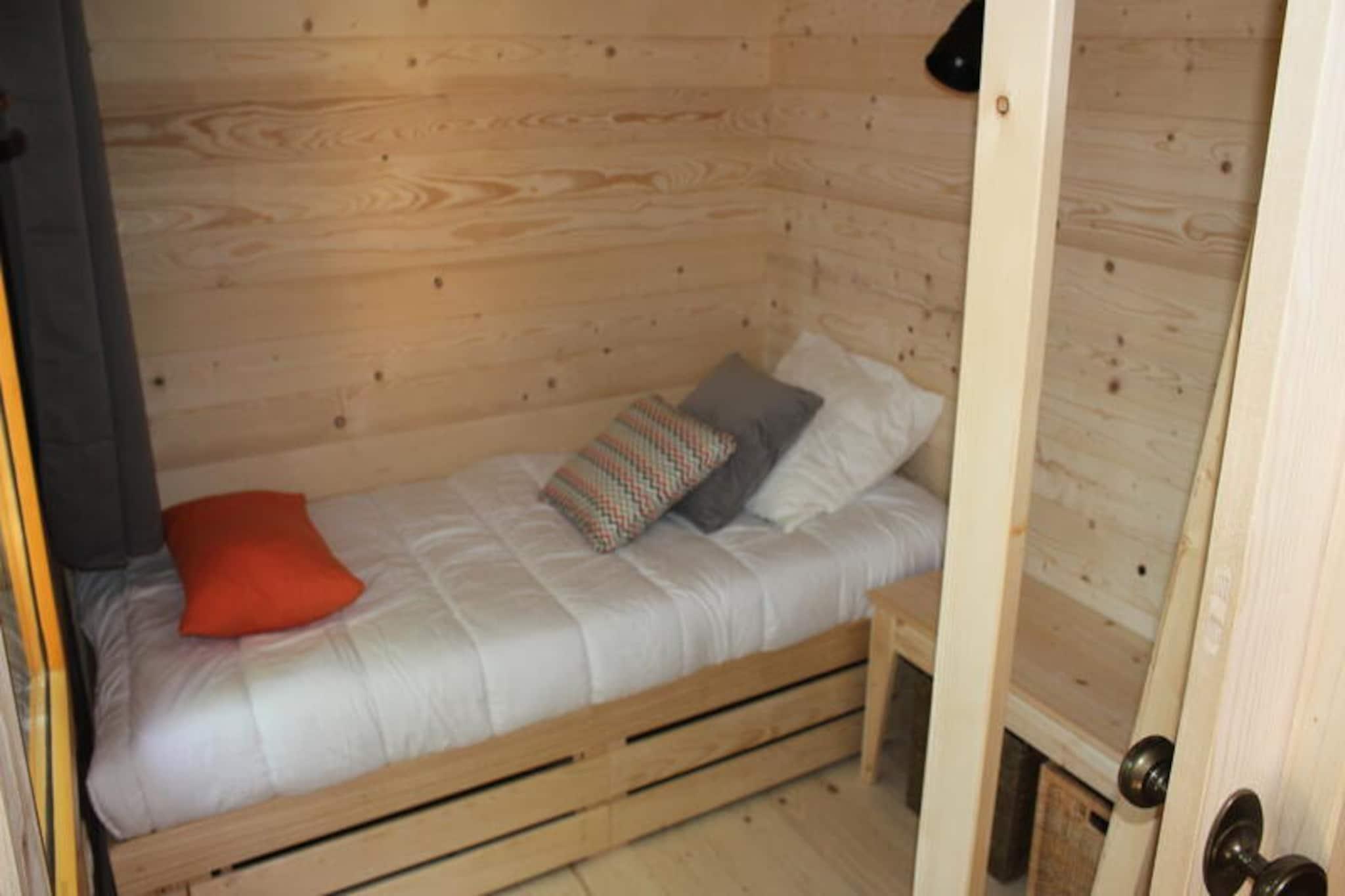 Located in a 12-hectare garden, the Parc de la Belle brings together unusual accommodation to recharge your batteries in Vienne. With family, friends or a romantic getaway, Parc de la Belle is the ideal place to disconnect and take a break surrounded by nature. On site, the mini farm with goats and sheep delights children and is one of the fun activities offered by the Park. If you prefer adventure, you will like the puzzle course which takes you on a mysterious quest through several universes. Children can also spend time in the playground: slides, acrobatic courses, etc. Whether you choose to sleep in the trees or in a comfortable lodge, your stay at Parc de la Belle will give you an experience of calm in the heart of nature! Please note: the cabins have shared bathrooms. They have neither water nor electricity. Administration fee of EURO25 to be paid on site. Comfortable Evasion Lodge 4/6 people: Living room with sofa bed Kitchenette Bedroom with double bed Bedroom with 2 single beds Shower room, WC Terrace Baby kit - bed + high chair: available for loan upon reservation Bed linen - included End of stay cleaning - extra - see price on site Breakfast - to be booked before your stay: EURO11.90/adult and EURO7.90/child Tourist tax (additional charge) - to be paid on site, according to current rate