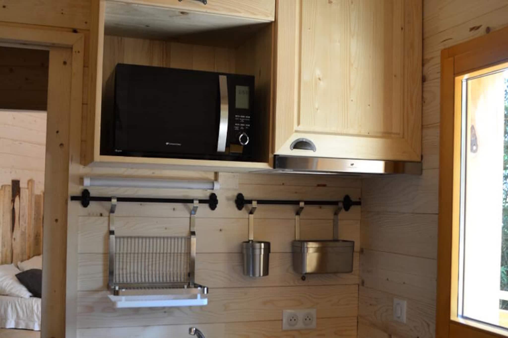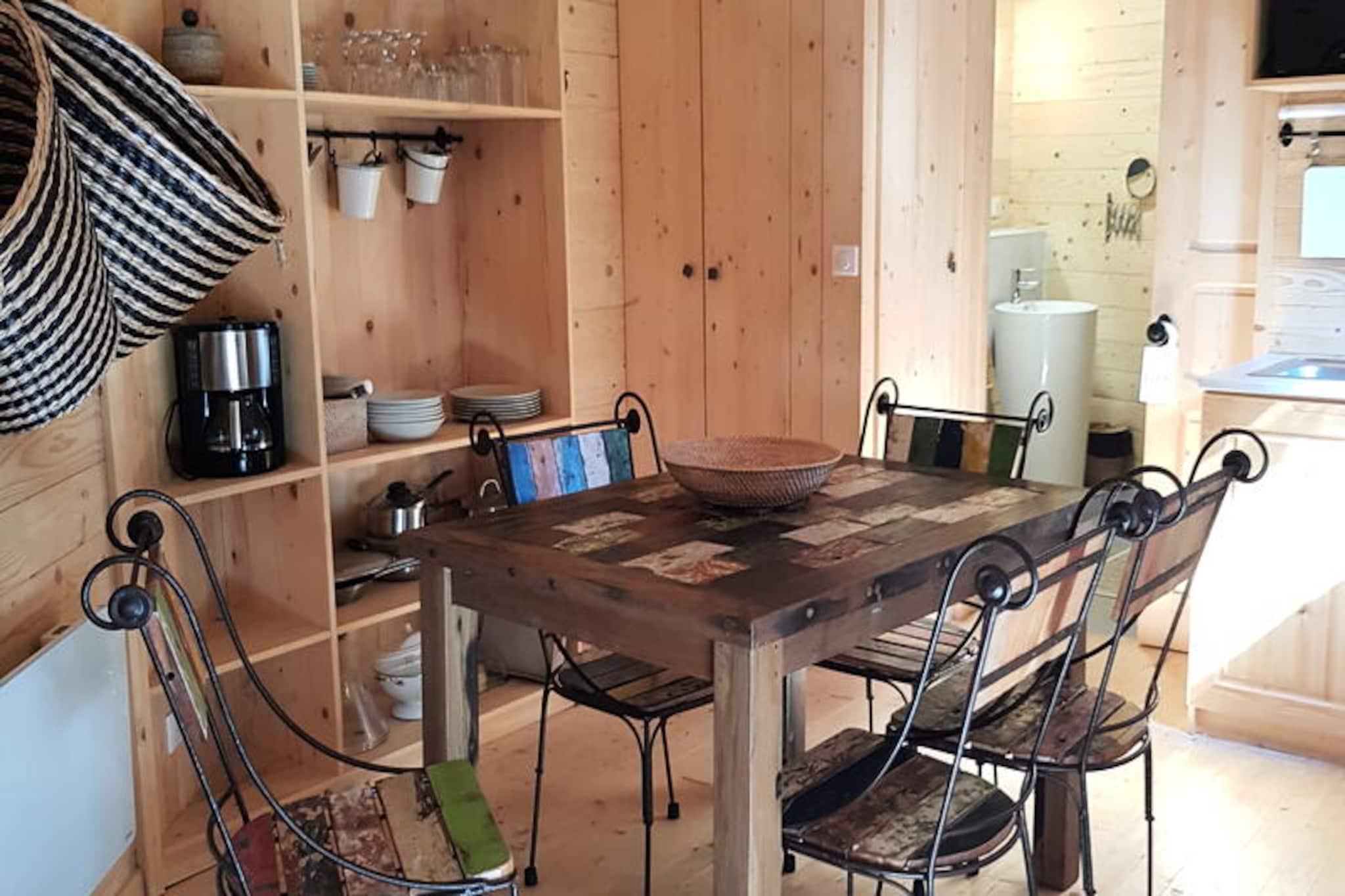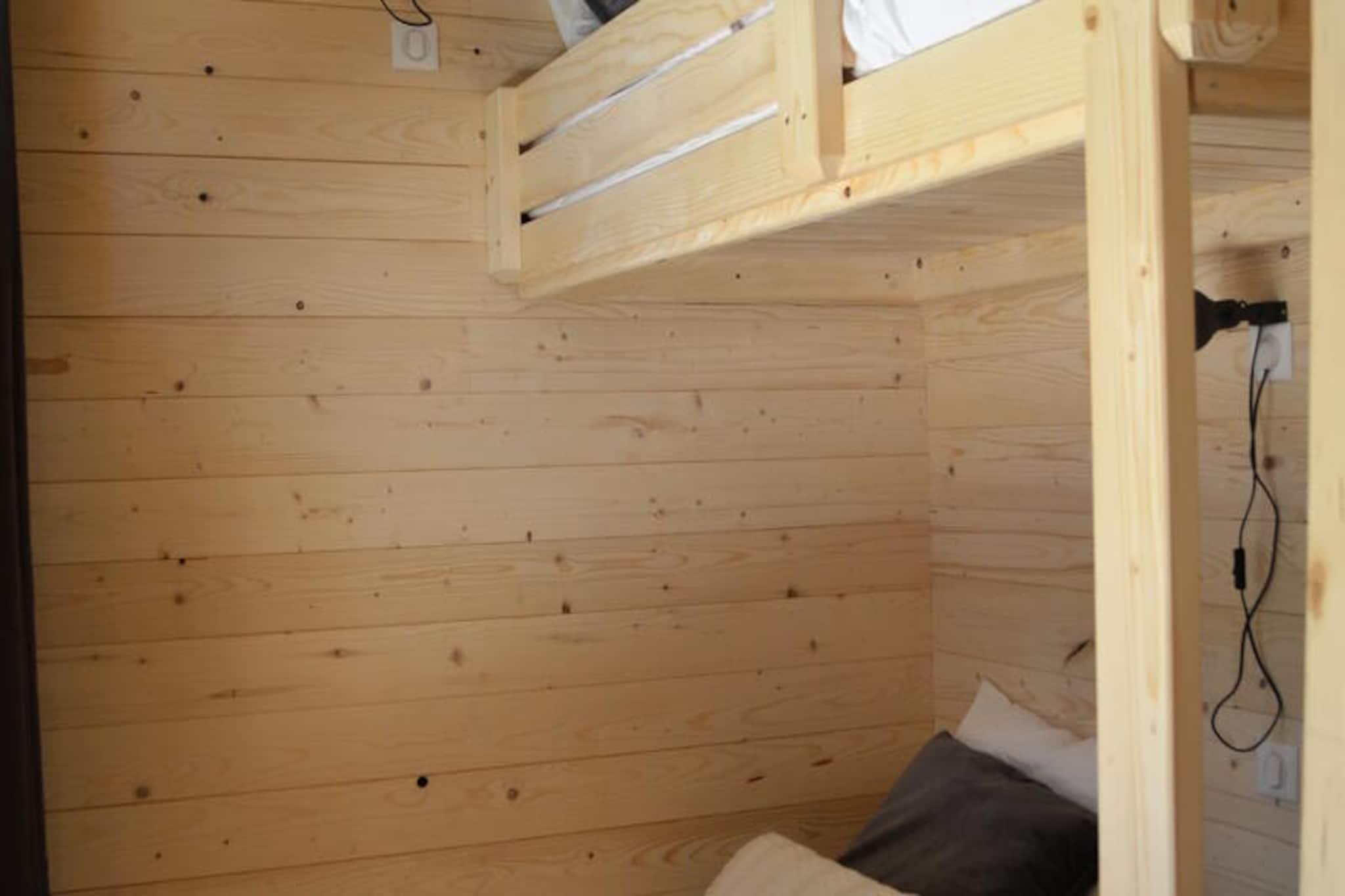 Located in a 12-hectare garden, the Parc de la Belle brings together unusual accommodation to recharge your batteries in Vienne. With family, friends or a romantic getaway, Parc de la Belle is the ideal place to disconnect and take a break surrounded by nature. On site, the mini farm with goats and sheep delights children and is one of the fun activities offered by the Park. If you prefer adventure, you will like the puzzle course which takes you on a mysterious quest through several universes. Children can also spend time in the playground: slides, acrobatic courses, etc. Whether you choose to sleep in the trees or in a comfortable lodge, your stay at Parc de la Belle will give you an experience of calm in the heart of nature! Please note: the cabins have shared bathrooms. They have neither water nor electricity. Administration fee of EURO25 to be paid on site. Comfortable Bohemian Lodge 4/6 people: Living room with sofa bed Kitchenette Bedroom with double bed Bedroom with 2 single beds Shower room, WC Terrace Baby kit - bed + high chair: available for loan upon reservation Bed linen - included End of stay cleaning - extra - see price on site Breakfast - to be booked before your stay: EURO11.90/adult and EURO7.90/child Tourist tax (additional charge) - to be paid on site, according to current rate
