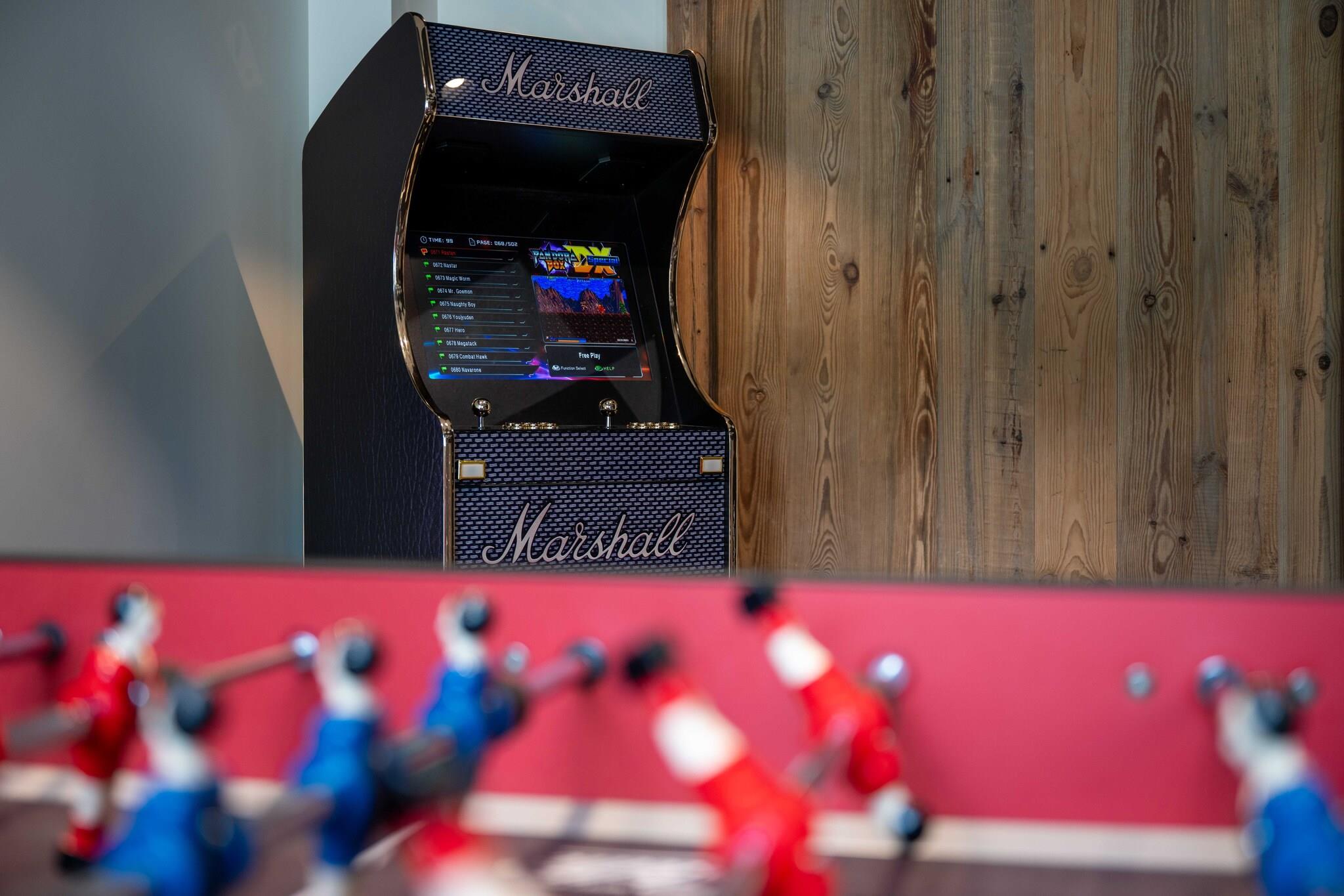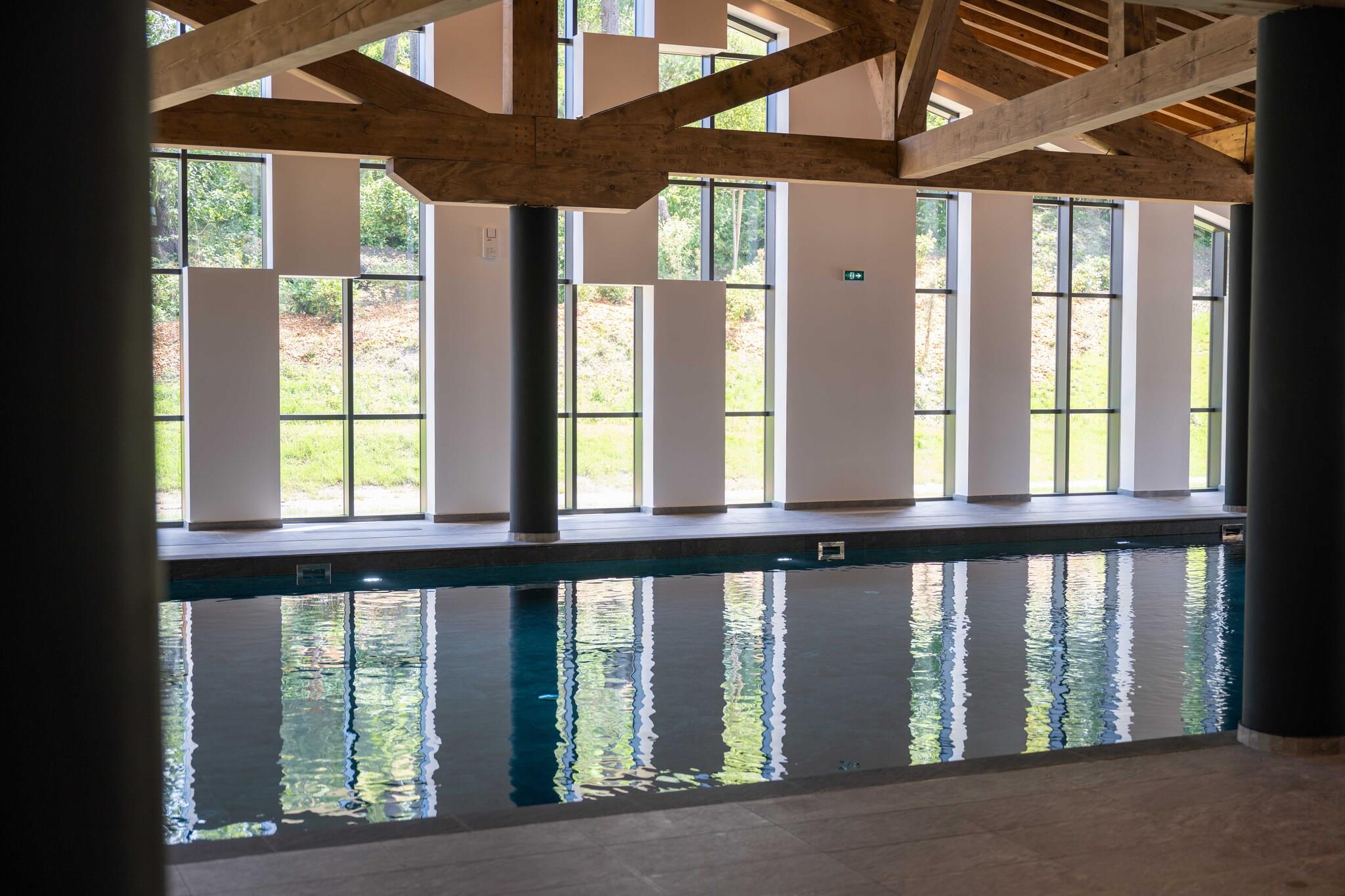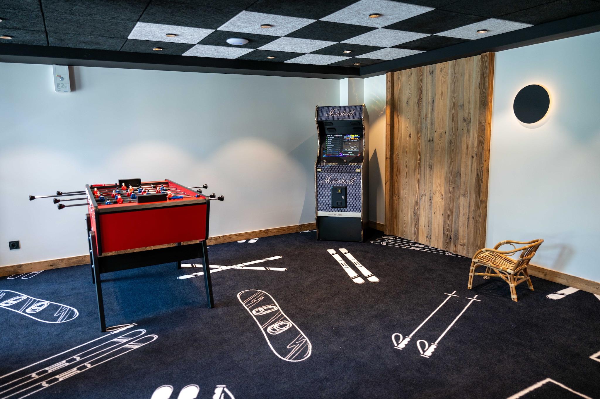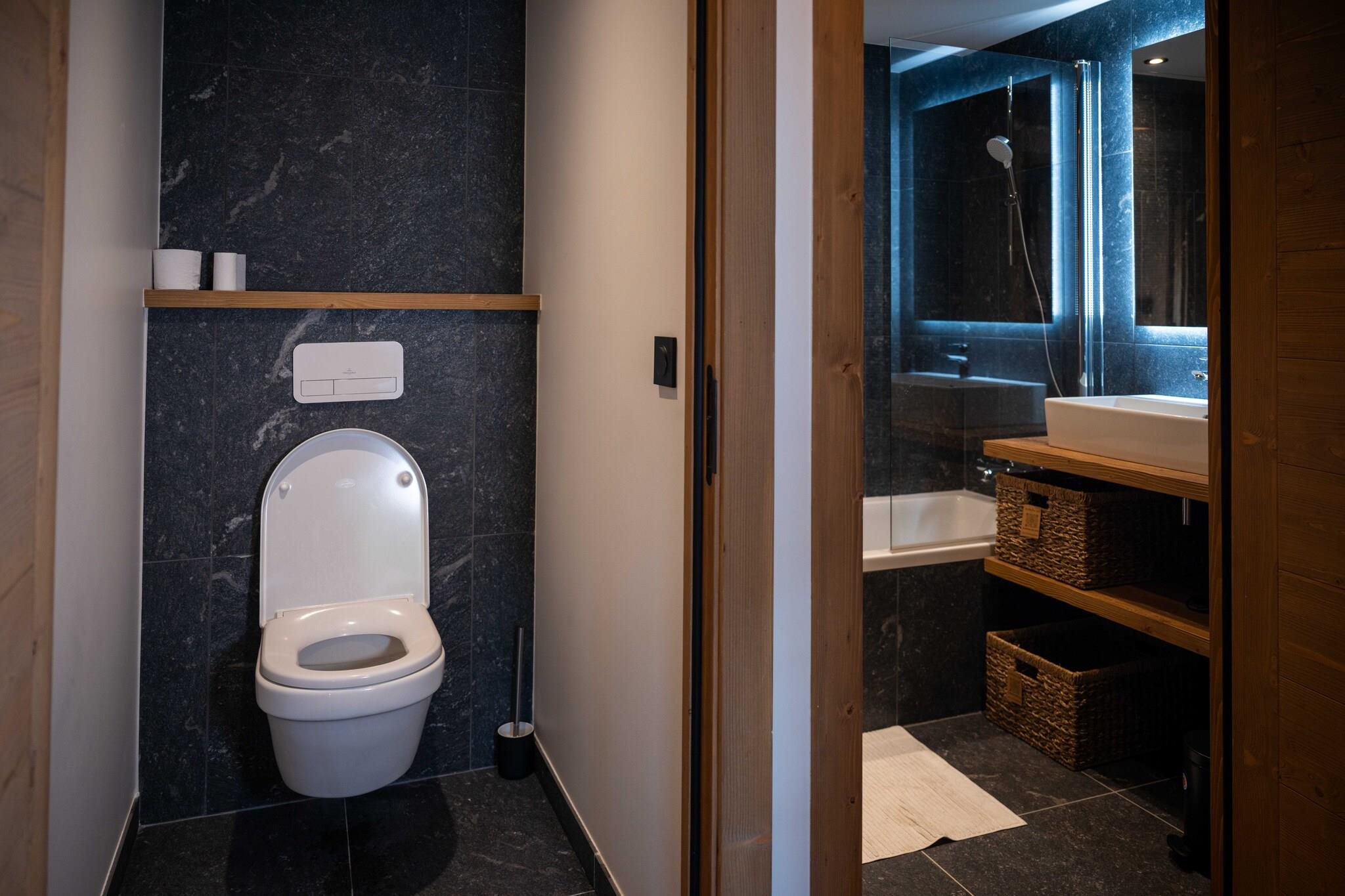 On the 1st floor: (Living room(TV, dining table, seating area), open kitchen(dining table, stove, electric kettle, toaster, coffee machine, oven, microwave, dishwasher, fridge, freezer, electric hot plates, dishes and cutlery, Cooking basics, Wine glasses), bedroom(single bed, single bed, bunk bed, TV), Bedroom with bathroom(double king size bed, shower, washbasin, toilet), bathroom(bath tub, washbasin), toilet(toilet)) Bed Linen, Desk, Elevator, Hot Water, Internet Access DSL, Safe, Wardrobe, First Aid, Indoor pool, Play area, fireplace, tumble dryer, hot tub, washing machine, balcony or terrace, heating, swimming pool, private outdoor pool, iron, hairdryer, toys, Charging post for electric cars, Towels/Sheets (Incl.), shampoo, Essentials, Dedicated workspace, Carbon monoxide detector, Cleaning Disinfection, Downtown, Enhanced cleaning practices, High touch surfaces disinfected, Long term stays allowed, Mountain, Mountain view, Room-darkening shades, Town, Washer in common space