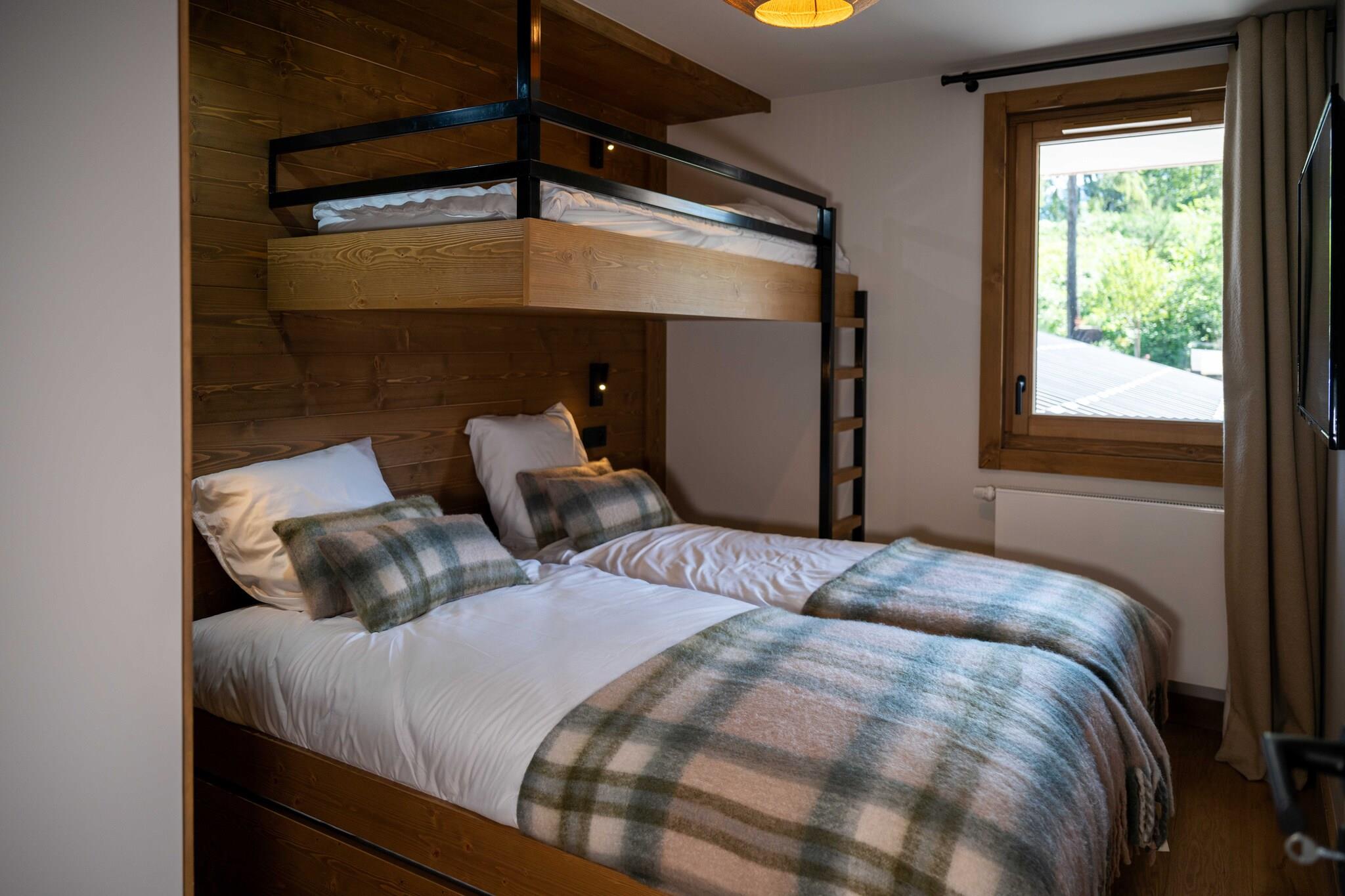 Checkmyguest offers this exclusive 58m2 flat for 5 people in the popular Vériaz area, 10 minutes' walk from the centre of Megève and the ski slopes. Master suite with en-suite shower room, children's bedroom, fully equipped kitchen and 13 m² terrace. Direct access to heated pool, spa, play areas, ski shuttle and concierge services. Parking included.