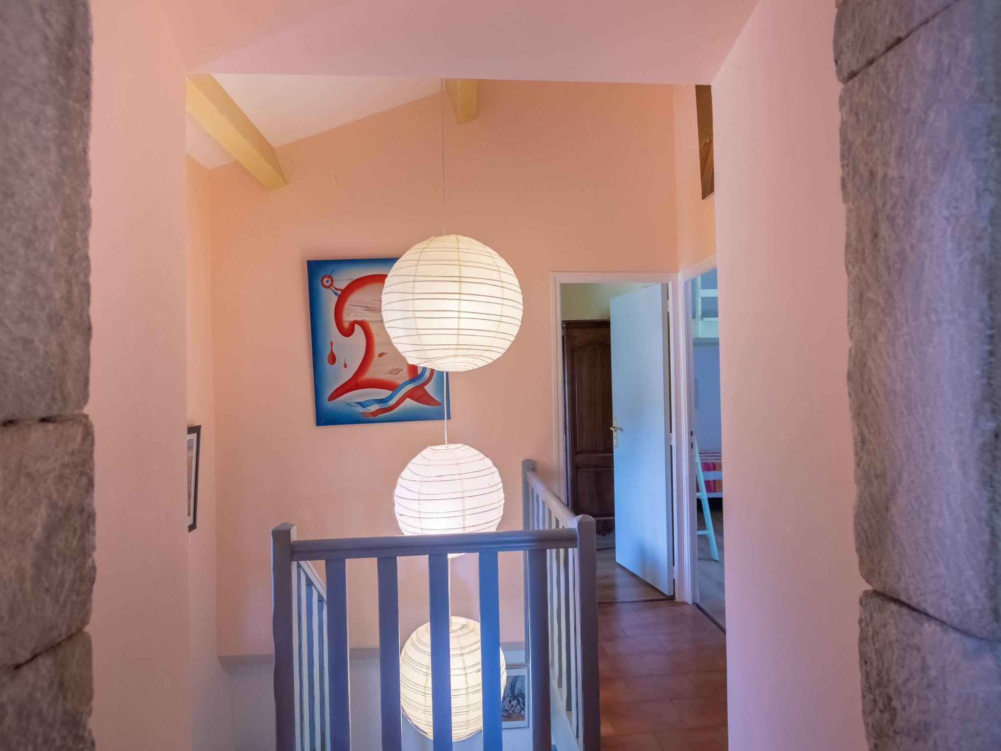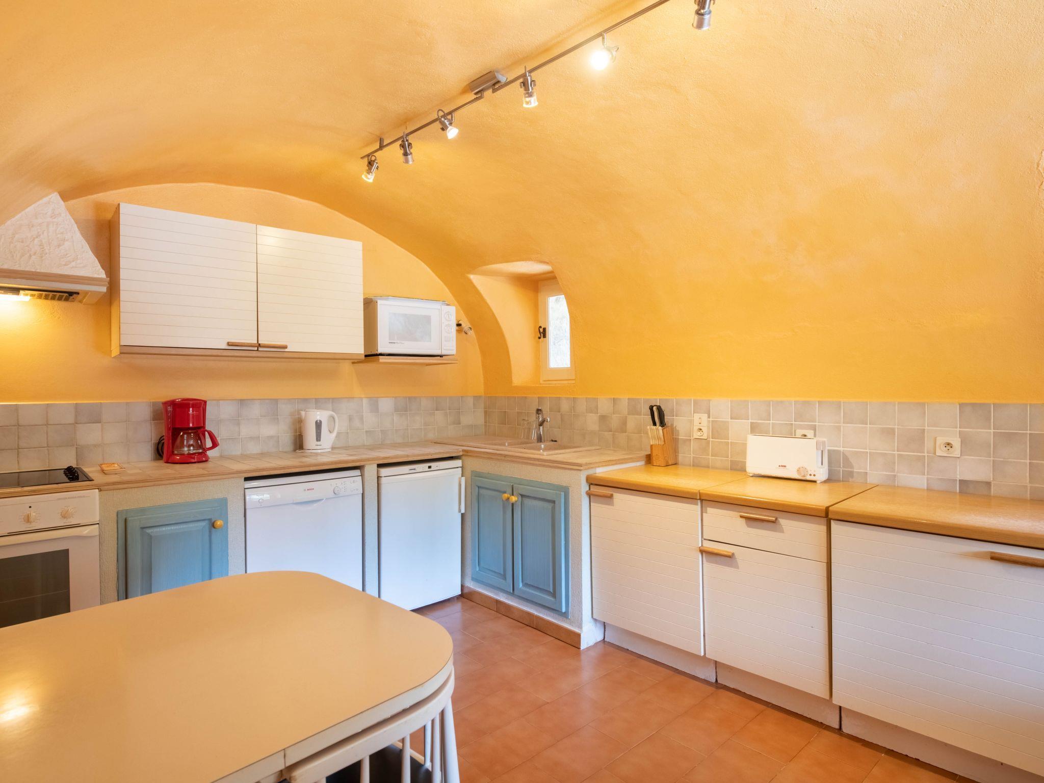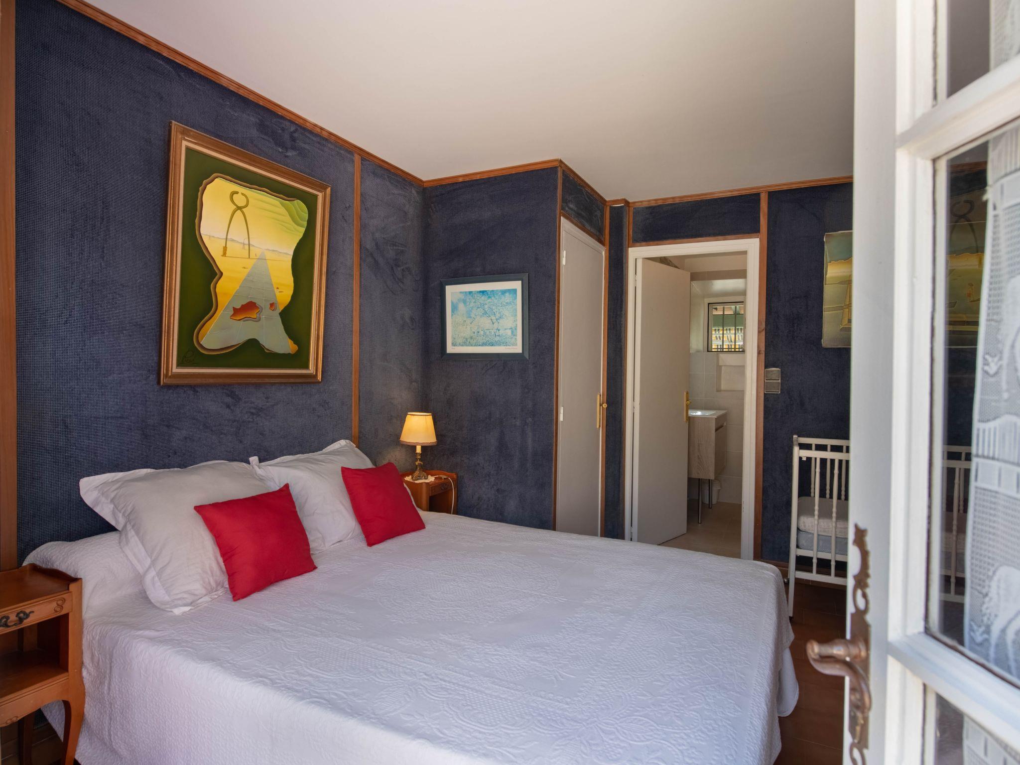 "Mas Magot", 6-room house 170 m2 on 2 levels. Beautiful and cosy furnishings: 1 room with 1 french bed (1 x 160 cm, length 200 cm), hand-basin and shower. Exit to the garden. Dining room with Scandinavian wood stove, dining table and TV (flat screen). Exit to the garden. Kitchen (oven, dishwasher, 4 ceramic glass hob hotplates, toaster, kettle, microwave, freezer, electric coffee machine, Capsules for coffee machine (Senséo) extra). Sep. WC. Upper floor: living room with Scandinavian wood stove and satellite TV (flat screen), air conditioning. Exit to the garden, to the balcony. 1 room with 1 french bed (1 x 140 cm, length 190 cm). 1 room with 1 french bed (1 x 140 cm, length 190 cm), shower/WC. Exit to the balcony. 1 room with 1 bed (80 cm, length 190 cm). Shower/WC. Electric heating. Balcony 6 m2, large terrace 15 m2 partly roofed. Terrace furniture, barbecue, deck chairs (5), sitting area. Very beautiful view of the garden. Facilities: washing machine, iron, baby cot for up to 2 year olds. Internet (WiFi, free). Parking (fenced 3 cars). Please note: smoke alarm. When there are less than the maximum number of guests staying at the property, not all of the bedrooms will be available for use.