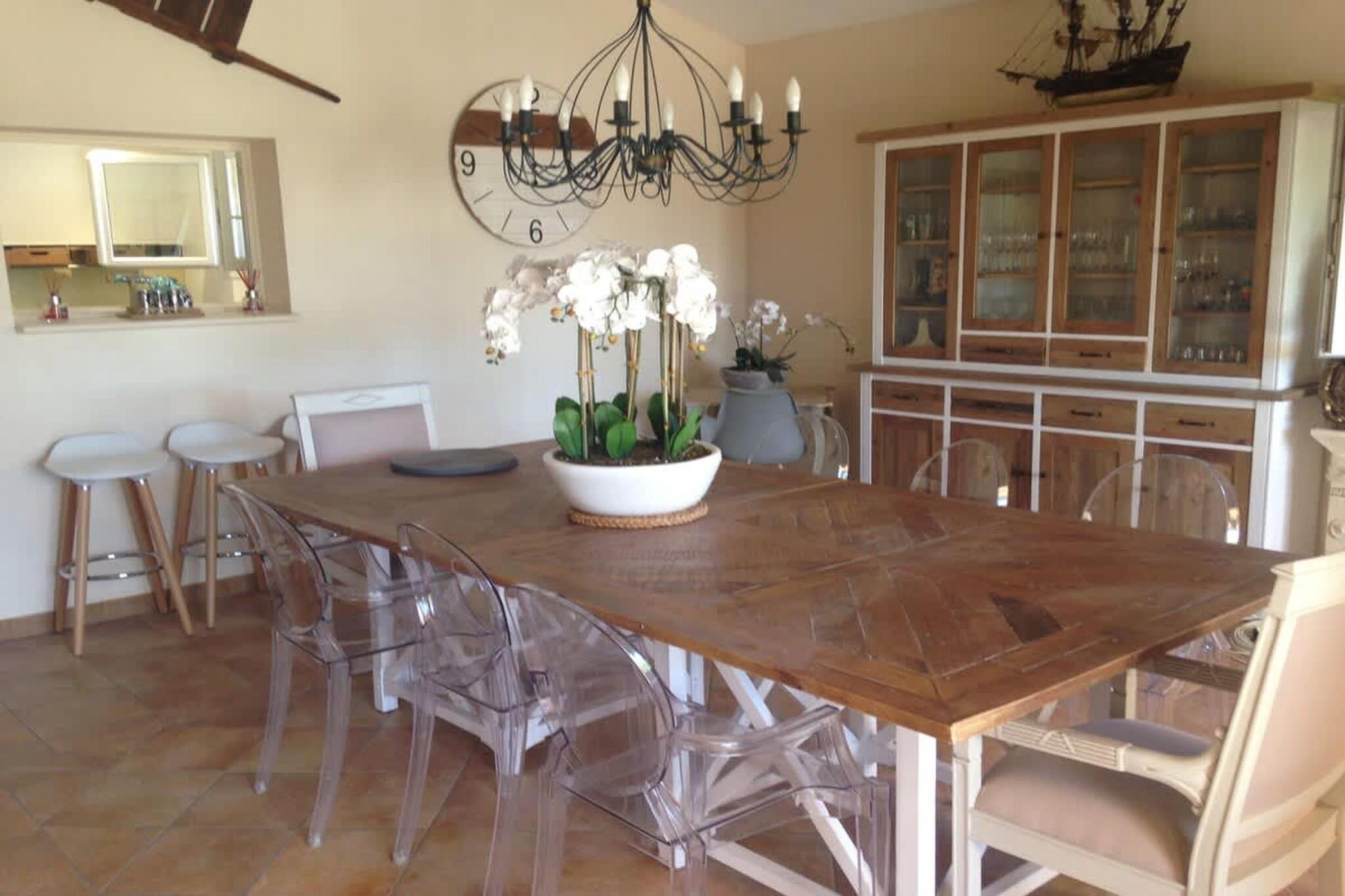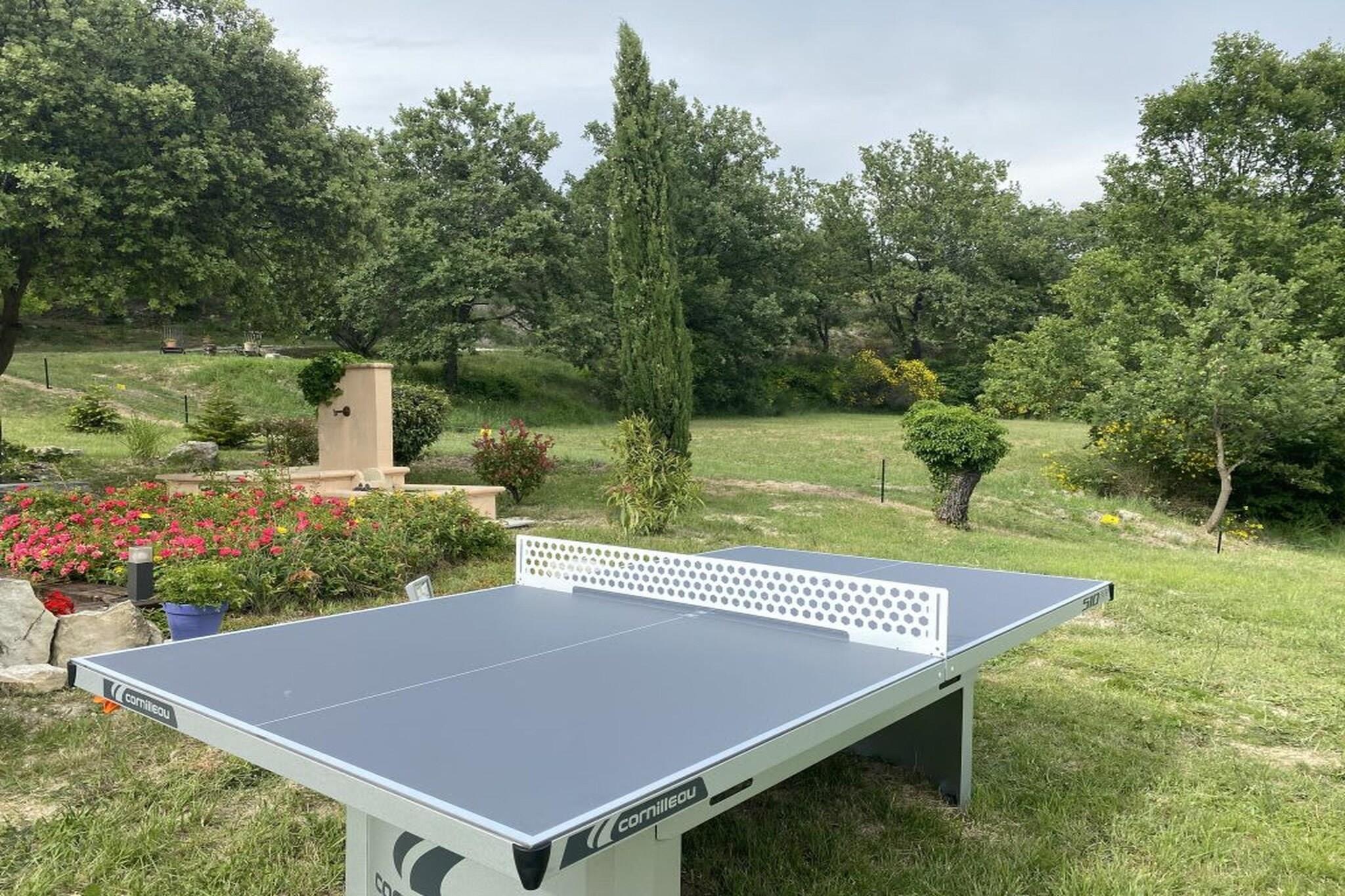 Nestled within a private, expansive seven-hectare estate, this elegant Provençal bastide, located in Murs, offers an authentic and refined sanctuary just six kilometers from Gordes, one of France's most beautiful villages. The property is designed for absolute comfort and serenity, effortlessly blending traditional architectural charm with high-end modern amenities. The spacious interior is arranged to ensure privacy and luxury for all guests, with five spacious bedrooms, each featuring its own private en-suite bathroom, a television, and ample storage space. The common living areas are bright and inviting, opening generously onto the outdoors. The décor is simple and elegant, highlighting quality materials and authentic Provençal charm. The villa is fully equipped with fiber optic Wi-Fi throughout and includes a small gym for guests. The kitchen is fully prepared for your stay, stocked with a dishwasher, microwave, large refrigerator, stove, and all necessary cooking essentials, including a coffee maker and wine glasses. A washing machine and dryer are also provided. Outside, the property is a true haven of peace and activity. The secured, heated swimming pool is the perfect place to unwind, surrounded by vast natural spaces and sun loungers. A terrain de pétanque completes the authentic Provençal experience. The seven hectares of grounds ensure total tranquility and intimacy, offering open views of the Luberon countryside. Thoughtful amenities include a private electric vehicle charging station and adaptations for guests with reduced mobility, such as a ground-floor bedroom, wide doors, and easy pool access.