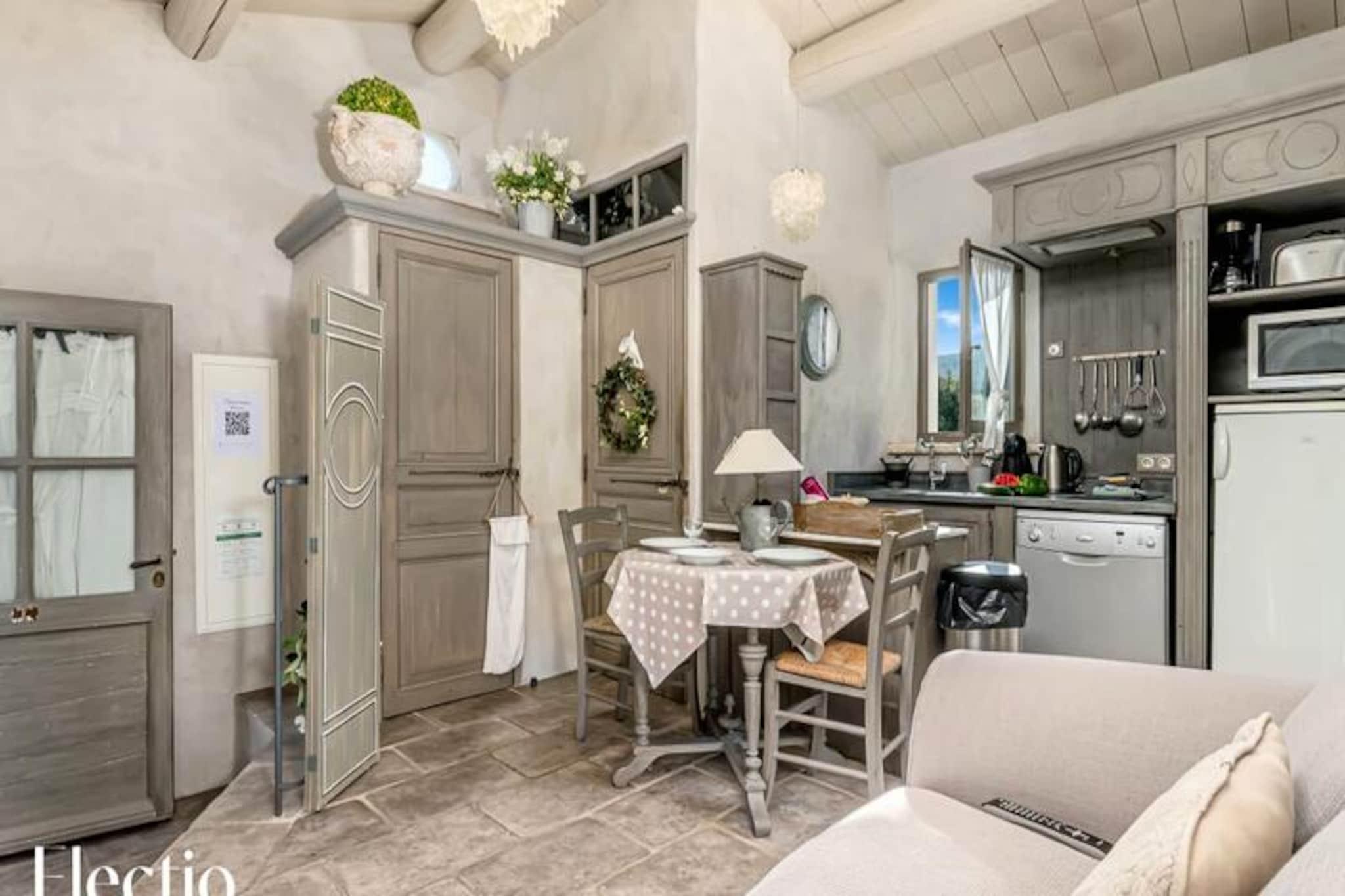 In the heart of the enchanting Luberon Regional Park, this charming apartment offers a serene escape in the picturesque village of Oppéde. Surrounded by the vibrant hues of lavender fields and the timeless beauty of olive groves, this residence invites you to experience the authentic Provençal lifestyle. With its peaceful atmosphere and stunning views of the Luberon hills, it’s the perfect retreat for couples seeking a romantic getaway or solo travelers in search of tranquility. This 28 m² apartment, located on the first floor of the Les Petitons residence, is thoughtfully designed to provide both comfort and charm. The living room, with its cozy sofa and oval dining table, creates a welcoming space to relax or share meals. The fully equipped kitchen includes modern appliances such as an induction hob, dishwasher, and espresso machine, ensuring all your culinary needs are met. The bedroom, adorned with light curtains and wooden furniture, exudes warmth and elegance, while the bathroom features a luxurious walk-in shower with a multi-jet column. Step out onto the private south-facing terrace, where you can enjoy al fresco dining under a pergola, taking in the breathtaking views of the Luberon and the residence’s heated swimming pool. The residence itself is a haven of Provençal charm, with its Mediterranean garden filled with fragrant lavender, century-old olive trees, and shaded pergolas. The heated swimming pool, open seasonally, offers a refreshing escape, while the surrounding landscape invites exploration of the region’s natural beauty. Nearby, the medieval village of Oppéde-le-Vieux beckons with its cobblestone streets, historic architecture, and local artisan shops. Whether you’re savoring a glass of wine on your terrace, wandering through the vibrant markets of Provence, or simply unwinding by the pool, this residence promises an unforgettable stay. Discover the essence of Provence, where every moment is infused with beauty, relaxation, and the art of living.