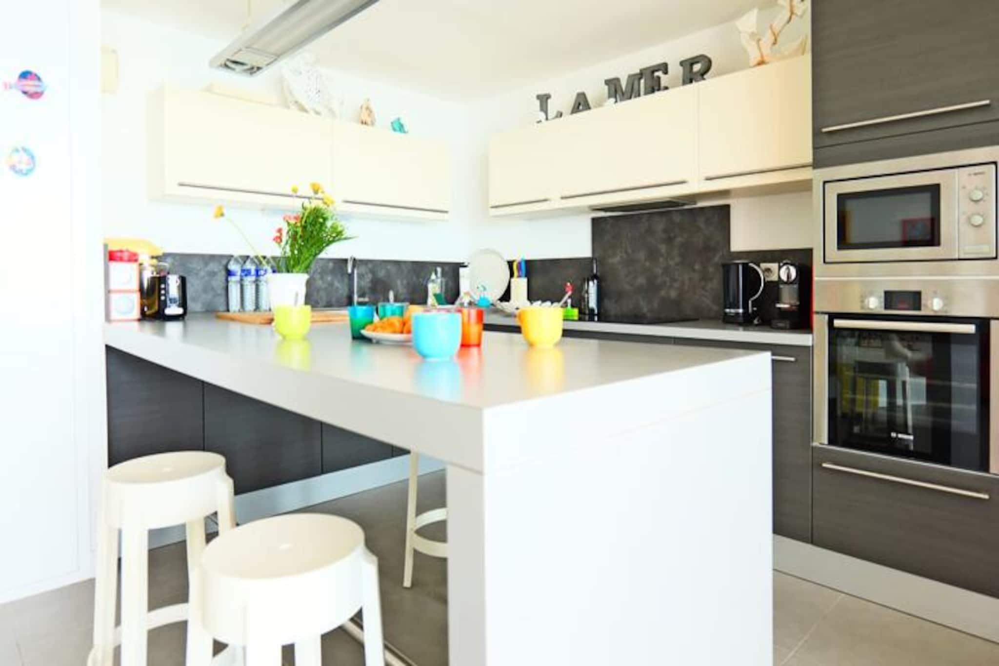 Wake up to the sound of waves and the scent of sea air in this elegant apartment in Palavas-les-Flots, a charming seaside town on the Mediterranean coast. Perfectly situated just steps from the beach, this bright and modern retreat offers an idyllic setting for a relaxing holiday with family or friends. Whether you're soaking up the sun on the sandy shores or exploring the vibrant fishing port, this location promises unforgettable moments by the sea. The apartment, located on the second floor, boasts a spacious 70 m² layout designed for comfort and style. It accommodates up to four guests and features a light-filled living room with a lounge and dining area, a master bedroom with a king-size bed, and a second bedroom with two single beds. The fully equipped kitchen includes everything you need to prepare delicious meals, from a coffee maker to a dishwasher. Additional amenities such as Wi-Fi, air conditioning, a TV, and a stereo system ensure a convenient and enjoyable stay. The private terrace, with its breathtaking sea views, is the perfect spot for morning coffee or evening relaxation. Indoor parking adds to the ease of your stay. Palavas-les-Flots offers more than just beautiful beaches. Stroll through its picturesque streets lined with local shops, indulge in fresh seafood at renowned restaurants like \