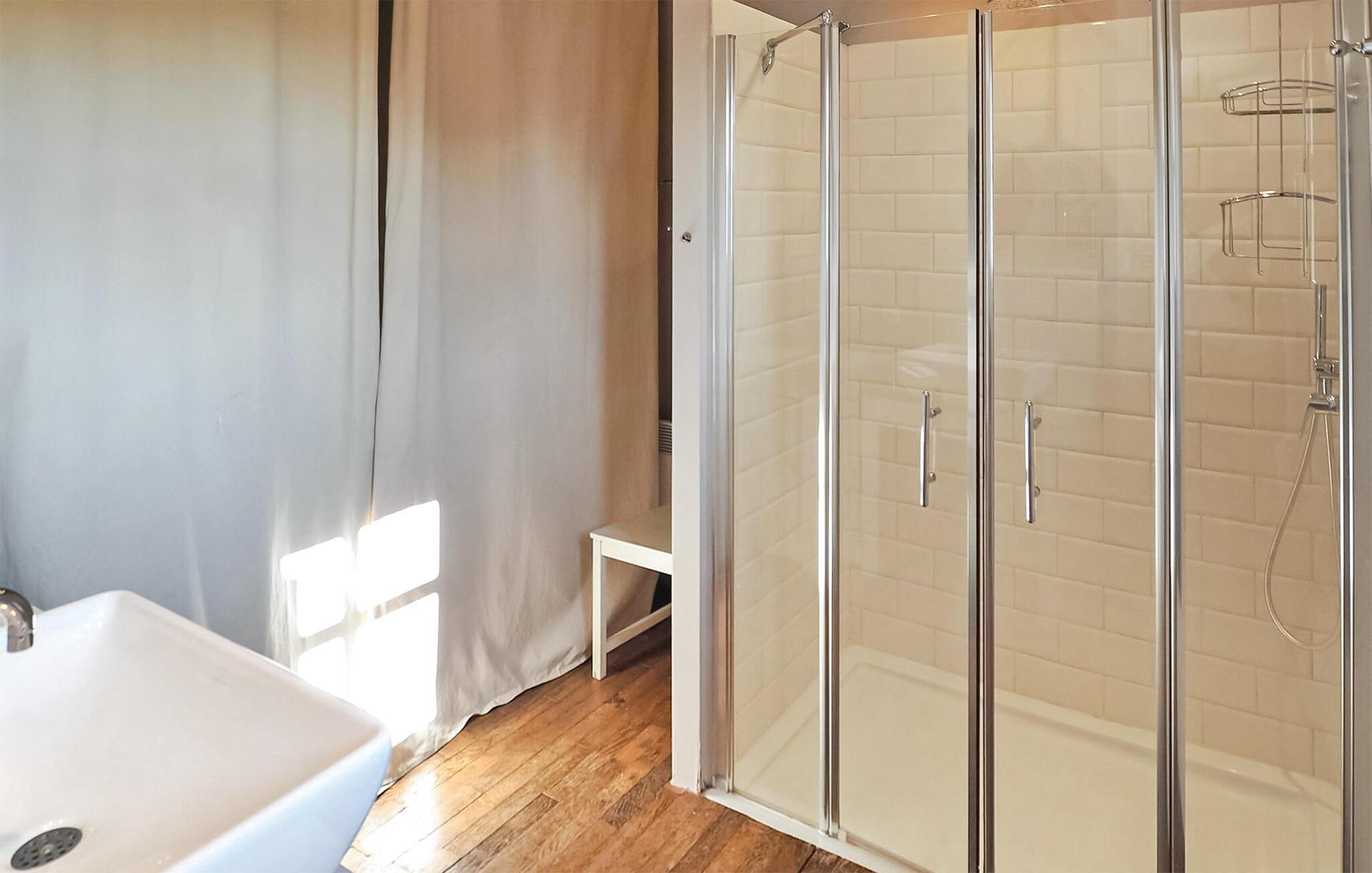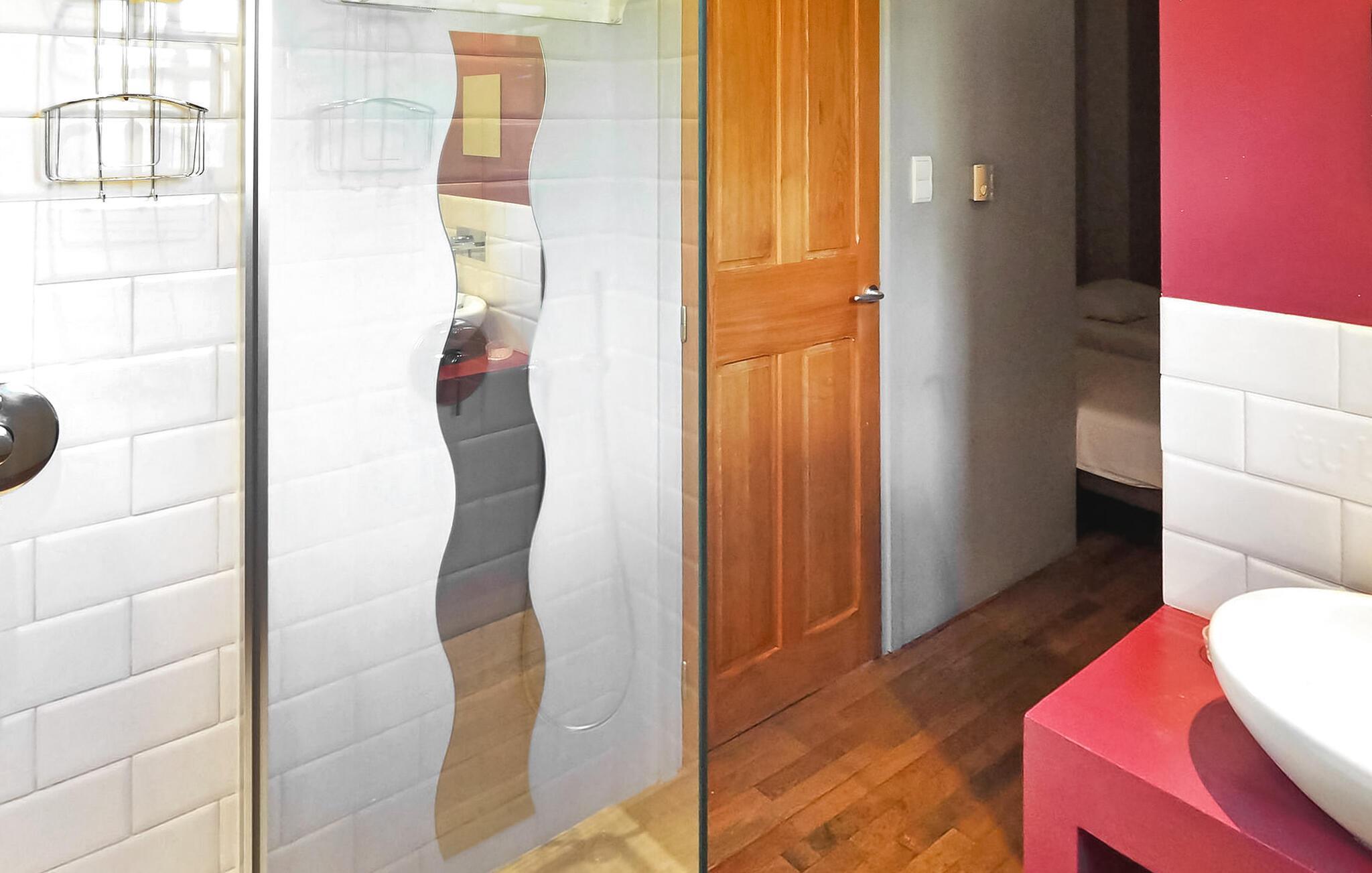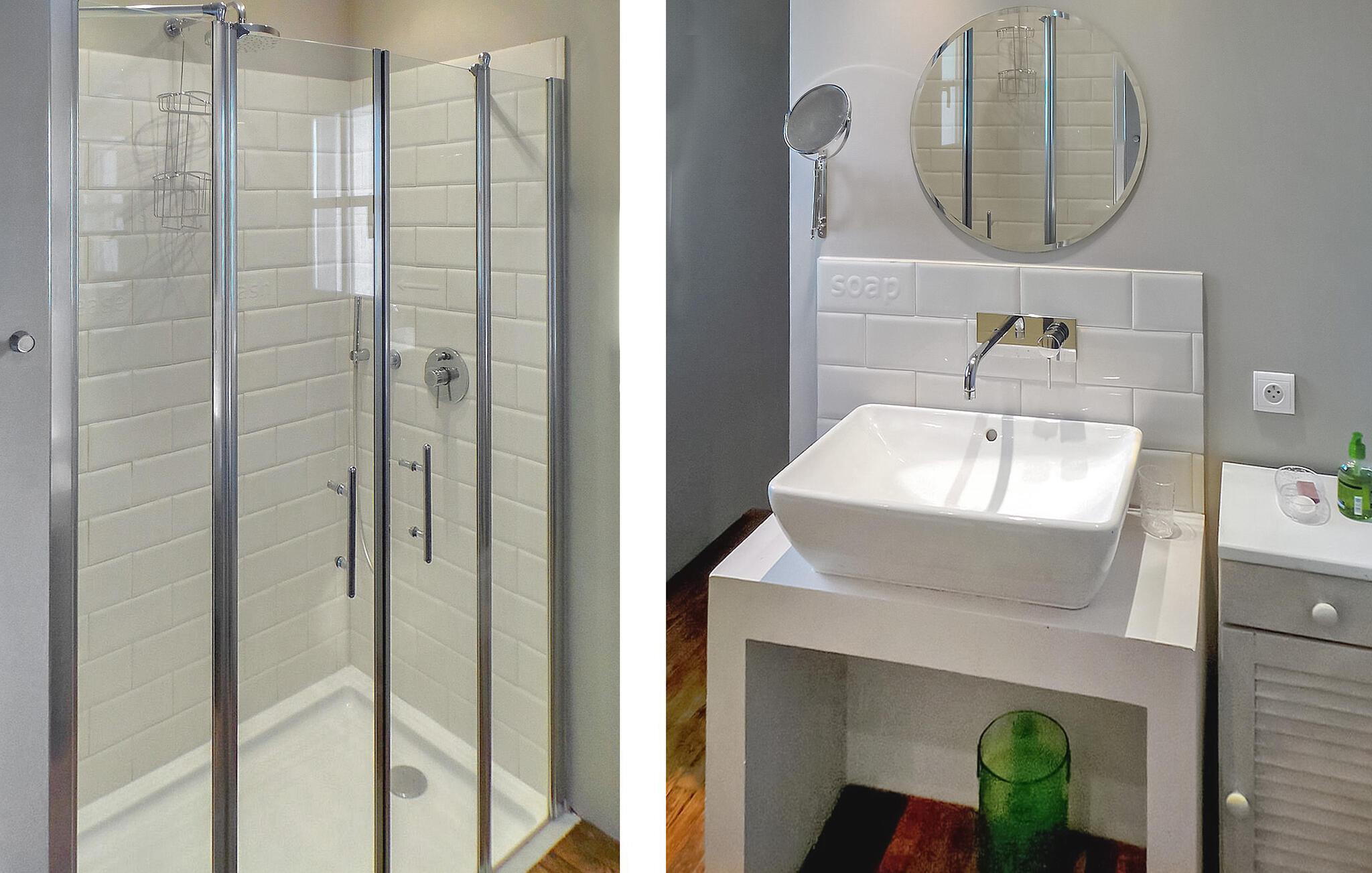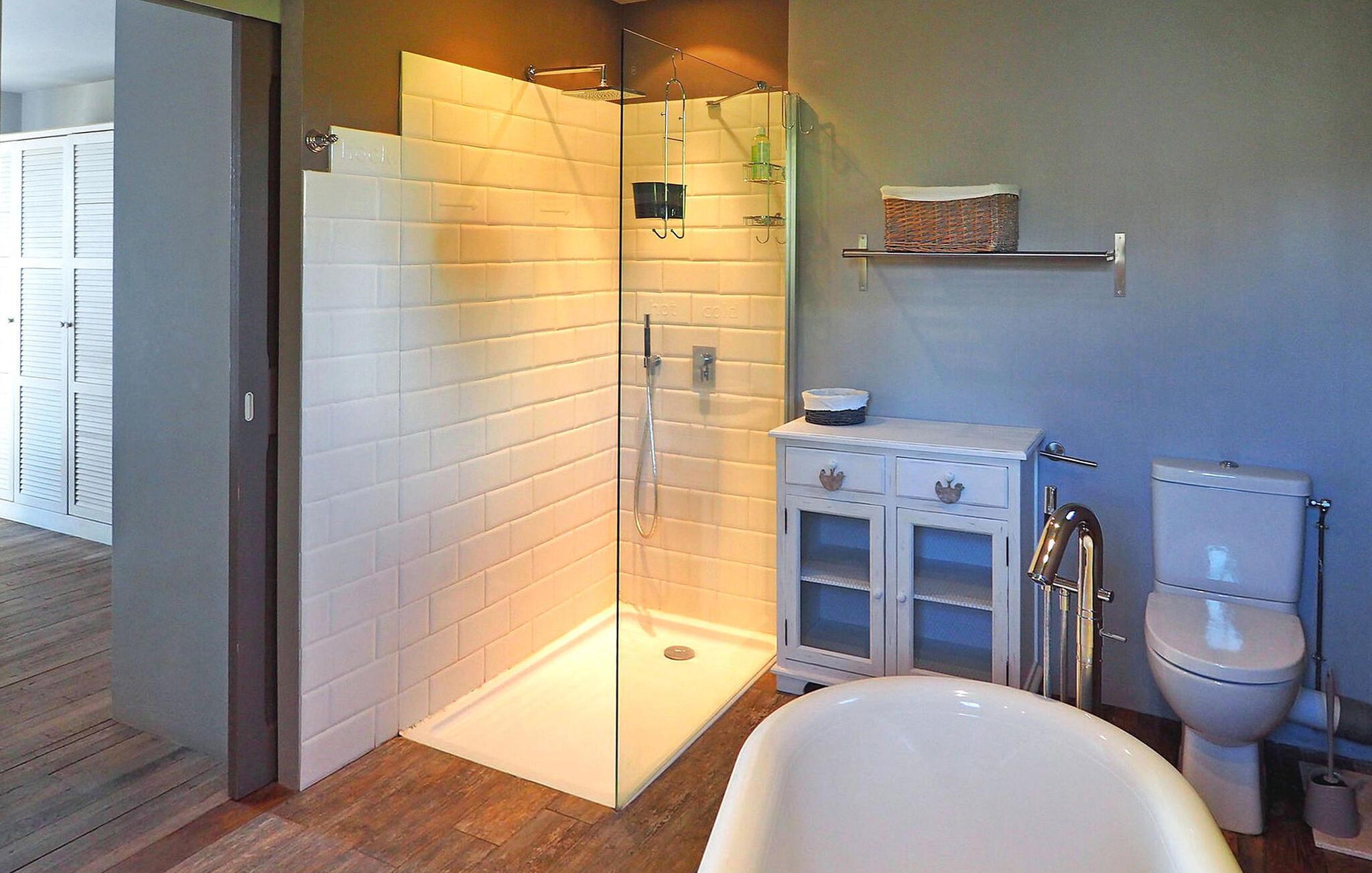Badezimmer (nr. 1) - WC. Warmes und kaltes Wasser. Dusche und Badewanne