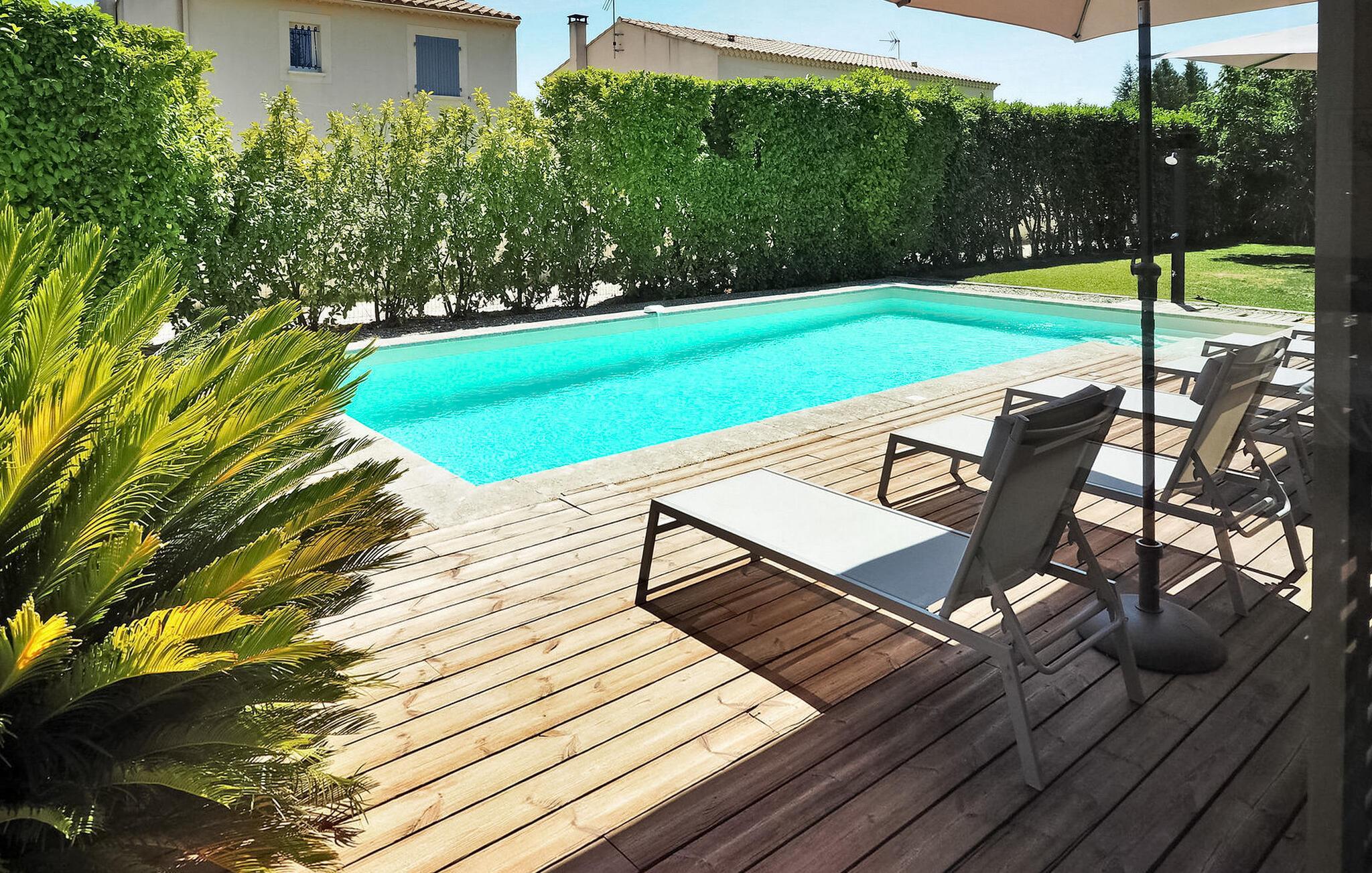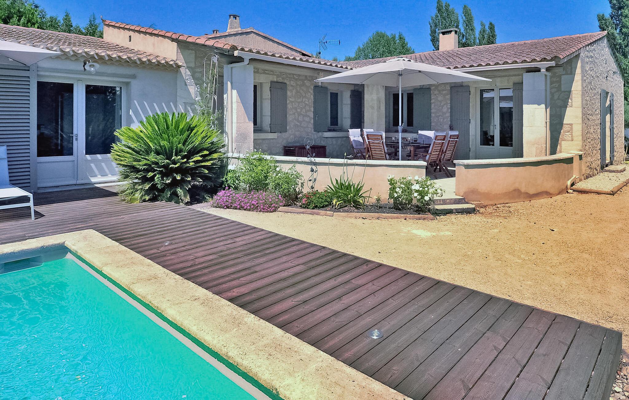 Das Ferienhaus Paradou in Alpilles, Provence, liegt in der Nähe des Dorfzentrums. Dieses einstöckige Anwesen verfügt über große Erkerfenster, die zu einer überdachten Terrasse und einem privaten Poolbereich führen. Das Haus verfügt über eine klimatisierte Küche mit zentraler Kochinsel, einen Essbereich und eine TV-Lounge, die jeweils ebenfalls klimatisiert sind. Die Küche ist mit diversen Geräten ausgestattet. Die klimatisierten Schlafzimmer verfügen alle über ein eigenes Bad. Im Außenbereich verfügt das Anwesen über einen privaten Swimmingpool (9,5 x 4,5 m), Liegestühle, eine Solardusche und eine Speiseterrasse. Bewundern Sie den Brunnen mit seinen Fischen auf dem Parkplatz. Seien Sie jedoch vorsichtig, wenn sich kleine Kinder in der Nähe des Brunnens aufhalten. Der autonome Rasenmäher darf während seiner Mährunde nicht bewegt oder behindert werden, das Besteigen ist selbstverständlich verboten. Das Haus liegt ideal an der Kreuzung aller Gemeinden der Alpilles, um die Alpilles zu entdecken. Paradou ist ein charmantes, renoviertes, ruhiges Dorf, der Verkehr ist dort beruhigt, Radwege und ein Fahrradverleih sind vor Ort. Ausgangspunkt der Wanderung und Zugang zum Alpilles-Massiv vom Dorf aus. Massif du Luberon etwa 1 Autostunde im Osten und Nîmes im Westen. Die Strände von Saintes-Maries-de-la-Mer sind 60 km entfernt. In der Nähe im Ort: Bäcker, Metzger, Supermarkt, Bar, Fahrradverleih, Friseur, Dienstagmorgenmarkt, Veranstaltungen in der Sommersaison.