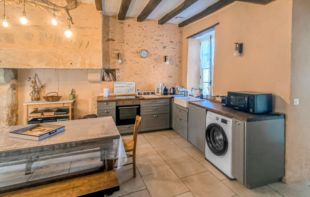 Dieses einladende Haus heißt Sie mit einer harmonischen Mischung aus Gemütlichkeit und Rustikalität willkommen. Beeindruckende Holzbalkendecken, Natursteinoptik und rustikale Möbel schaffen eine Atmosphäre, in der Sie schnell zur Ruhe finden. Lehnen Sie sich entspannt auf dem Sofa bei einem Glas Wein zurück oder veranstalten Sie ein vergnügliches Kochduell und genießen Sie die Ergebnisse in geselliger Runde.