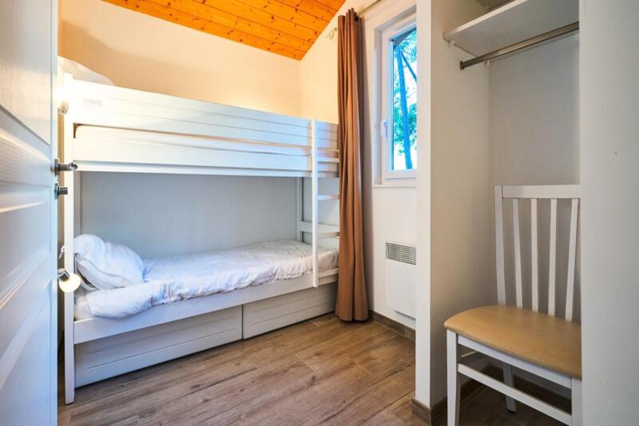 On the tranquil shores of Lake Parentis, surrounded by the lush pine forests of the Landes coast, lies the Residence Les Cottages du Lac 3*. This serene retreat invites you to immerse yourself in the beauty of nature while enjoying modern comforts and exceptional facilities. Whether you’re seeking relaxation or outdoor adventure, this lakeside haven offers the perfect balance of both. Wake up to the gentle sounds of the lake and the scent of fresh pine, setting the tone for a rejuvenating day ahead. \n\nThe residence boasts thoughtfully designed single-story accommodations, each with its own outdoor space. Inside, you’ll find a cozy living room, a well-equipped kitchenette, and three bedrooms accommodating up to six guests. The layout includes a double bedroom, a twin bedroom, and a bunk bedroom, making it ideal for families or groups. The aquatic area is a highlight, featuring a heated outdoor pool, a heated indoor pool with whirlpools, a paddling pool, and a lap pool. After a day of exploration, unwind in the sauna, where one session per week is included in your stay. Additional amenities such as Wi-Fi, electric car charging stations, and pet-friendly options ensure a comfortable and convenient experience. \n\nStep outside and discover the wonders of the Landes coast. The nearby cycle paths offer scenic routes through the forest, while Lake Biscarrosse-Parentis provides opportunities for windsurfing, fishing, and lakeside relaxation. The private access road to the lake beaches makes it easy to enjoy the pristine waters and sandy shores. For families, the playground and outdoor activities promise endless fun. \n\nChoose Residence Les Cottages du Lac 3* for a memorable escape where nature, comfort, and adventure come together effortlessly. Whether you’re exploring the pine-scented trails or simply soaking up the sun by the pool, this charming property ensures every moment is unforgettable.