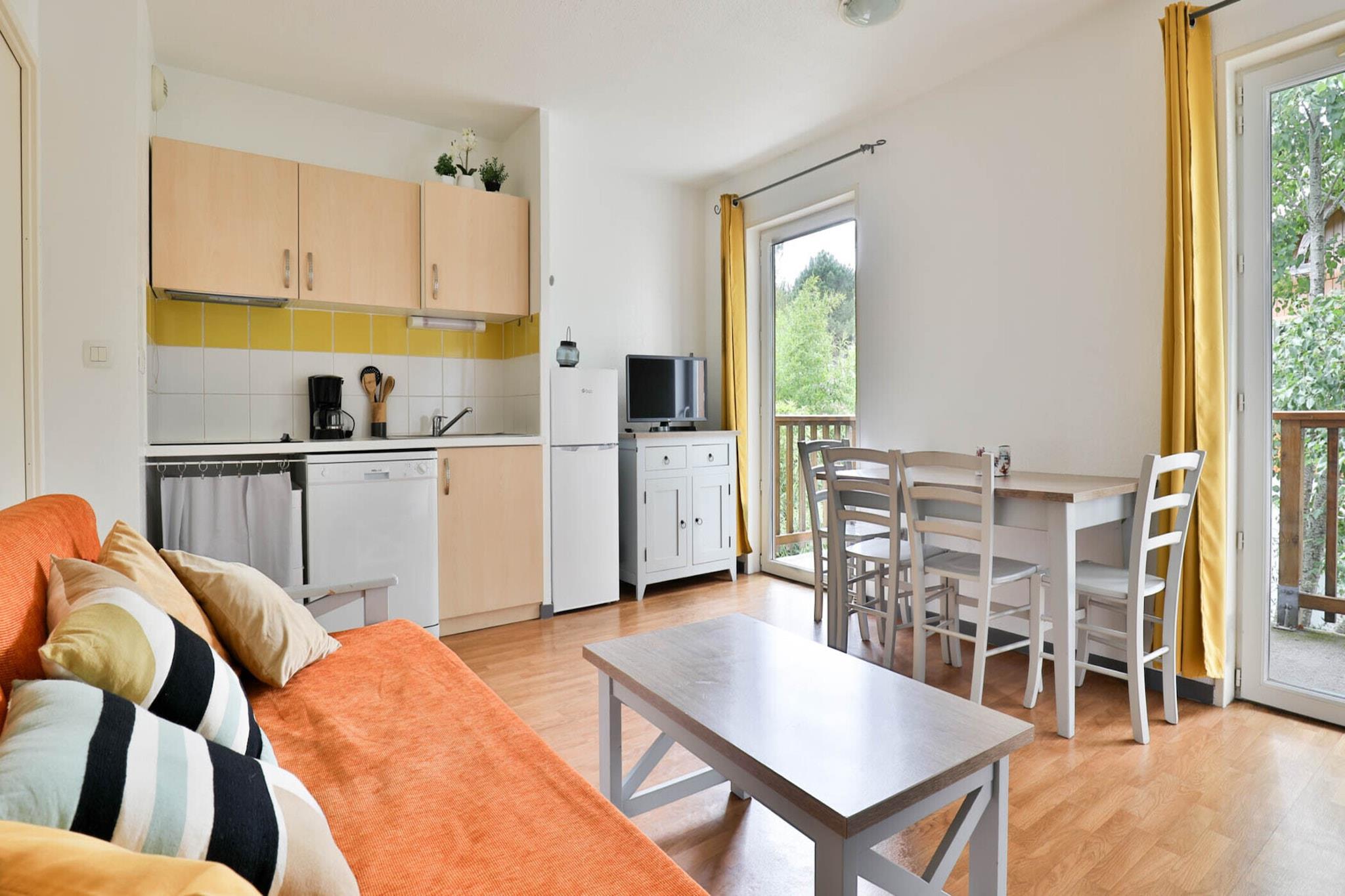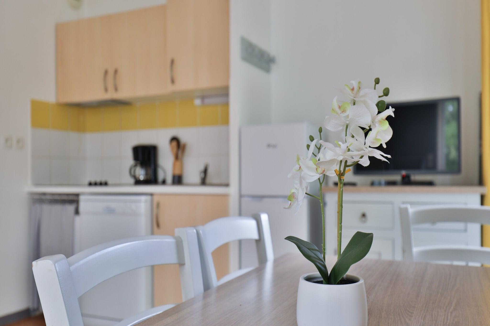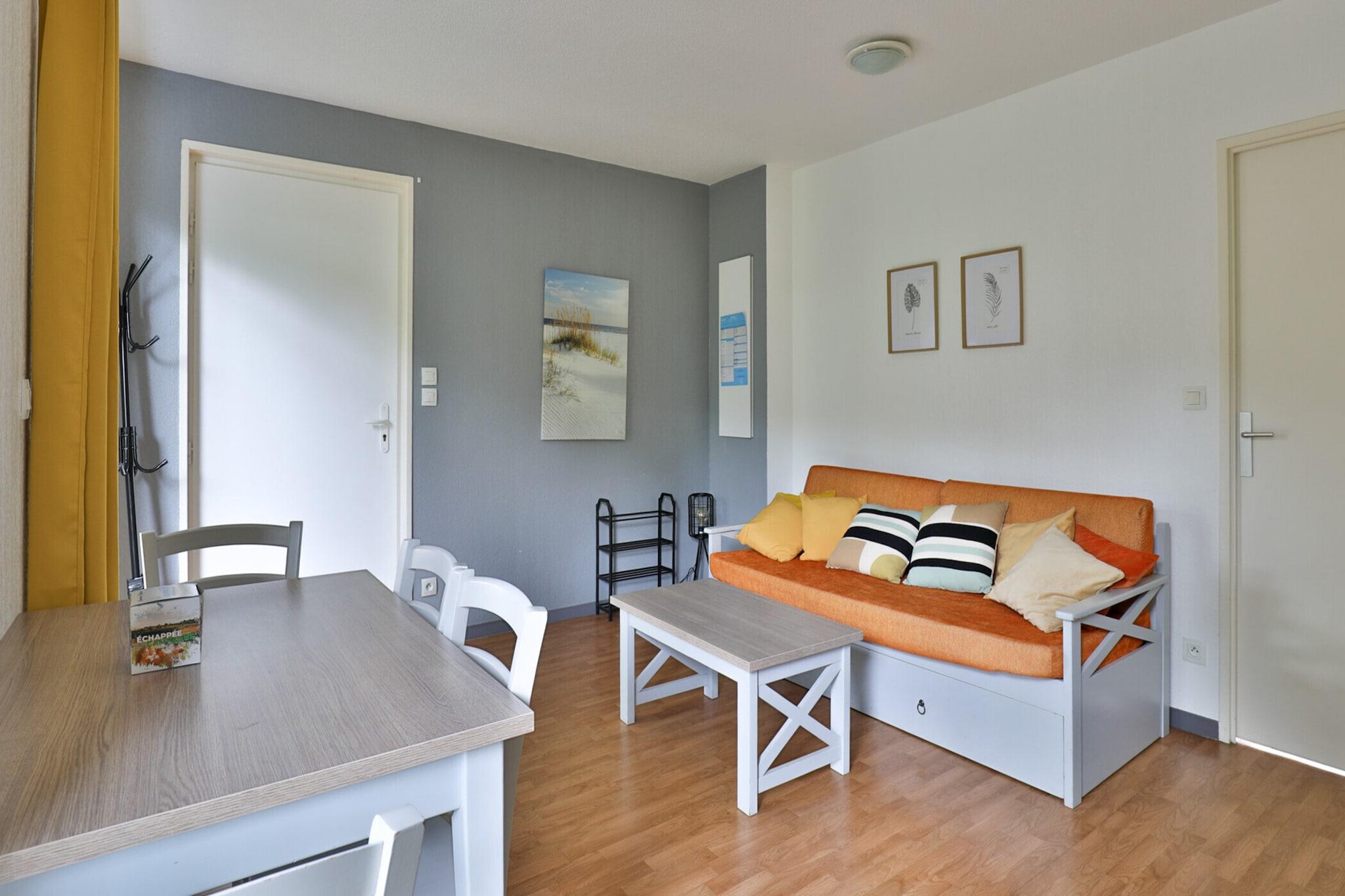 Welcome to Domaine des Grands Lacs in Parentis-en-Born, where nature, comfort and relaxation come together for a truly refreshing holiday. Nestled in the heart of the Landes countryside, this cosy 35 m² apartment is perfect for up to 4 guests – whether you're a small family, a couple looking for space to unwind or friends seeking a peaceful retreat. Here, time slows down just enough for you to enjoy the simple pleasures of lakeside living. Located on the first floor, the apartment features a bright living room with a pull-out sofa bed, a comfortable double bedroom and a private balcony where you can sip your morning coffee or enjoy a glass of wine as the sun sets. The kitchen is fully equipped with a refrigerator, microwave, coffee maker, toaster and kettle – everything you need to prepare homemade meals. A modern bathroom with a bathtub and separate toilet adds to your comfort. Within the residence, you have access to two swimming pools (one indoor, one outdoor), a gym, a sauna and a jacuzzi – perfect for relaxing after a day of exploring the region. Just a short walk away, you'll find everything you need – a supermarket (150 m), the pleasant Le Chill restaurant (50 m) and the tranquil Etang de Parentis lake (350 m) for swimming, picnics or paddling adventures. Discover the charm of Landes: scenic hiking trails through pine forests, colourful local markets and regional delicacies such as confit duck and pastis landais. Whether you are here for the sun, peaceful mornings or starry nights, Domaine des Grands Lacs welcomes you to a relaxing stay filled with warmth and the tranquillity of nature.