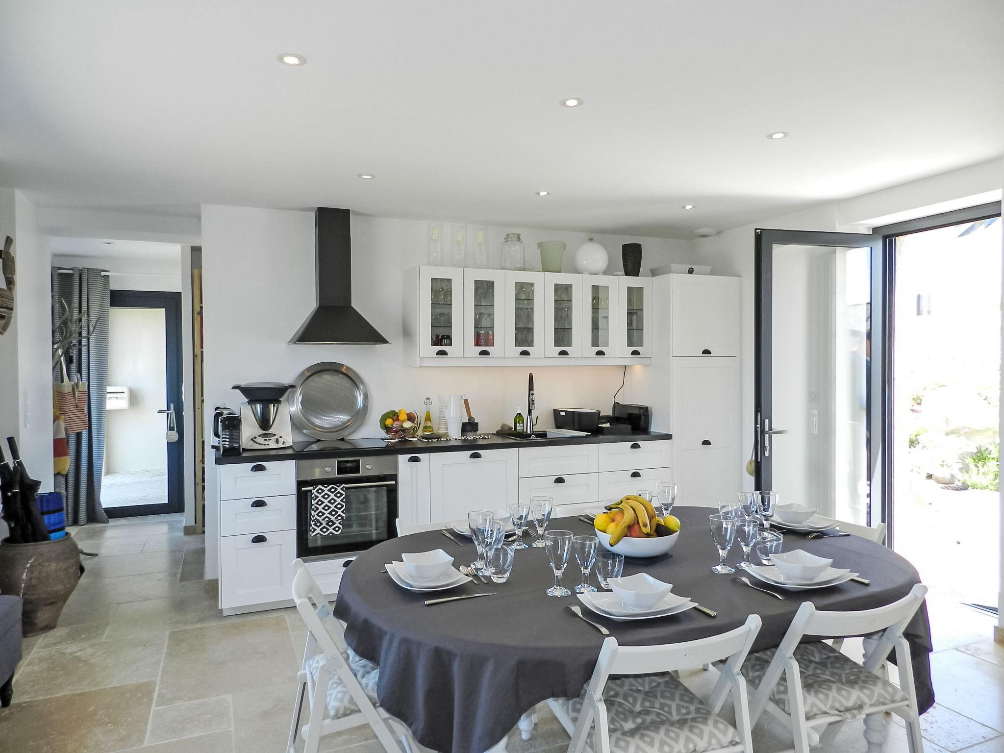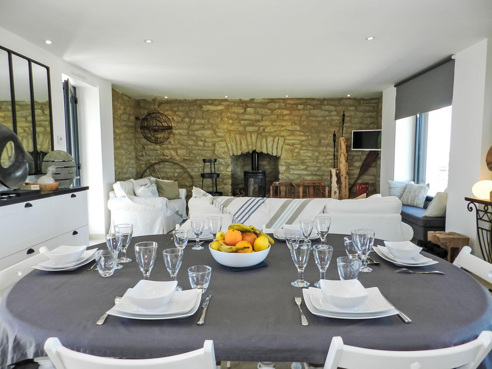 4-room house 120 m2 on 2 levels. Comfortable and modern furnishings: living/dining room with Scandinavian wood stove (only for decoration), TV (flat screen). Exit to the terrace. Open kitchen (oven, dishwasher, 3 ceramic glass hob hotplates, toaster, kettle, microwave, electric coffee machine). Shower, sep. WC. Upper floor: 1 room with 1 french bed (1 x 160 cm, length 200 cm) with corner bath and TV (flat screen). 1 room with 1 double bed (2 x 80 cm, length 200 cm), shower and TV (flat screen). 1 room with 2 sleeping facilities (2 x 80 cm, length 190 cm), shower. Sep. WC. Electric heating. Terrace 50 m2. Terrace furniture, deck chairs (6). Beautiful view of the sea. Facilities: washing machine, dryer, children's high chair, baby cot for up to 2 year olds. Internet (WiFi, free). Please note: non-smoking house. Smoke alarm. The property has a relaxation area located upstairs, with views of the sea.