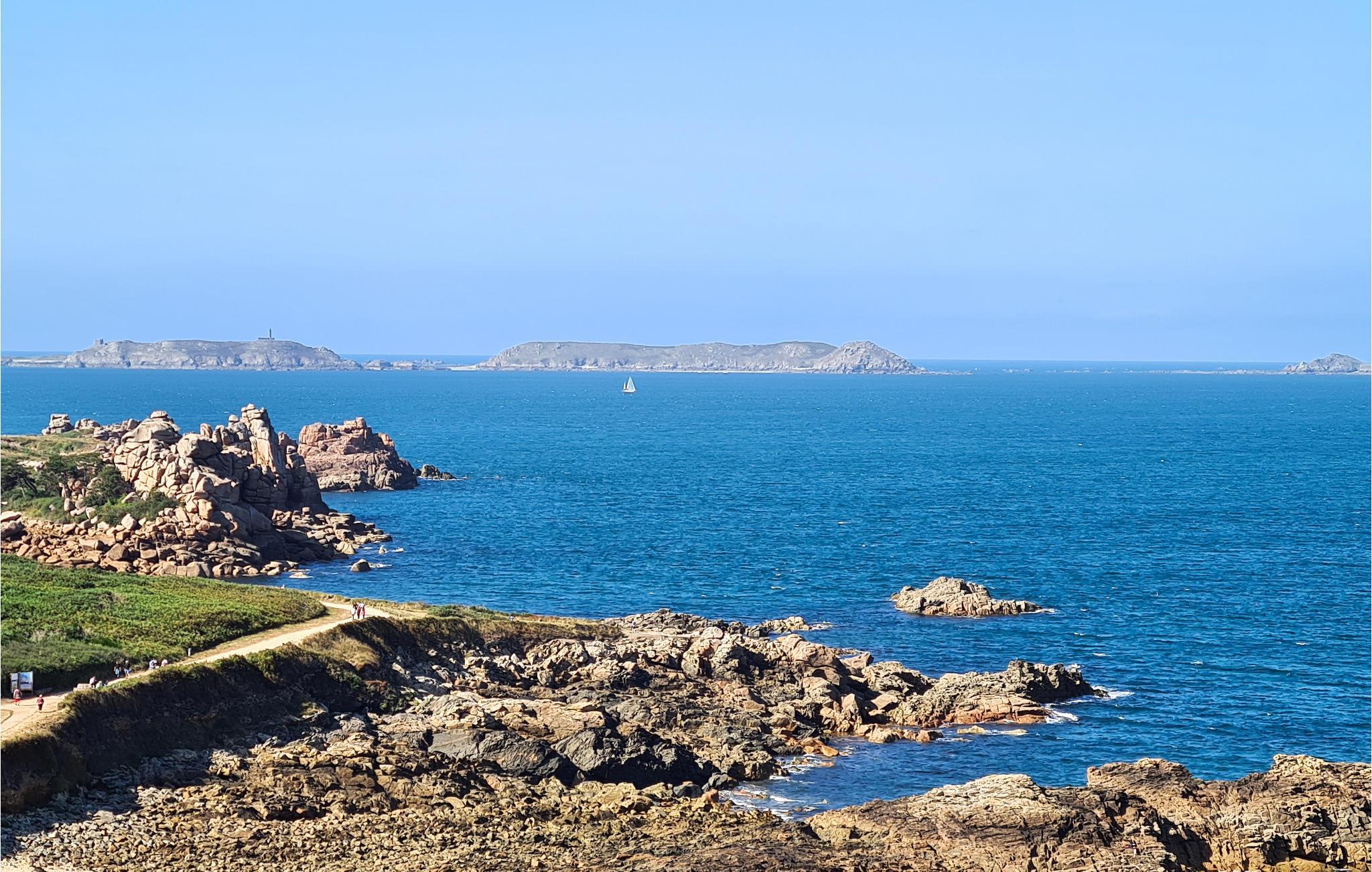 Nur einen Katzensprung von der Stadtmitte entfernt empfängt Sie dieses wunderschöne Haus in den Anhöhen von Perros-Guirec, einem großen Badeort mit Kasino, Thalassotherapiezentrum und Segelschule. Der Große geschlossene Garten überschaut den Hafen. Eine Mischung aus antiken Möbelstücken und modernen Elementen sorgt für ein gemütliches Wohnambiente. Über das Wohnzimmer gelangt man auf die Terrasse mit einem außergewöhnlichen Panoramablick auf die Bucht. Das Objekt befindet sich auf halber Strecke zwischen den beiden weitläufigen Stränden Trestraou und Trestignel, die beide in der Hauptsaison überwacht werden und mit Kinderspielgeräten ausgestattet sind. Eine Vielzahl kleiner Felsenbuchten ist leicht erreichbar, vor allem Les Arcades in der Nähe vom Hafen. Zu den empfehlenswerten Ausflugszielen in der Umgebung zählen die Inselgruppe Sept Îles, Ploumanac'h mit seinem herrlichen Wanderweg und den bizarren Felsformationen am Strand Saint-Guirec, Trégastel, das mit einem Aquarium, einem Golfplatz und einem beheizbaren Meerwasserpool aufwartet, sowie Pleumeur-Bodou mit seiner Radaranlage und einem Freizeit- und Erlebniszentrum.