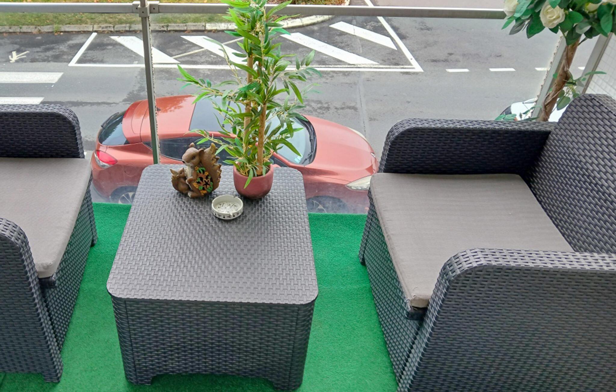 Freuen Sie sich auf diese Ferienwohnung mit überdachtem Balkon und Blick aufs Meer.