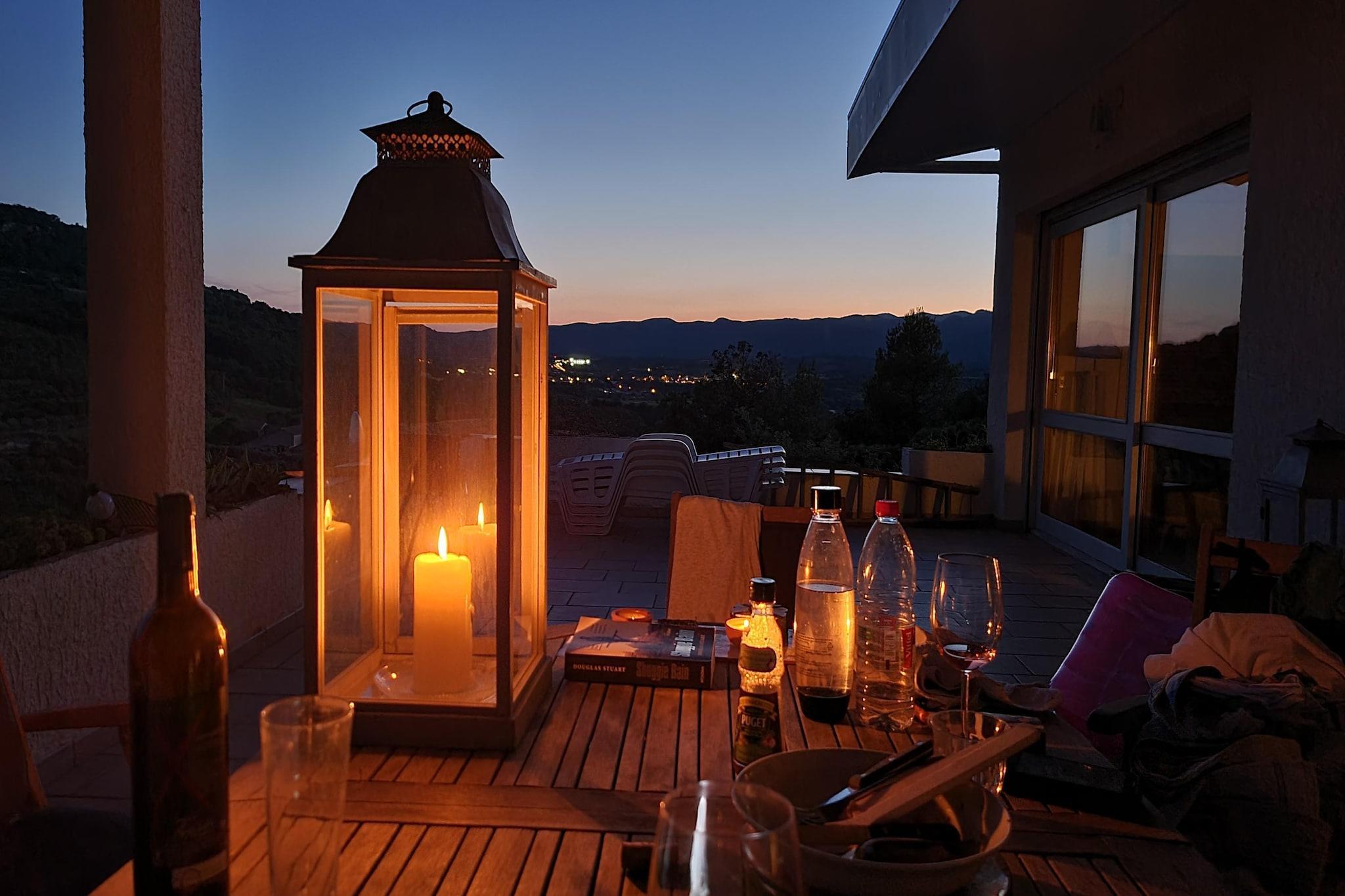 Set high above the vineyards and wild hills of the Hérault region, this peaceful holiday home in Pierrerue offers a front-row seat to nature’s quiet beauty. Surrounded by sun-dappled woodland and the scent of Mediterranean scrub, it’s a place where mornings unfold to birdsong and evenings glow beneath a pink horizon. Perfect for families or friends, the holiday home accommodates up to six guests in a calm, contemporary setting that blends comfort with authentic southern charm. The 100 m² main house features two inviting bedrooms, a bright living room with large windows, and a fully equipped kitchen that opens to a generous terrace overlooking the valley. Here, you can share long meals, linger over local wine, or simply watch the light shift across the landscape. Below the terrace, a 40 m² apartment offers privacy for two, with its own bedroom, bathroom, and living area. Thoughtfully designed interiors include warm touches like a fireplace, espresso machine, and dining spaces that bring everyone together with ease. Outside, a private swimming pool (open April to October) invites relaxation under the southern sun. The surrounding garden and hillside are perfect for quiet strolls or evening barbecues. Nearby, explore the markets of Saint-Chinian, the historic streets of Béziers, or the scenic paths of the Haut-Languedoc Natural Park. Wine lovers can tour local vineyards and sample Languedoc’s finest, while the beaches of the Mediterranean lie just a short drive away. This is a retreat made for slowing down where nature, comfort, and the rhythm of rural France come perfectly together.