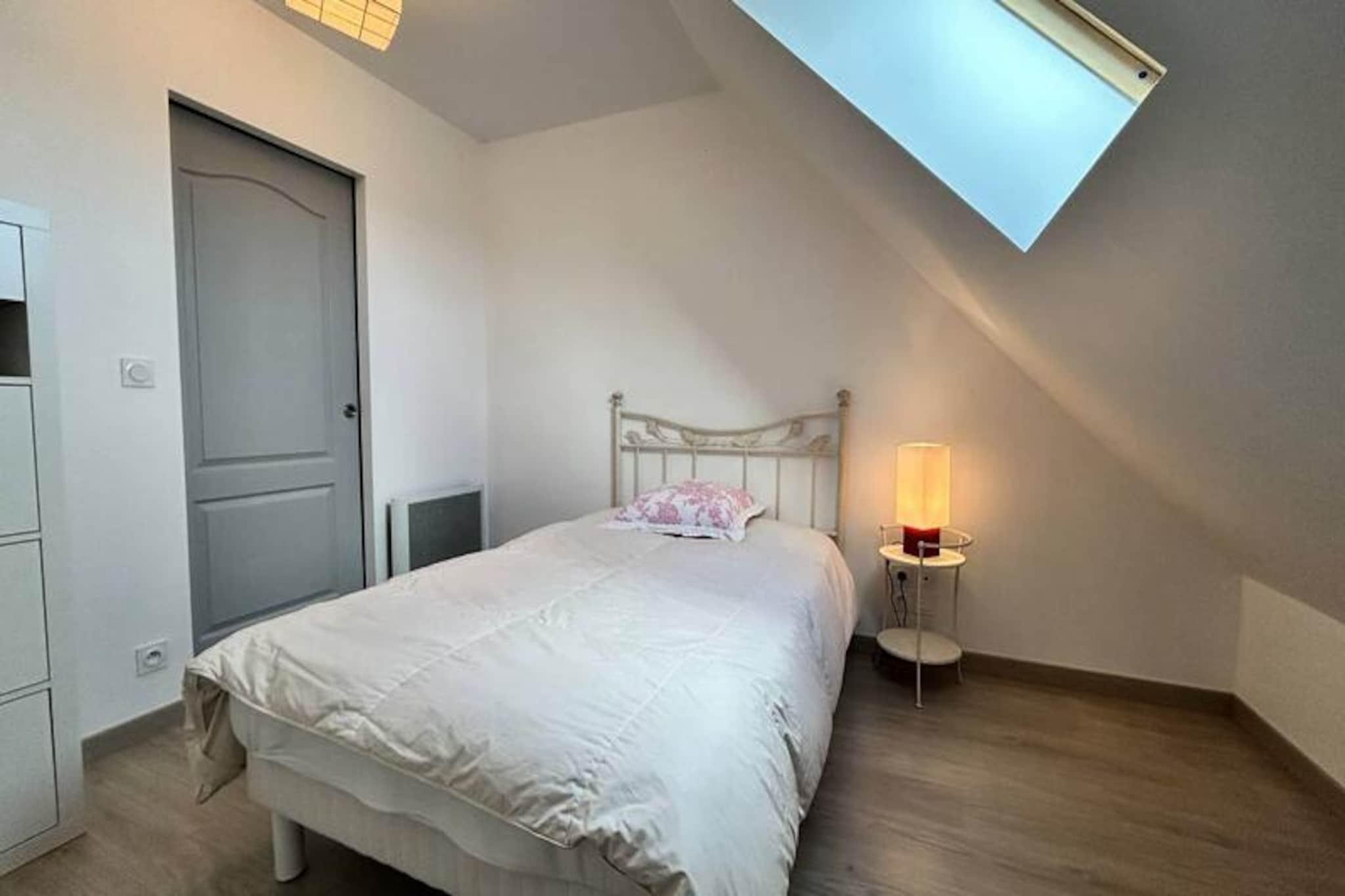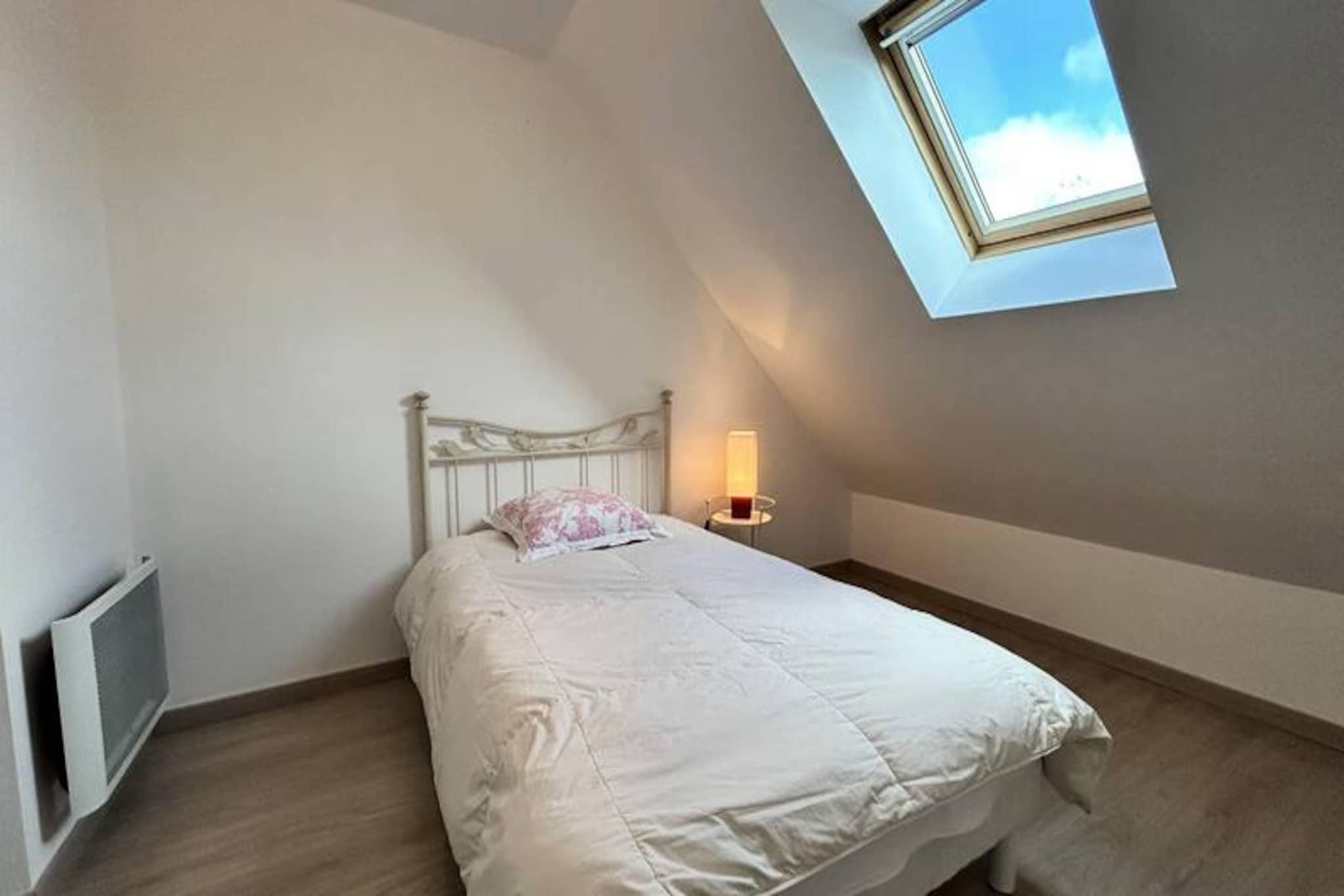 A stone’s throw from the golden sands of Plage des Vallées, this delightful terraced house offers a serene coastal retreat in the heart of Pléneuf-Val-André. Imagine waking up to the gentle sound of waves and stepping out to explore the charming seaside resort, where a 2-kilometer pedestrian promenade invites leisurely strolls along the shore. With its prime location less than 1 km from the beach and close to the casino, restaurants, and shops, this property is perfect for those seeking both relaxation and convenience. Whether you’re here for summer adventures or a peaceful escape, the vibrant atmosphere of the Brittany coast awaits. Inside, the house is thoughtfully designed for comfort and practicality. The ground floor features a spacious living room bathed in natural light, complete with a cozy lounge area and dining space for six. The fully equipped kitchen includes modern appliances such as an induction hob, oven, refrigerator-freezer, dishwasher, and more, making it easy to prepare fresh meals with local ingredients. A double bedroom, a sleek bathroom with a walk-in shower, and a laundry room with a washer and dryer ensure all your needs are met. Upstairs, you’ll find two additional bedrooms, one with a single bed and the other with a double bed, offering restful spaces for family or friends. Beyond the house, Pléneuf-Val-André beckons with its lively ambiance and natural beauty. Spend your days basking on the beach, savoring fresh seafood at nearby restaurants, or trying your luck at the casino. For outdoor enthusiasts, the area offers scenic hiking trails, cycling routes, and breathtaking views of the coastline. Whether you’re exploring the local attractions or simply unwinding in the comfort of this charming home, every moment promises to be unforgettable. Choose this property for its unbeatable location, welcoming interiors, and the chance to experience the best of Brittany’s coastal charm. Create lasting memories in a place where the sea meets the soul.