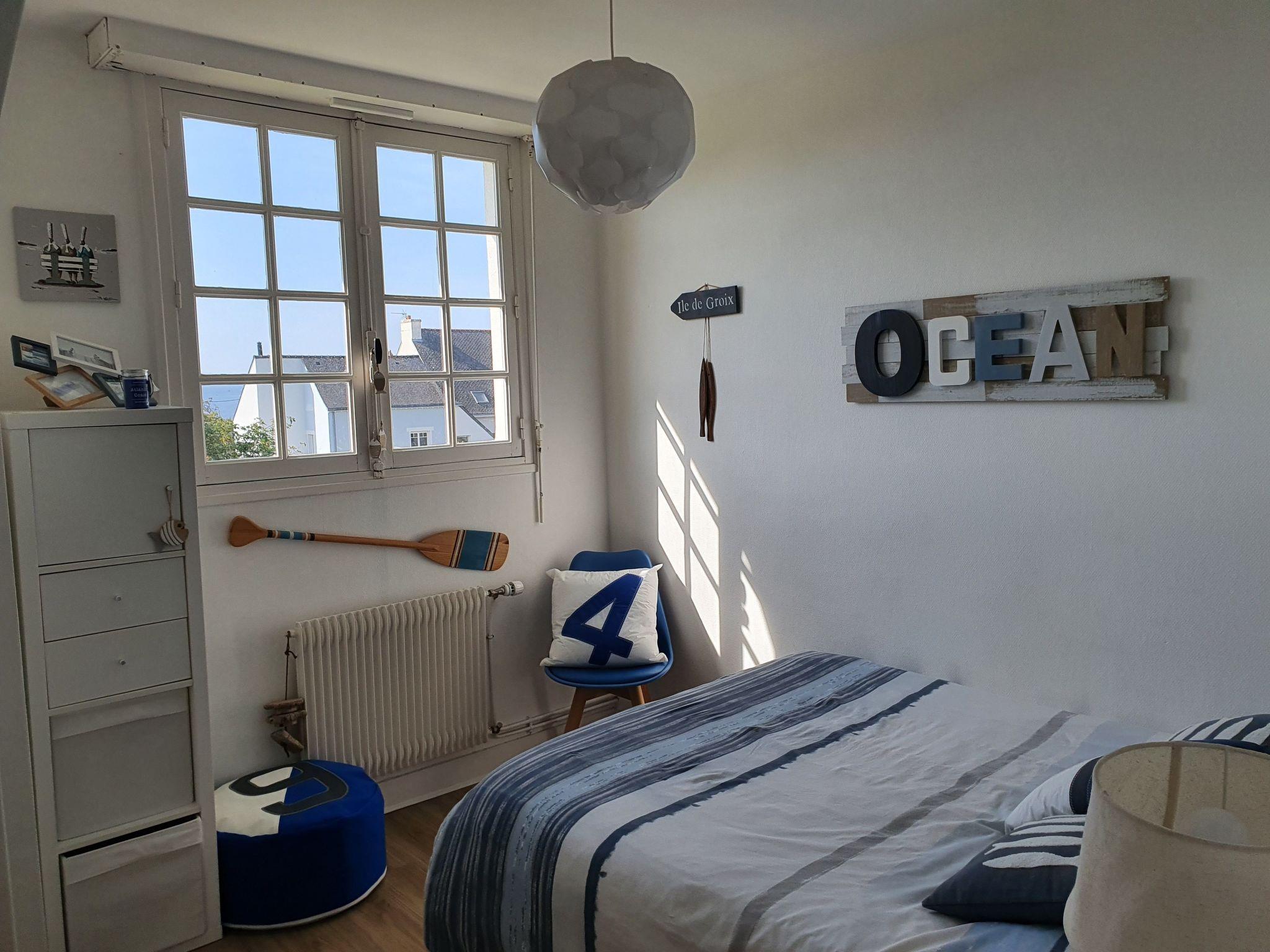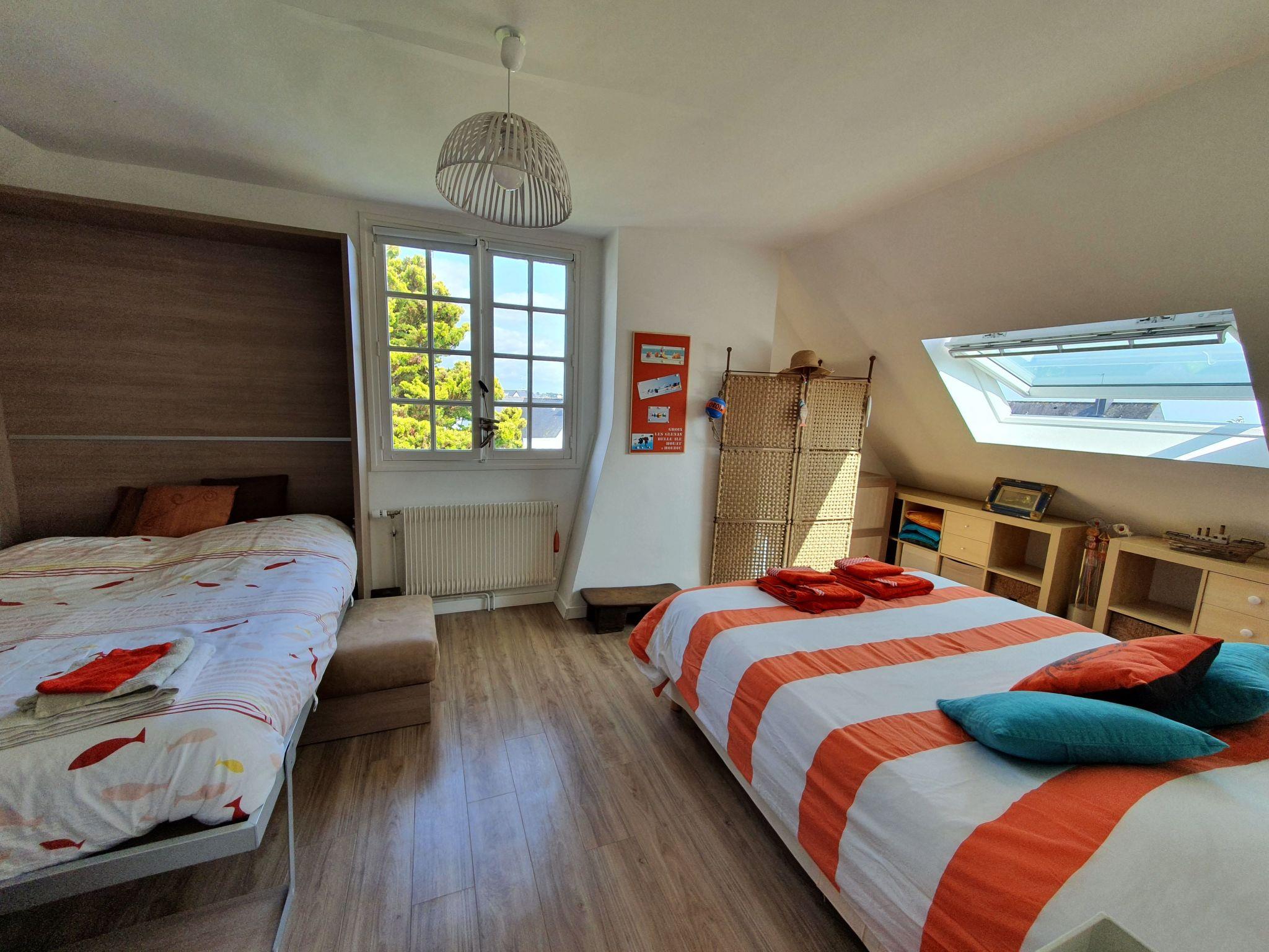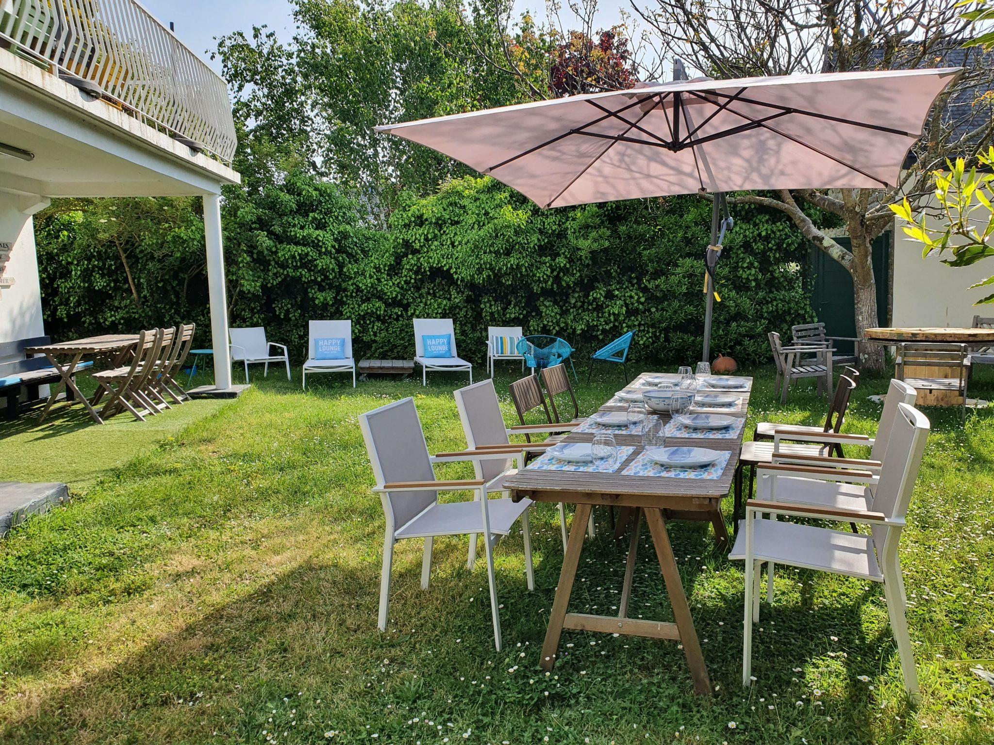 Family house sleeps 12 in Lomener close to 4 sandy beaches You'll love our 6-room house, set in a quiet cul-de-sac, for its bright, airy living room opening onto an open, south-facing terrace and 300 m2 enclosed garden with deckchairs, parasol and barbecue. Less than 400 m from 4 sandy beaches and coastal paths between Lomener and Le Perello and 600 m from the shops and Intermarché supermarket. Facing the island of Groix. Small sea views from upstairs bedrooms. Free parking in front of the house. Basement garage.