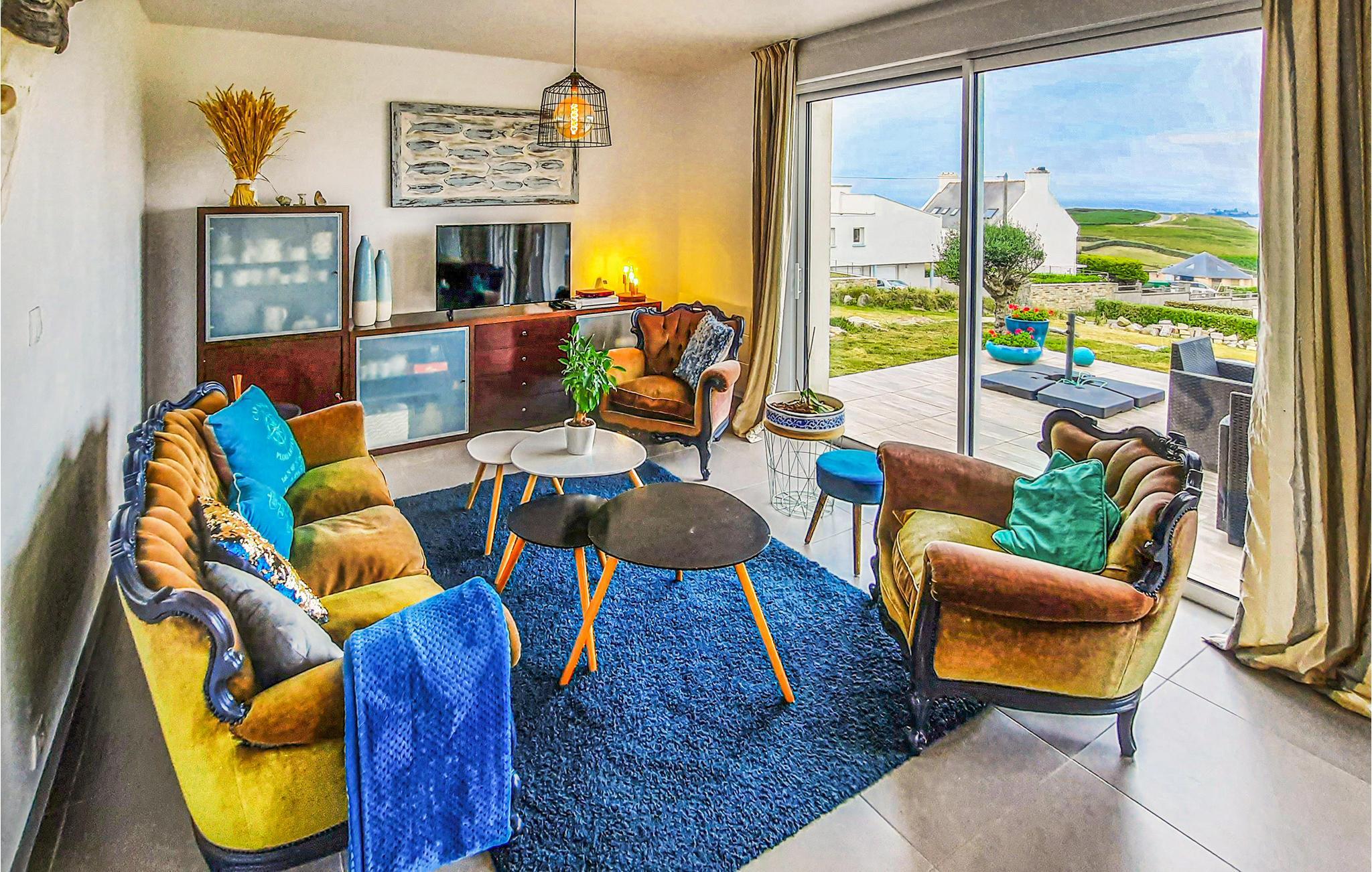 Ein tolles Ferienhaus für eine unvergessliche Urlaubszeit im Finistère. 27 km von Brest gelegen öffnet das Haus Ihnen seine Türen in einem geschützten Naturgebiet nur 350 vom Strand entfernt. Sie profitieren von einem wunderschönen Meerpanorama. Dank der großen Glasfronten kommt ausreichend Licht ins Hausinnere und haben Sie einen entspannenden Blick nach draußen. Die Inneneinrichtung ist modern und elegant, und das geräumige Schlafzimmer im Obergeschoss ist mit einem großen Doppelbett ausgestattet. Besuchen Sie die Inseln Ouessant oder Molène. Los geht es mit der Bootsfähre ab Le Conquet (13 km). Das traditionelle Fischerdorf Camaret-sur-Mer (20 km) und sein Vauban-Turm sind ebenfalls einen Ausflug wert. In Plouarzel können Sie den Menhir von Kerlouas (10 km) bestaunen, und auch Plougonvelin (15 km) kann sich sehen lassen. Erleben Sie dort das Fort Bertheaume, den Leuchtturm Saint-Mathieu oder den herrlichen Blick auf die Reede von Brest. Brest mit dem Aquarium Océanopolis und einem Marinemuseum begeistert jeden in der Familie. 15 km entfernt befindet sich ein Seilgarten in Saint-Renan, und Golfer finden ihr Glück auf dem 7 km entfernten Platz mit sowohl einer 9- als auch einer 18-Loch Anlage. Besorgen Sie sich zum Kochen fangfrischen Fisch und leckere Meeresfrüchte und genießen Sie dazu eine Flasche Apfelwein. Nur 250 m vom Haus entfernt verläuft der renommierte Fernwanderweg GR34. Buchen Sie dieses herrliche Feriendomizil und freuen Sie sich auf einen Urlaub mit vielen angenehmen Überraschungen. Achtung: Das Grundstück ist abfallend und nicht geschlossen.