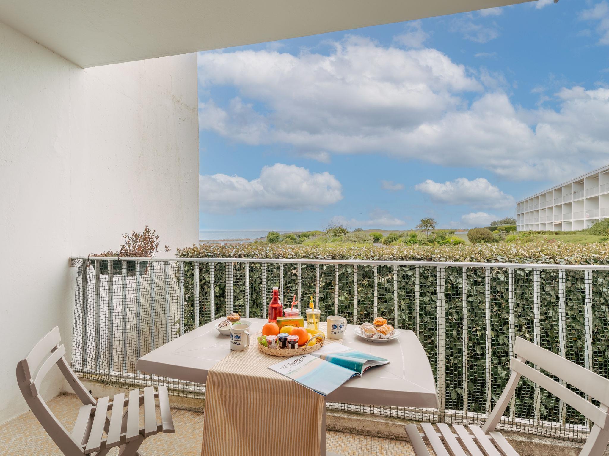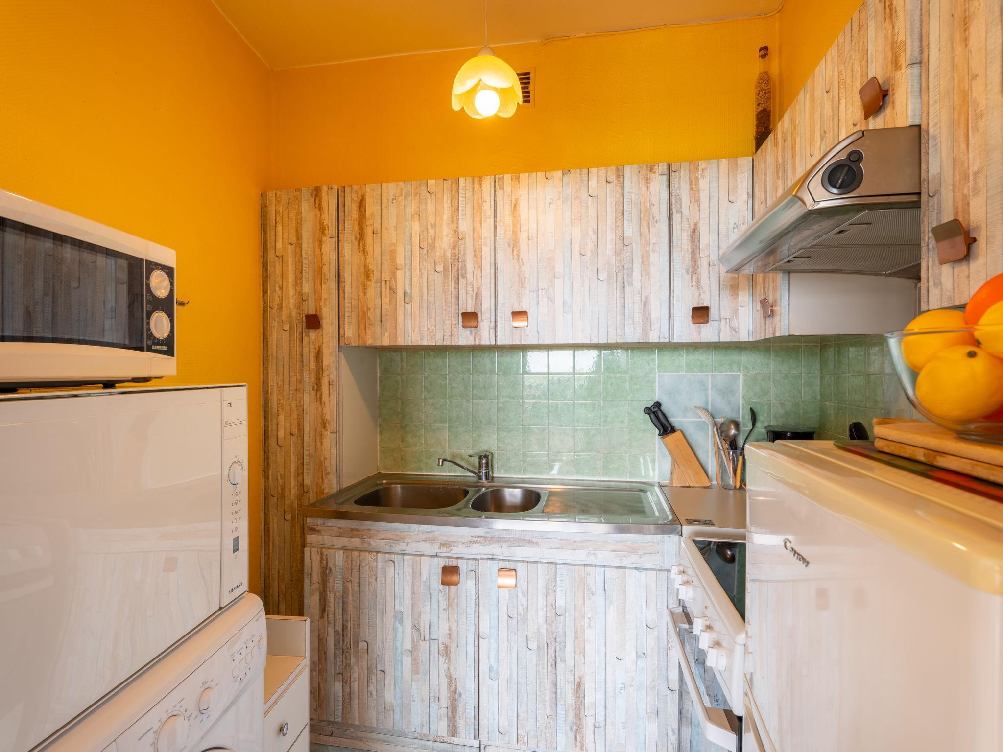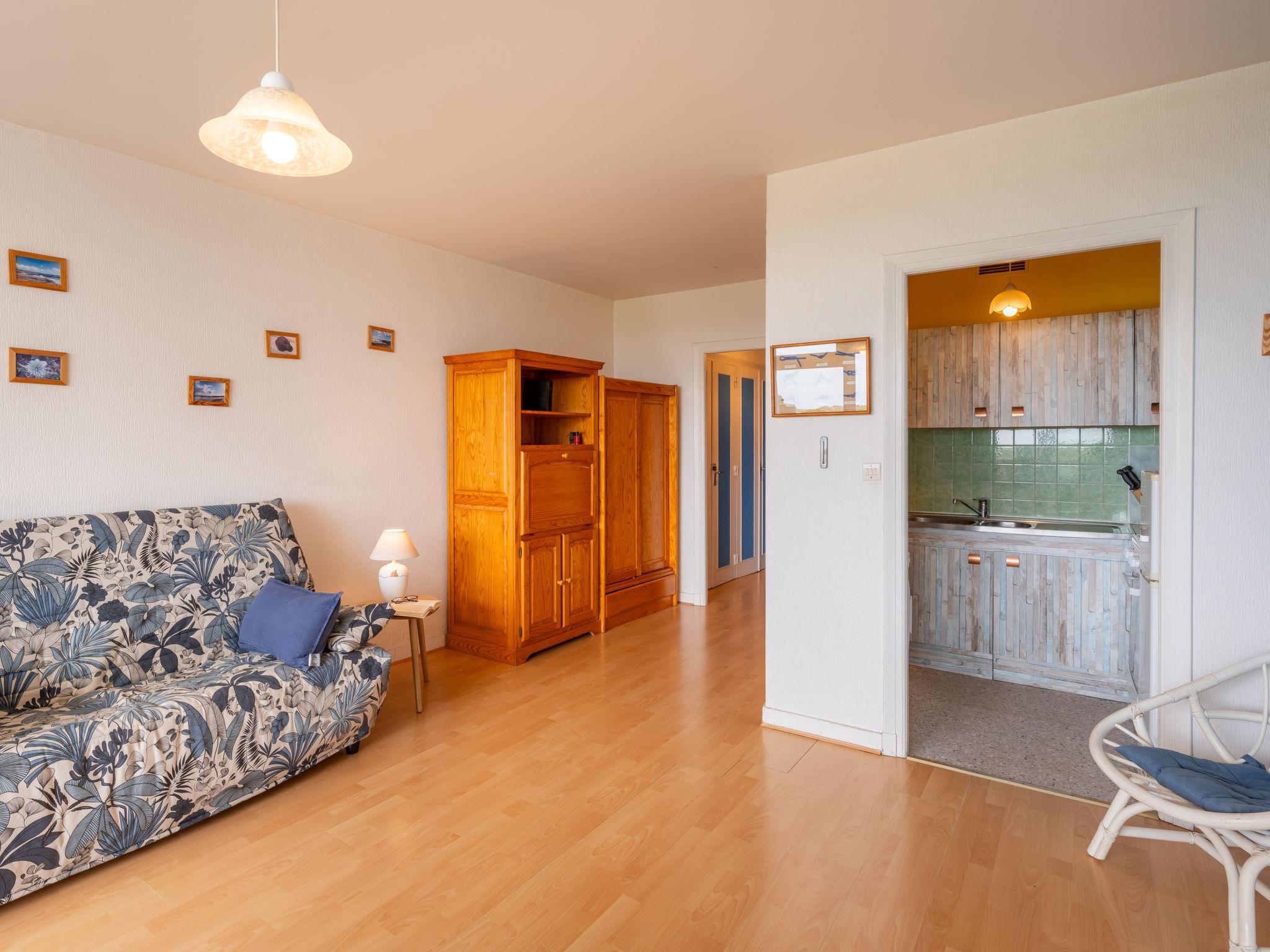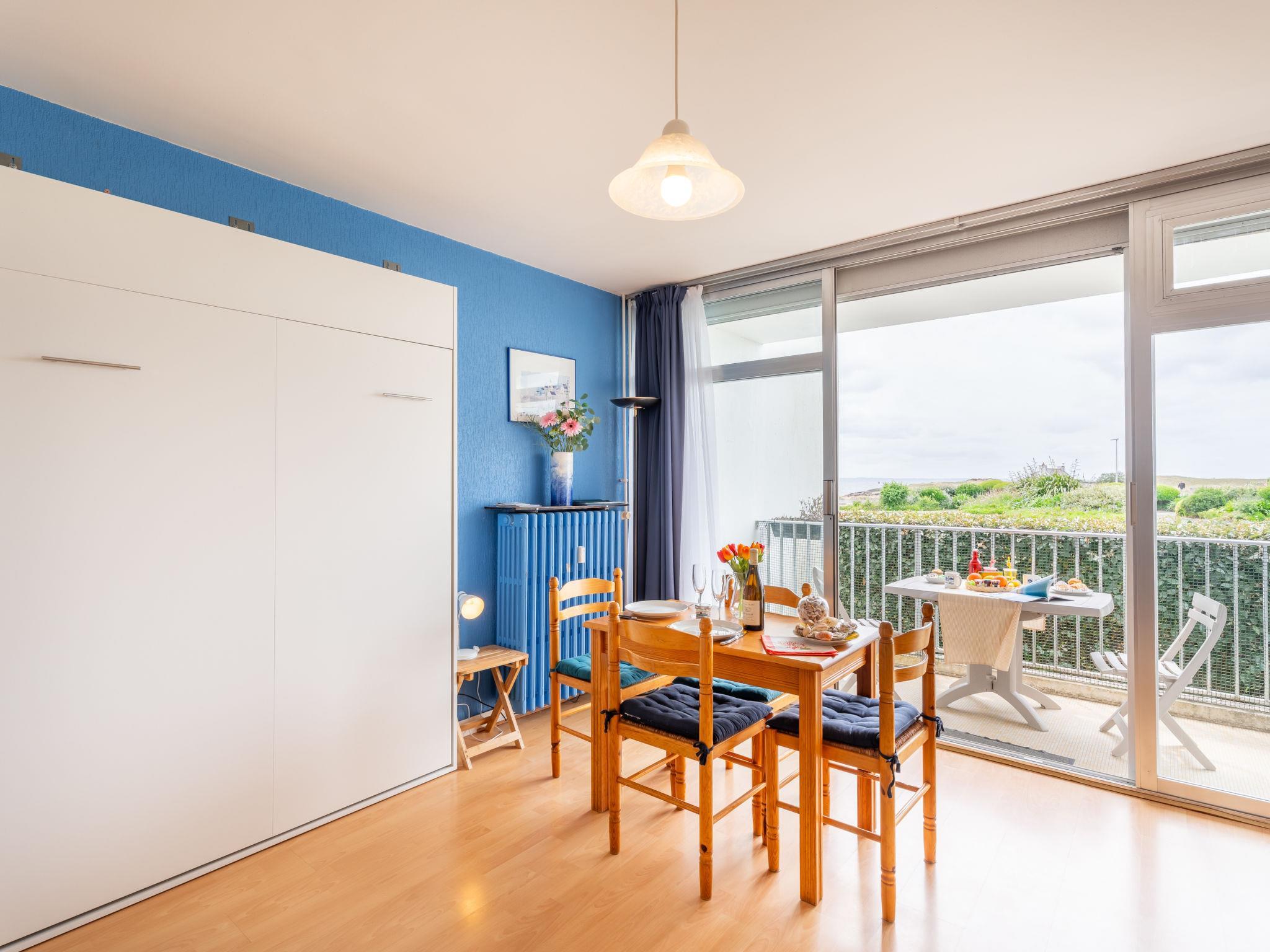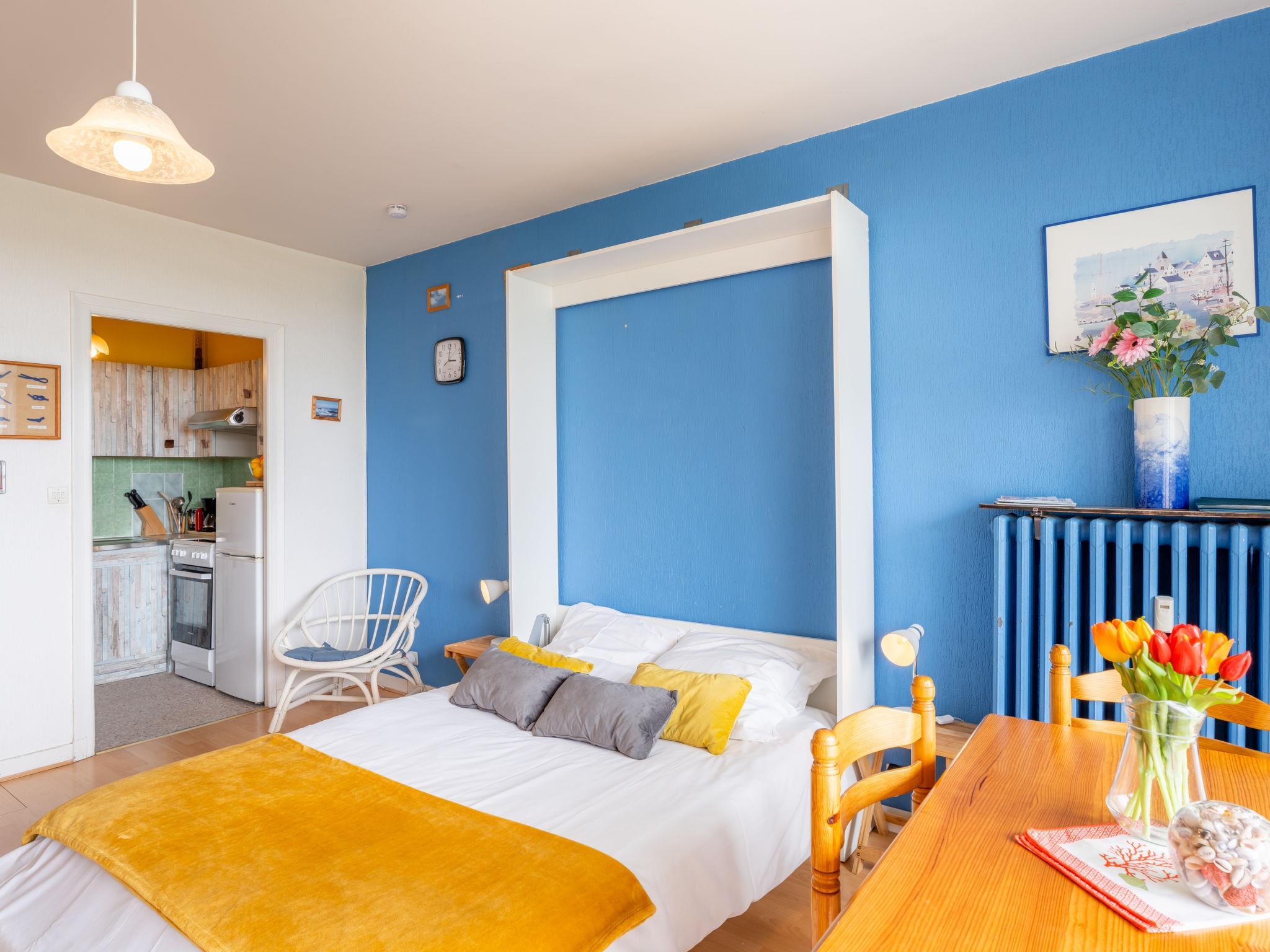 1-room studio 34 m2, on the ground floor. Comfortable furnishings: living/dining room with 1 double fold-away bed (1 x 140 cm, length 200 cm), TV (flat screen). Exit to the balcony. Kitchenette (oven, dishwasher, 3 induction hot plates, toaster, kettle, microwave, electric coffee machine). Shower/WC. Gas heating. Balcony 6 m2. Beautiful view of the sea. Facilities: washing machine. Internet (WiFi, extra). Parking. Please note: non-smokers only. 1 small pet/ dog allowed. Smoke alarm. Offer by a private individual according to Art. 155, IV of CGI. 56186 000800 SX