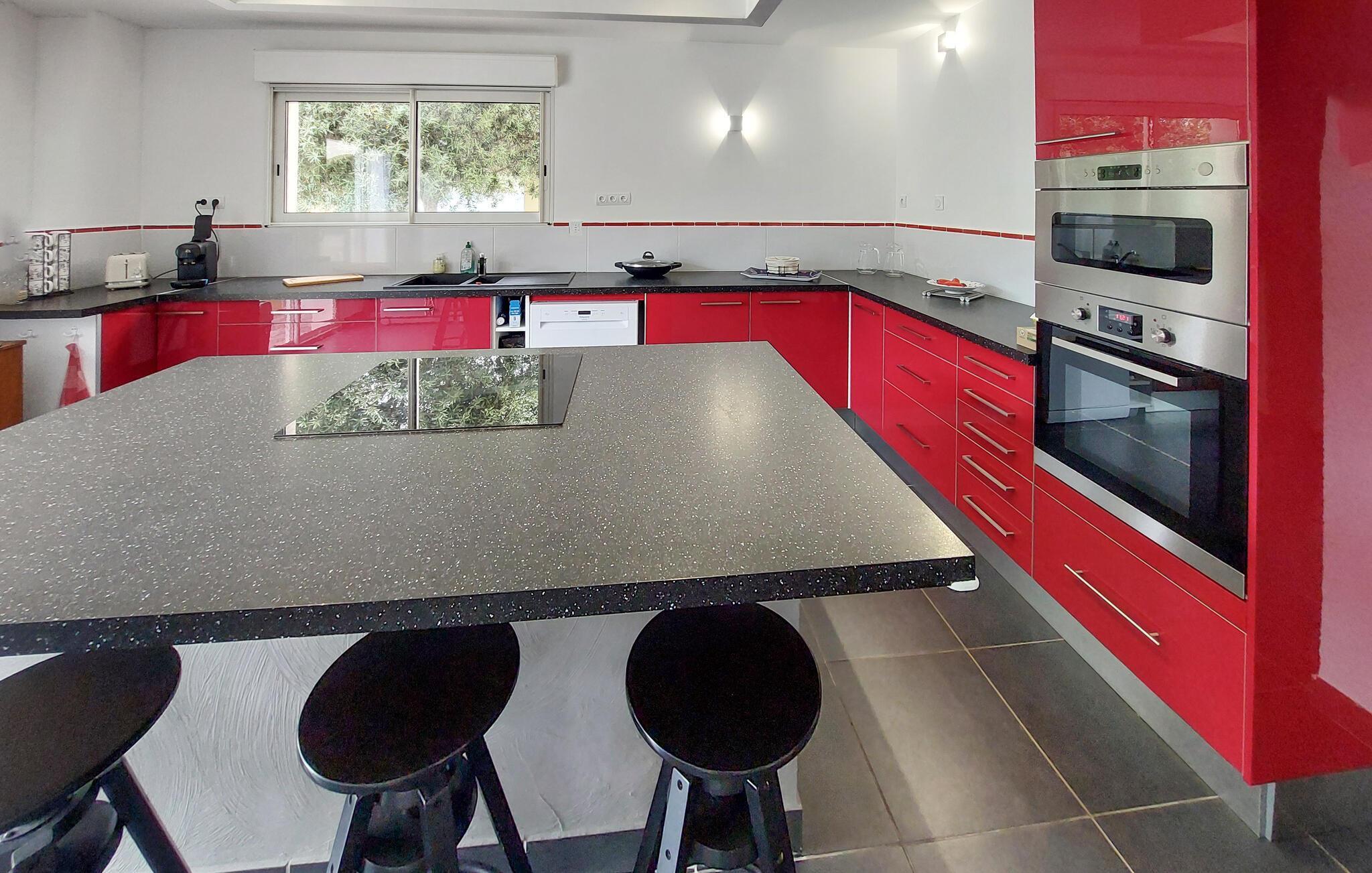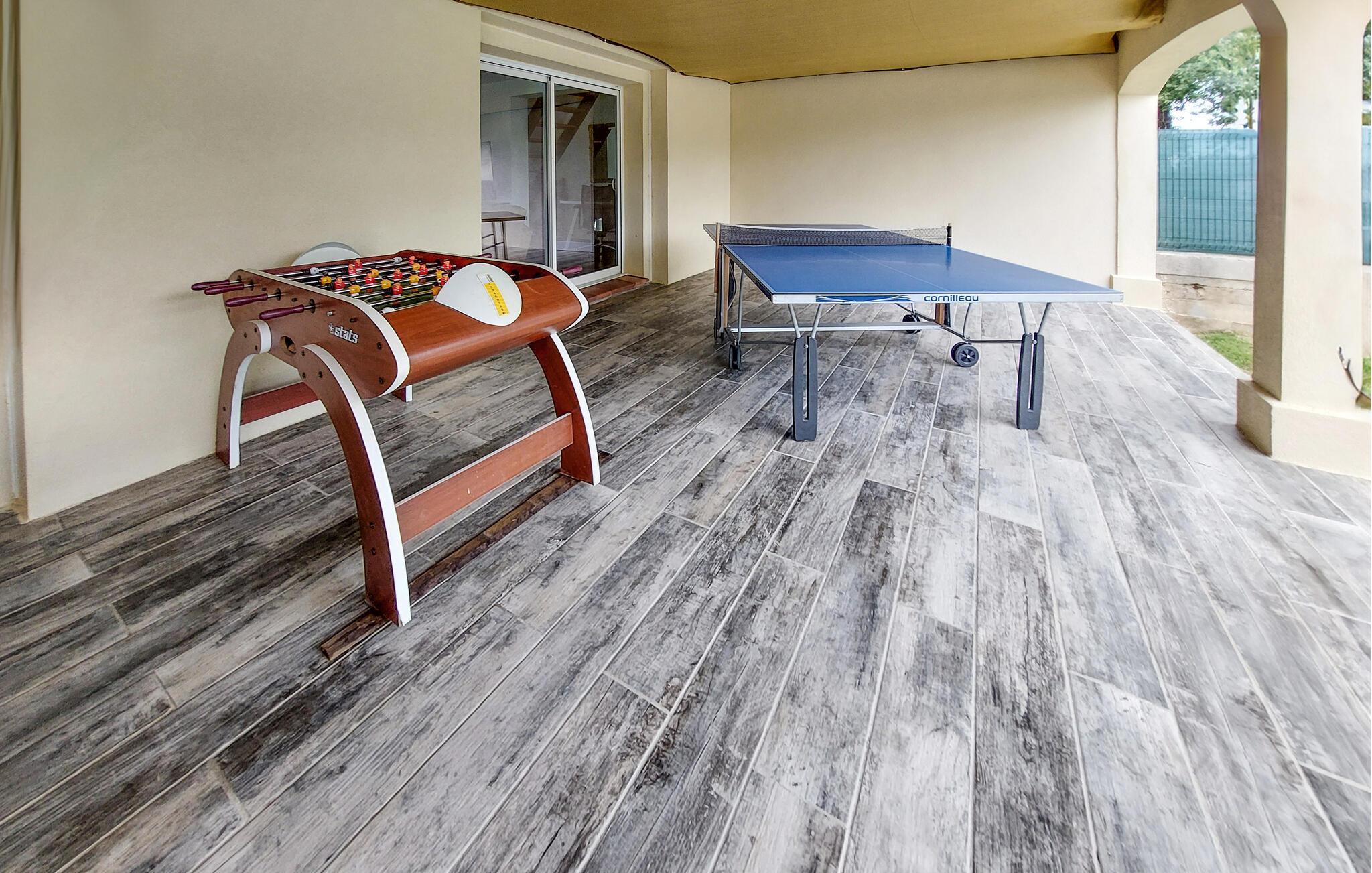 Ihr Ferienhaus in Regusse, mit seinem modernen, offenen Wohnkonzept, bietet alles, was Sie für einen komfortablen Aufenthalt benötigen. Genießen Sie die ruhige Atmosphäre auf der überdachten Terrasse und speisen Sie gemeinsam im Freien. Nach einem erlebnisreichen Tag können Sie sich im Gemeinschaftspool entspannen oder eine Partie Tischtennis oder Tischfußball auf der Terrasse spielen. Starten Sie Ihren Tag mit einem Frühstück auf der Terrasse und planen Sie Ihre Ausflüge in die umliegende Region. Die elegante, offen gestaltete Küche ist ideal, um gemeinsam köstliche Gerichte zuzubereiten. Am Abend können Sie sich im Wohnzimmer auf den gemütlichen Sofas zurücklehnen und die Ruhe auf sich wirken lassen.