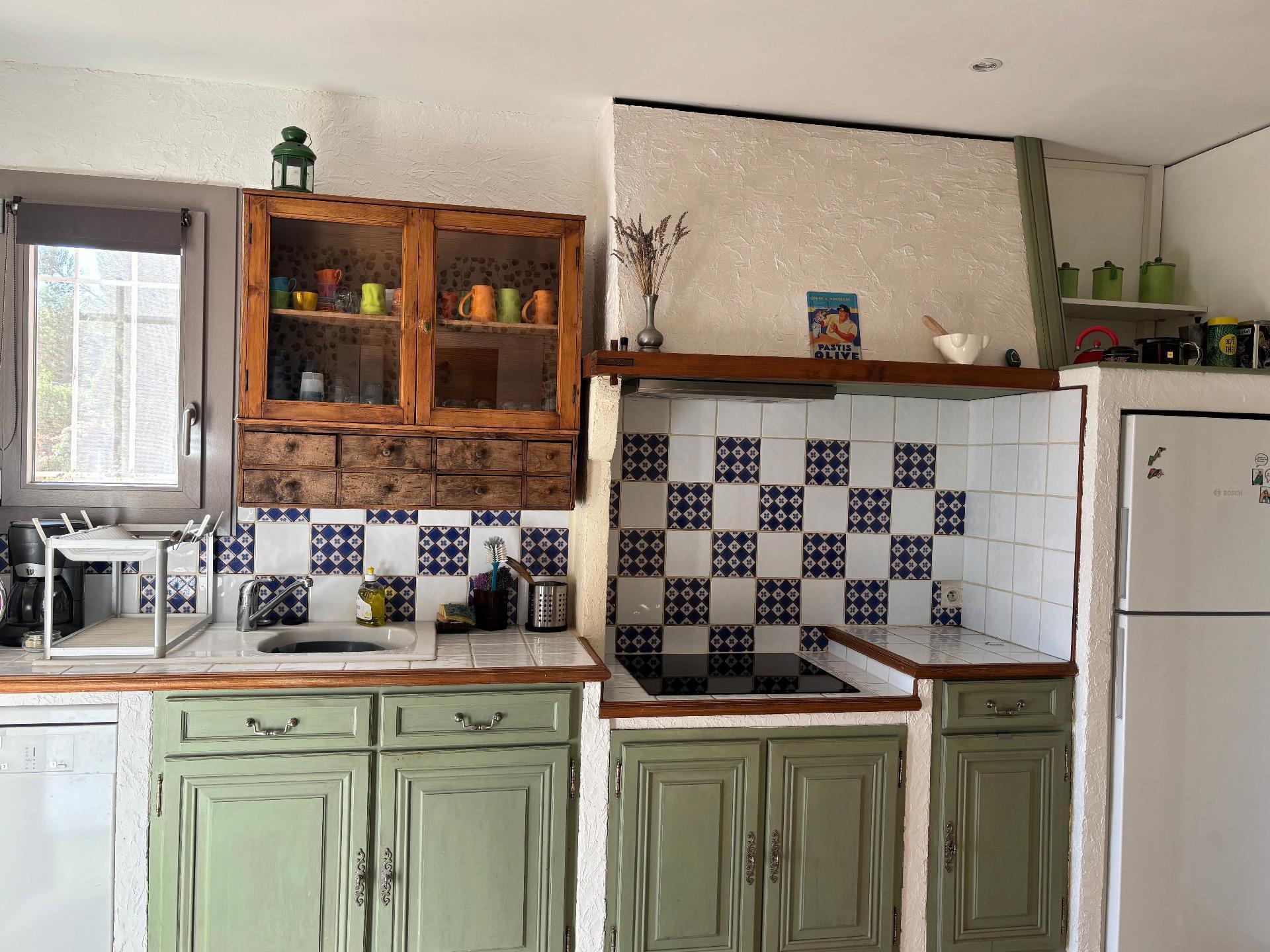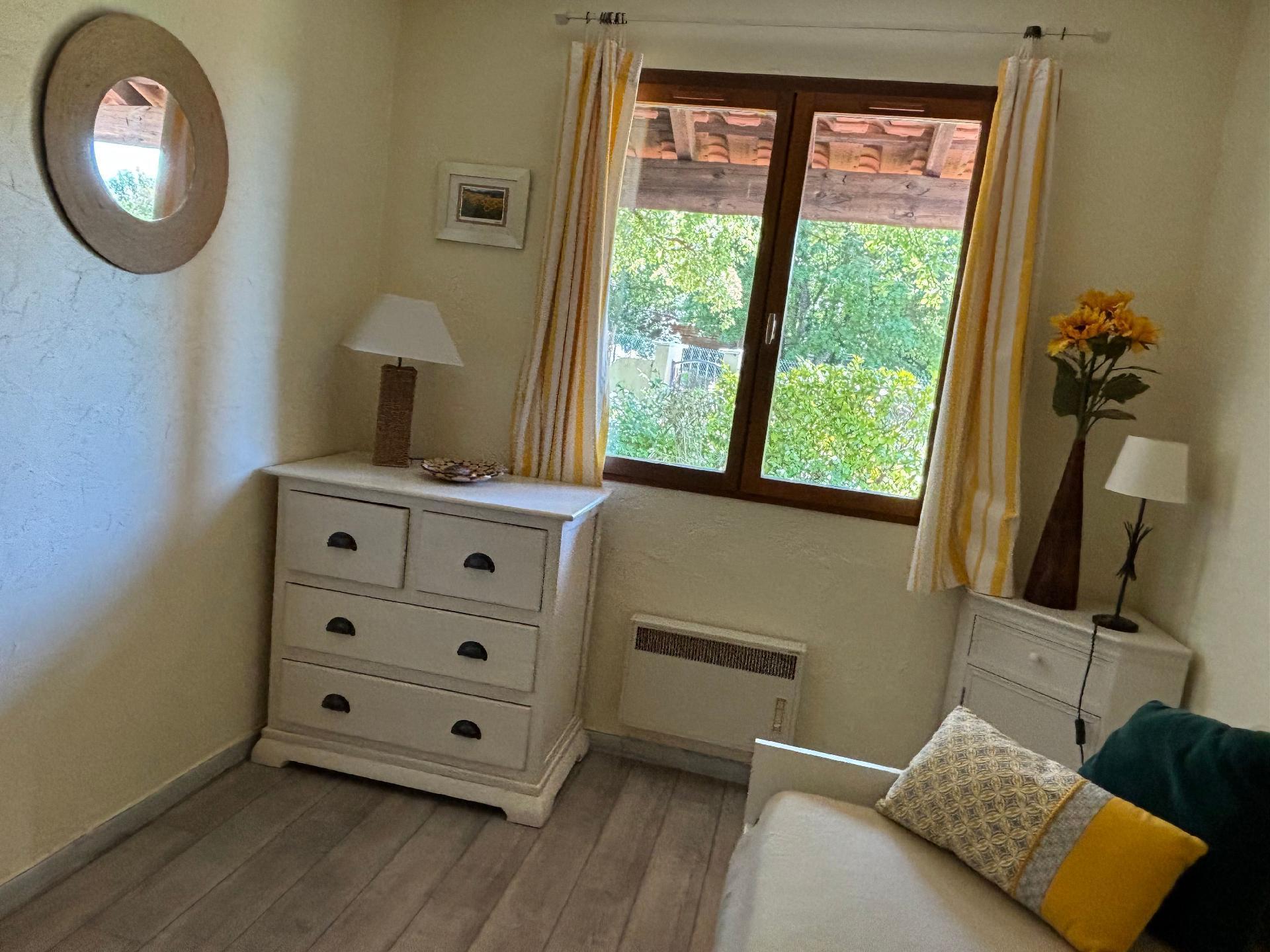 This holiday home is located in the commune of Rians on 1,200 m² of south-facing land planted with trees. It is located at the end of a private road, surrounded by lots of greenery. Its peaceful location, close to nature, in a typical Provencal village, makes this house the ideal holiday home for those seeking peace and quiet and for nature lovers.