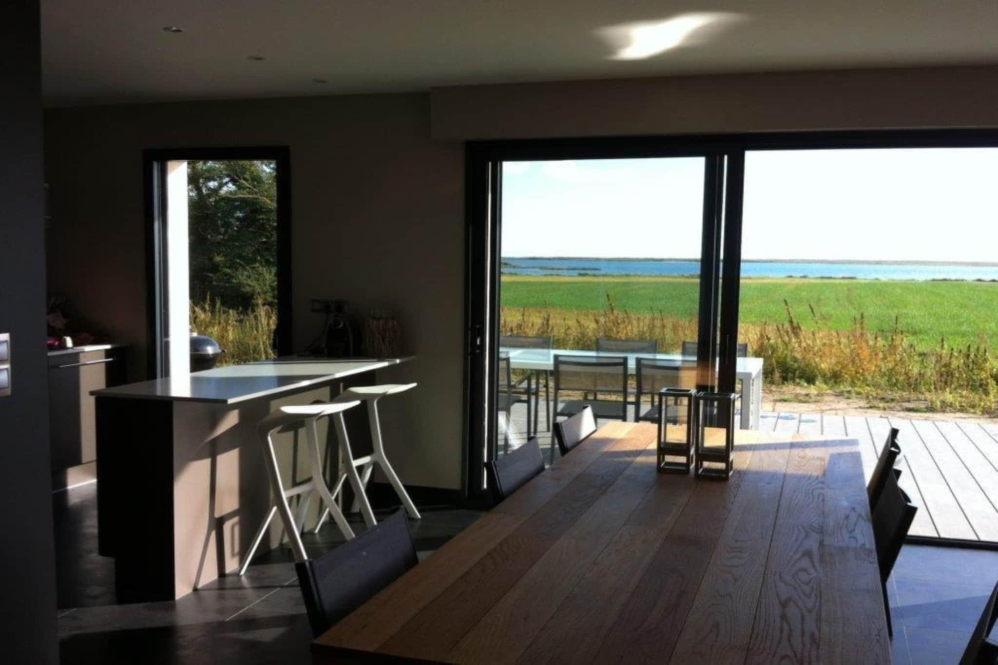 This is a beautiful modern villa with heated swimming pool and marvelous view. When you arrive, you will have an immediate holiday feeling, and can completely relax. You can have a barbecue in the spacious garden, while you enjoy the panoramic view. You immediately walk onto the beach direct from the house. The region is characterized by a mild climate and white sandy beaches. You will find them around Phouhinec (about 5 km). For excursions, you can visit the countless menhirs, dolmens and tumulus at Carnac (25 km), Vannes (50 km), with its beautiful half-timbered houses, and the peninsula of Quiberon (34 km), from where you can take a ferry trip (45 min) to the scenic island of Belle-Ile-en-Mer are also worth a look. In the center of Riantec (1.5 km) you will find several restaurants, a bakery and a supermarket. The home is fully equipped with a modern kitchen and comfortable bathrooms. You can barbecue in the spacious garden while enjoying the panoramic view.