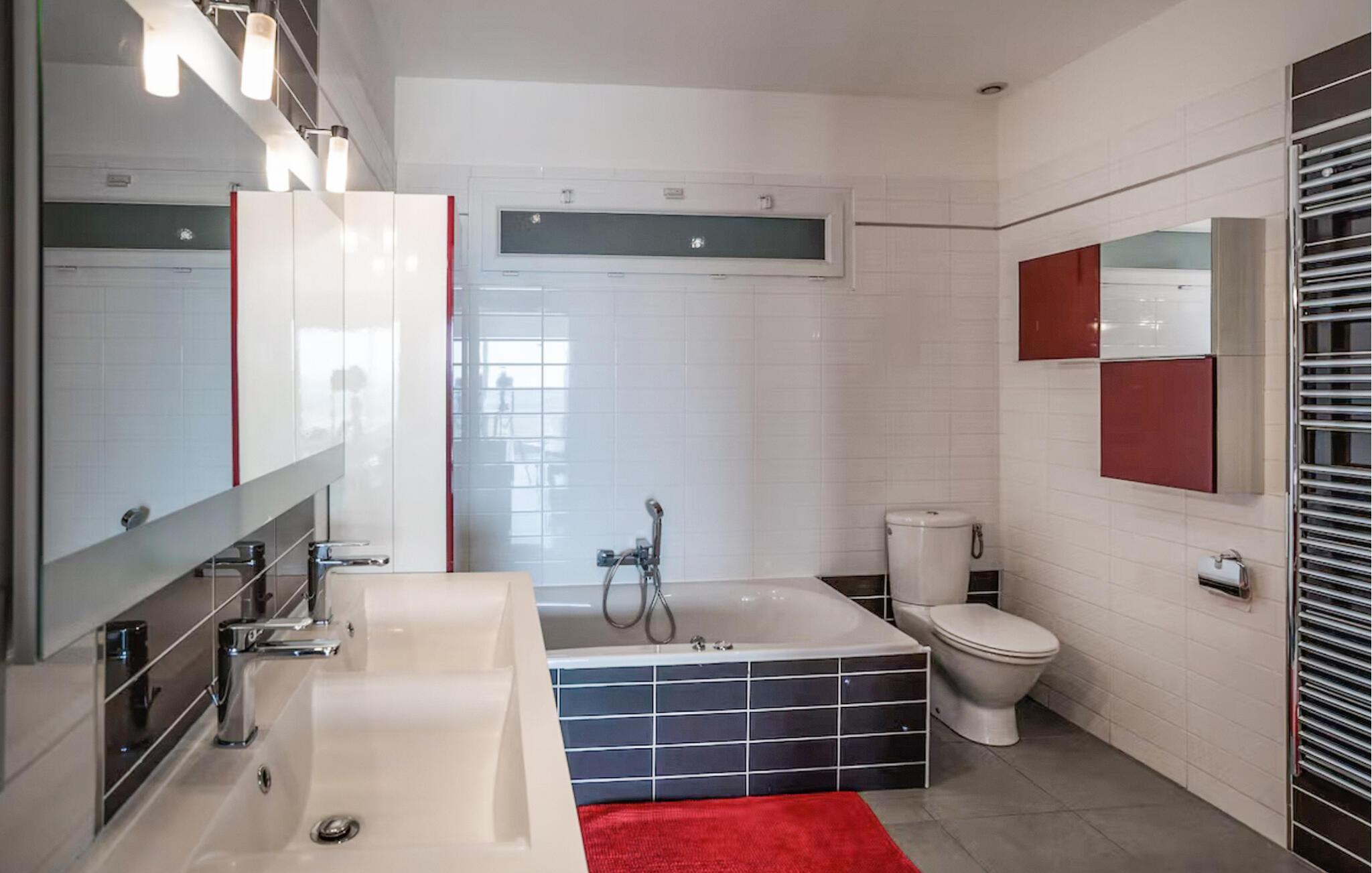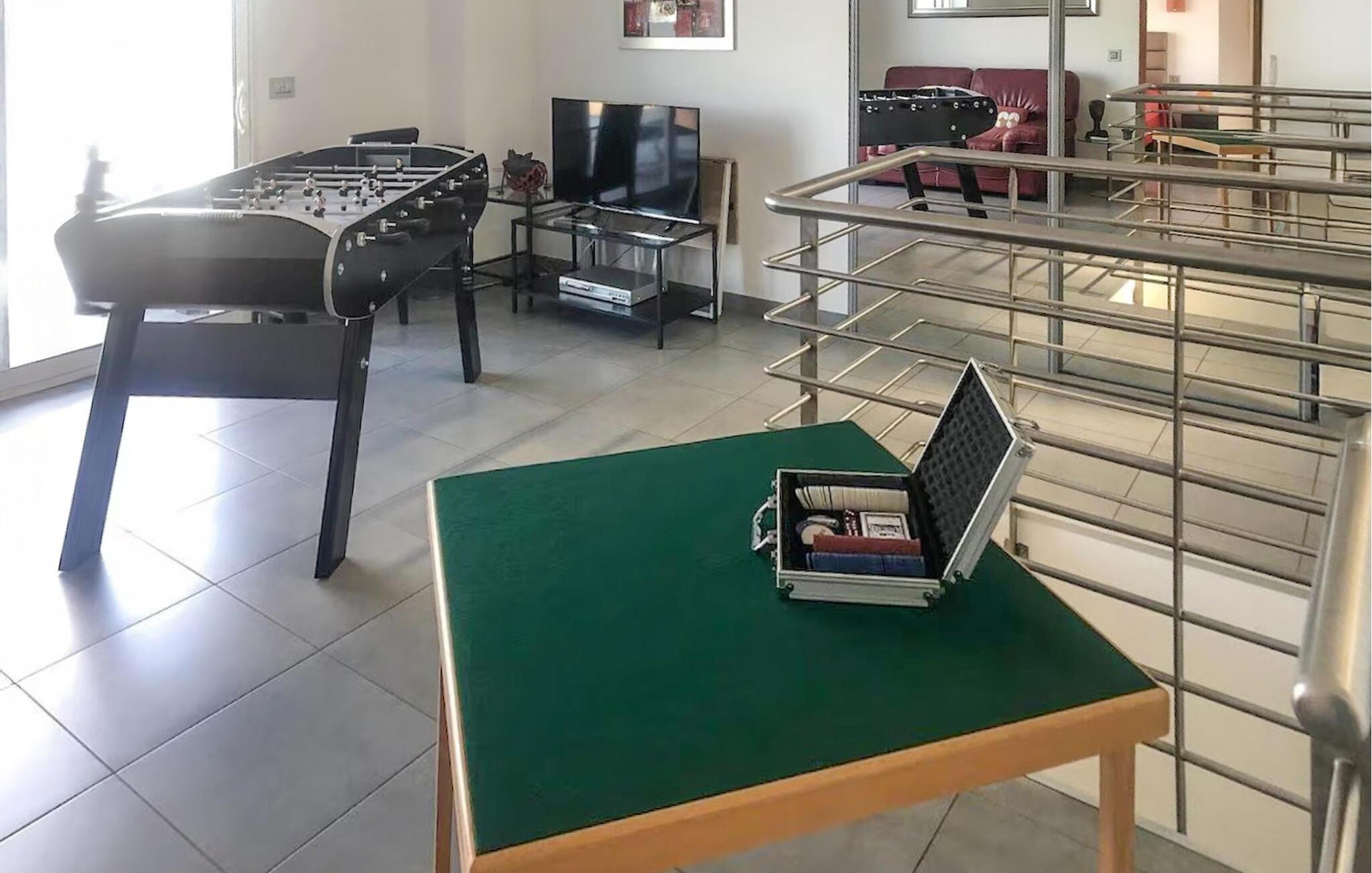 Diese hochwertig ausgestattete Villa heißt Sie in privilegierter Lage willkommen und wird Sie mit ihrem lichtdurchfluteten, großzügig geschnittenen Interieur begeistern. Freuen Sie sich auf geselliges Kochen in der modernen, offenen Küche, streamen Sie einen Film im behaglichen Wohnzimmer, vergnügen Sie sich am Kickertisch oder spielen Sie eine Runde Roulette.