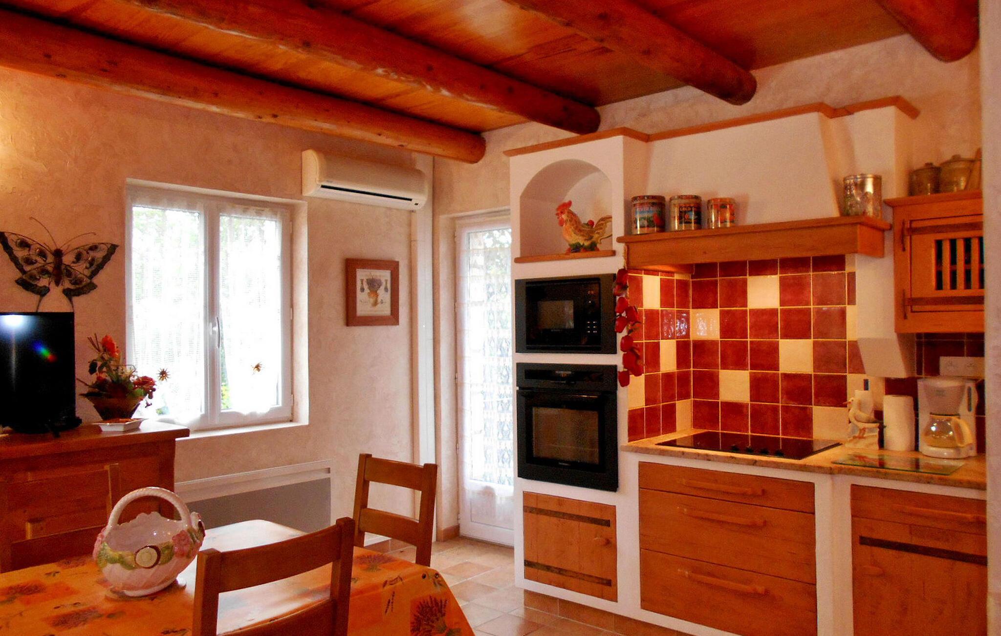 Entdecken Sie in einer ruhigen Waldlandschaft zwischen Uzès und Barjac dieses Feriendomizil bestehend aus zwei separaten, aber identischen Häusern, perfekt für zwei Familien, die einen ruhigen Urlaubsort suchen. Umgeben von natürlicher Schönheit und in der Nähe der faszinierenden Regionen Ardèche und Gard Provençal bietet dieser Zufluchtsort Ruhe und einfachen Zugang zu spektakulären Attraktionen. Dieses Mietobjekt ist ein idyllischer Ausgangspunkt für die Erkundung der Schätze der Gegend und verspricht ein bereicherndes Urlaubserlebnis. Jedes Haus verfügt über ein Erdgeschoss mit einem gemütlichen Schlafzimmer. Der einladende Wohnraum liegt fünf Stufen unterhalb des Eingangs und bietet eine voll ausgestattete Küchenzeile und Zugang zu einer bezaubernden Terrasse. Wenn Sie in das klimatisierte Zwischengeschoss über dem Wohnbereich hinaufsteigen, entdecken Sie einen herrlichen Schlafbereich. Draußen lockt ein weitläufiges, umzäuntes Grundstück mit einer mit Pergola geschmückten Terrasse und einem privaten, umzäunten Swimmingpool (12 m x 5 m, maximale Tiefe 1,80 m) für Ihren exklusiven Genuss. Bitte beachten Sie: Da das Gelände über Gefälle verfügt, ist es ratsam, kleine Kinder beim Spielen zu beaufsichtigen. Das Anwesen liegt auf den Höhen von Rochegude (zwischen Méjannes le Clap und Saint Jean de Maruejols) auf dem Hügel, unweit von Barjac, mitten in der Natur. In der Nähe des Flusses Cèze und der Adrèche-Schlucht und des Flusses (Schwimmen, Kanufahren). Besuchen Sie die charmanten Nachbardörfer mit ihren Märkten: Barjac, Lussan, Tharaux, Monclus, Goudargues, Uzès, besuchen Sie die berühmten Höhlen der Gegend: Cocalière-Höhlen, die Aven d'Orgnac-Höhlen, die Salamandre-Höhle. Caverne du Pont d'Arc (Nachbildung der Chauvet-Höhle, UNESCO-Welterbe), die „Cascades du Sautadet“, die „Concluses de Lussan“, erkunden Sie die „Gorges de l’Ardèche“, „das Cèze-Tal“, bewundern Sie die „ Pont du Gard“ Idealer Rahmen für die Ausübung aller Arten von Aktivitäten: Kanufahren, Canyoning, Wandern, Reiten, Mountainbiken. Entspannen Sie sich, erholen Sie sich und schaffen Sie unvergessliche Erinnerungen in dieser natürlichen Oase, einem idealen Rückzugsort für Ihre Urlaubsabenteuer.