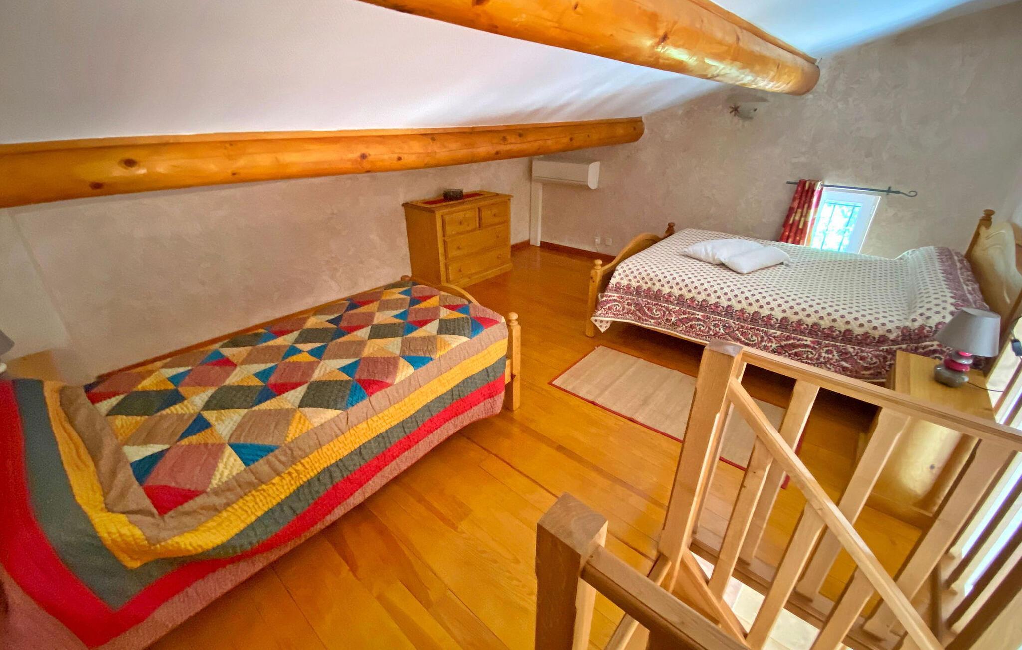 Offener Schlafboden - 1 Schlafmöglichkeit. (Einzelbett(en)). 2 Schlafmöglichkeiten. (Doppelbett(en)).